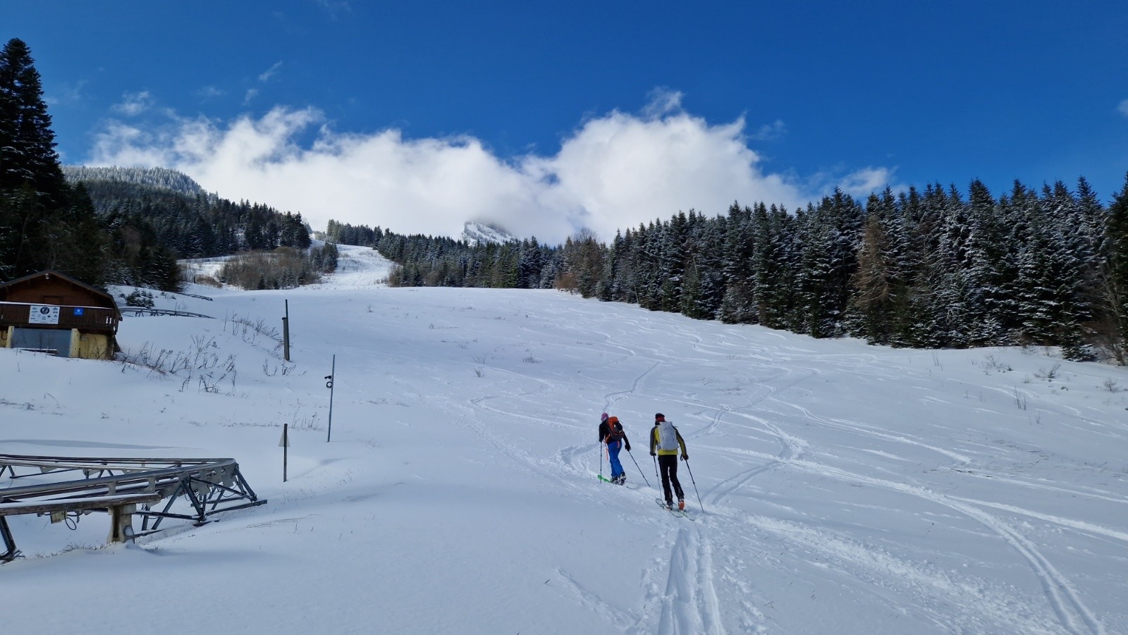Montée et descente par les pistes avec Chris et Mathieu. Montée agréable, abritée du vent.