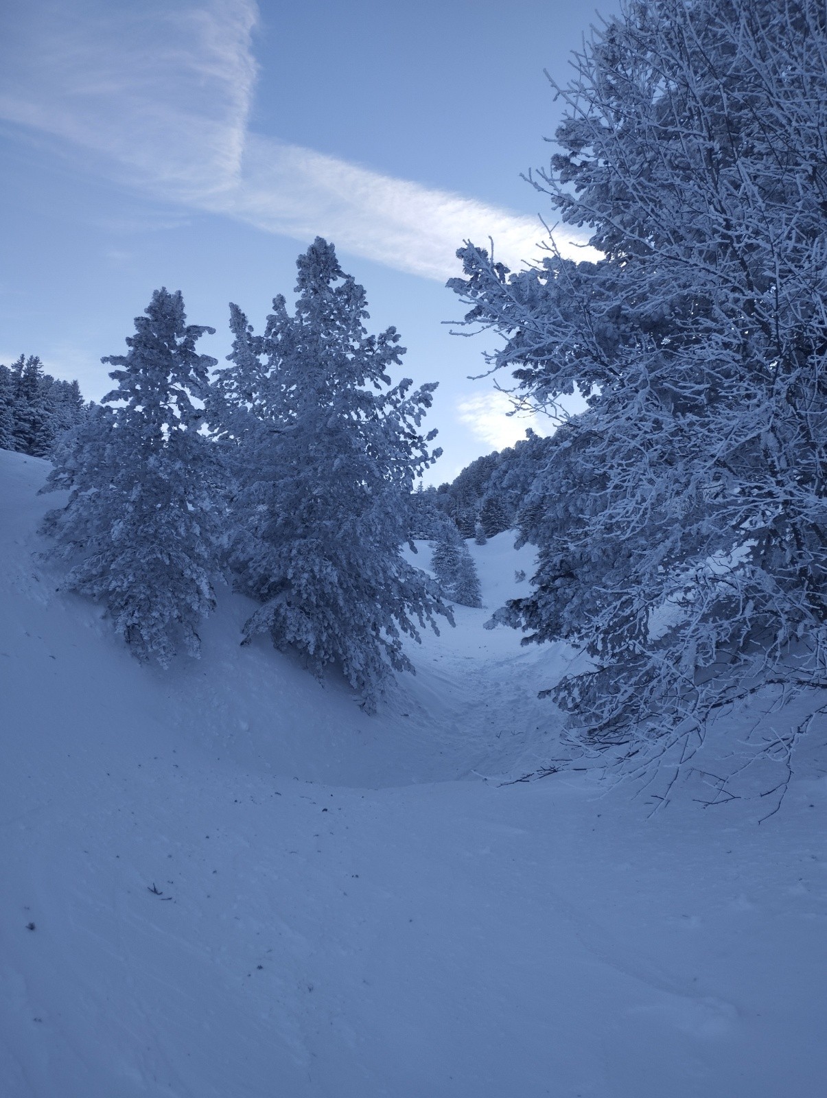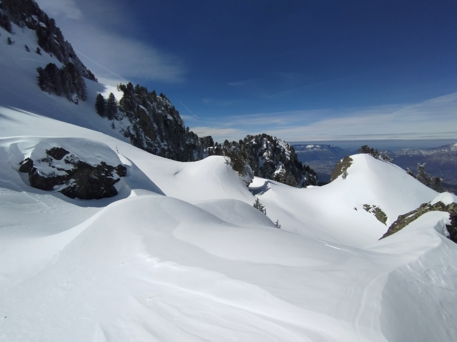 Conditions pour le ski : excellente ! De la poudre 20-40cm, des belles accumulations à certains endroits (60cm), des parties soufflées mais on les évites facilement. Globalement les faces Nord avaient l'air bien soufflées.