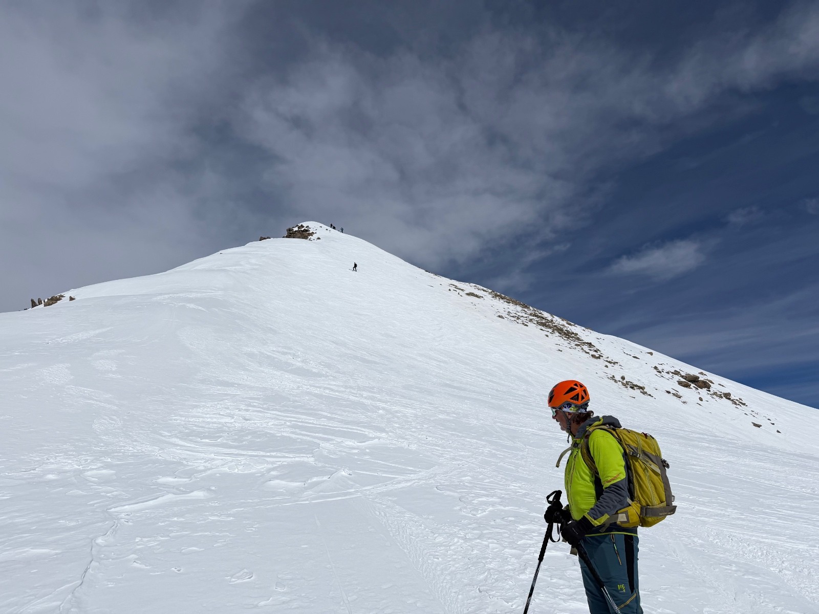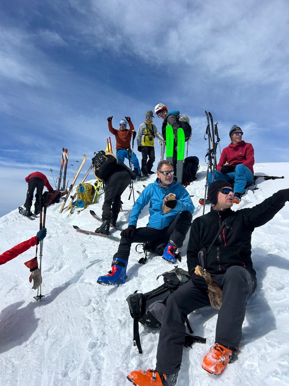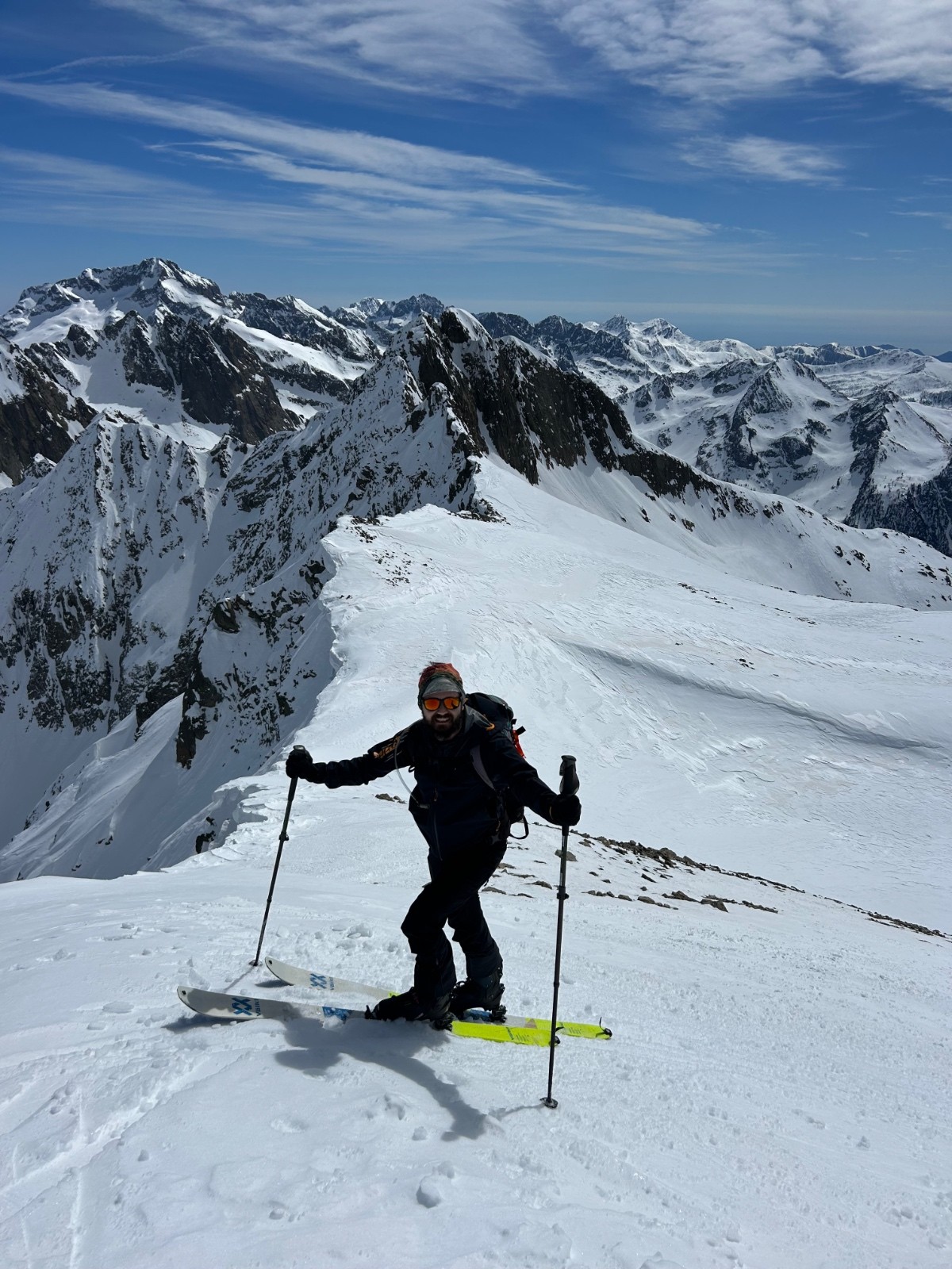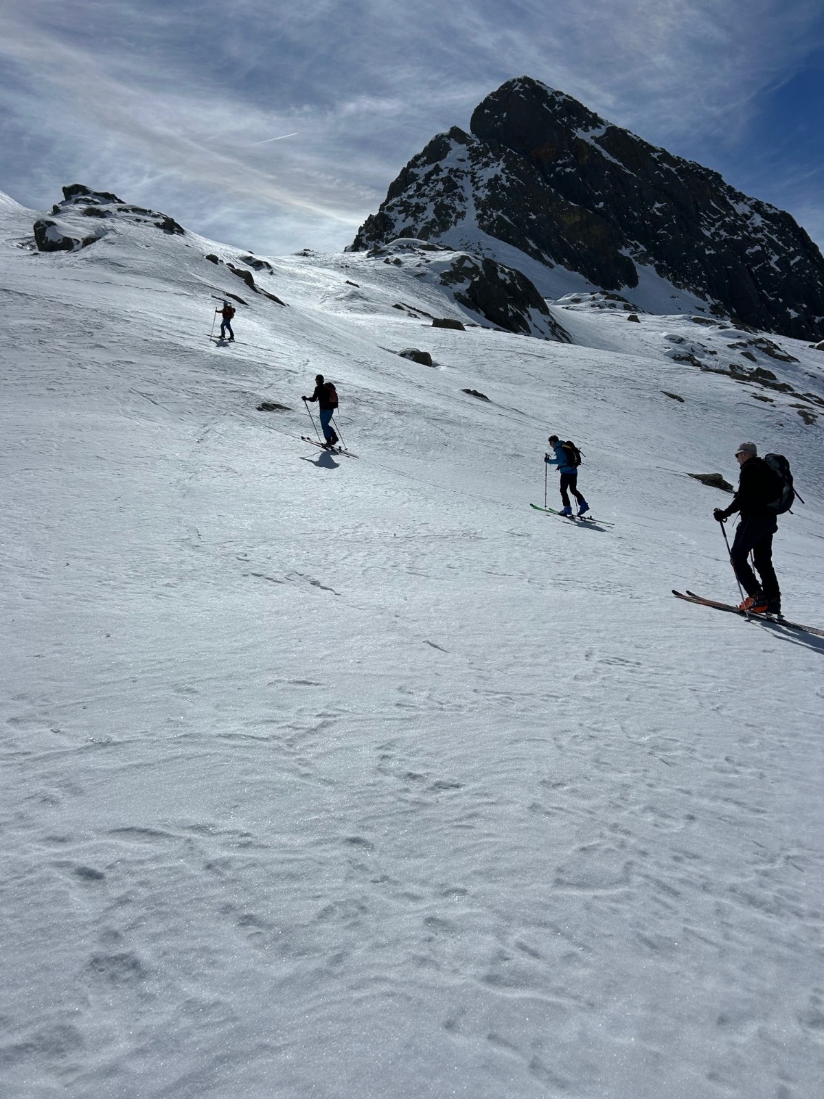 Conditions pour le ski : bon regel, descente poudre tassée sous le sommet, un peu de croûte puis neige de printemps plus ou moins decaillée