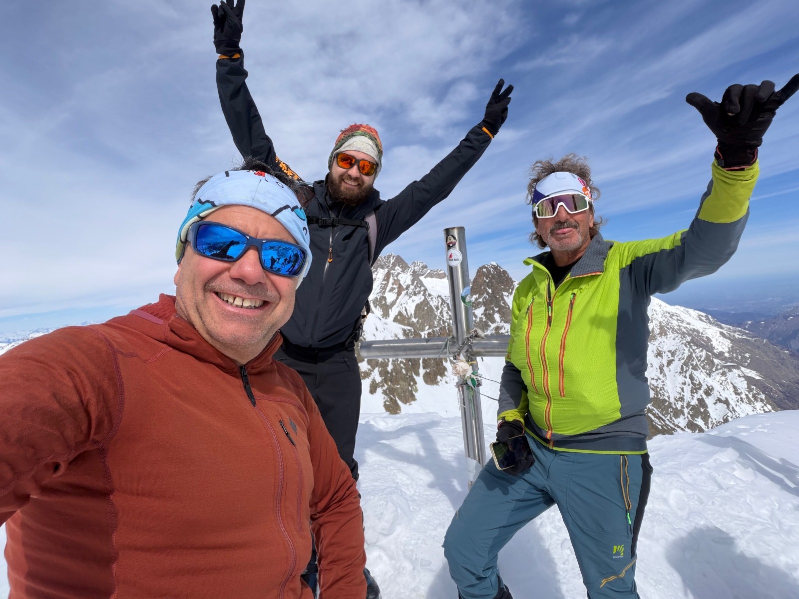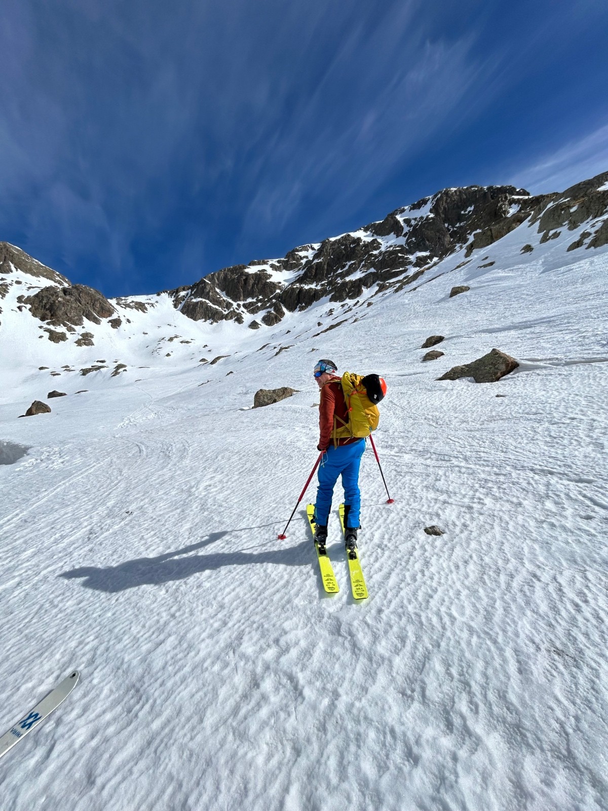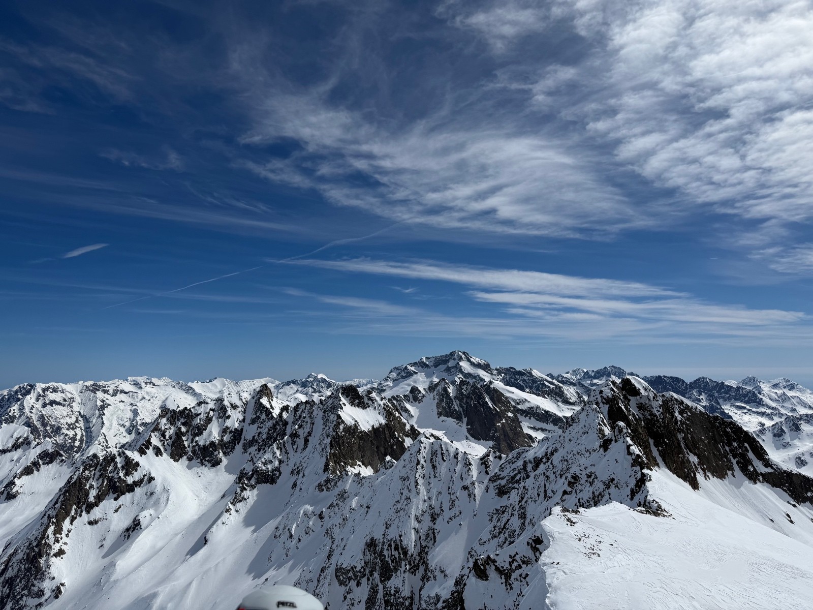 Conditions pour le ski : bon regel, descente poudre tassée sous le sommet, un peu de croûte puis neige de printemps plus ou moins decaillée