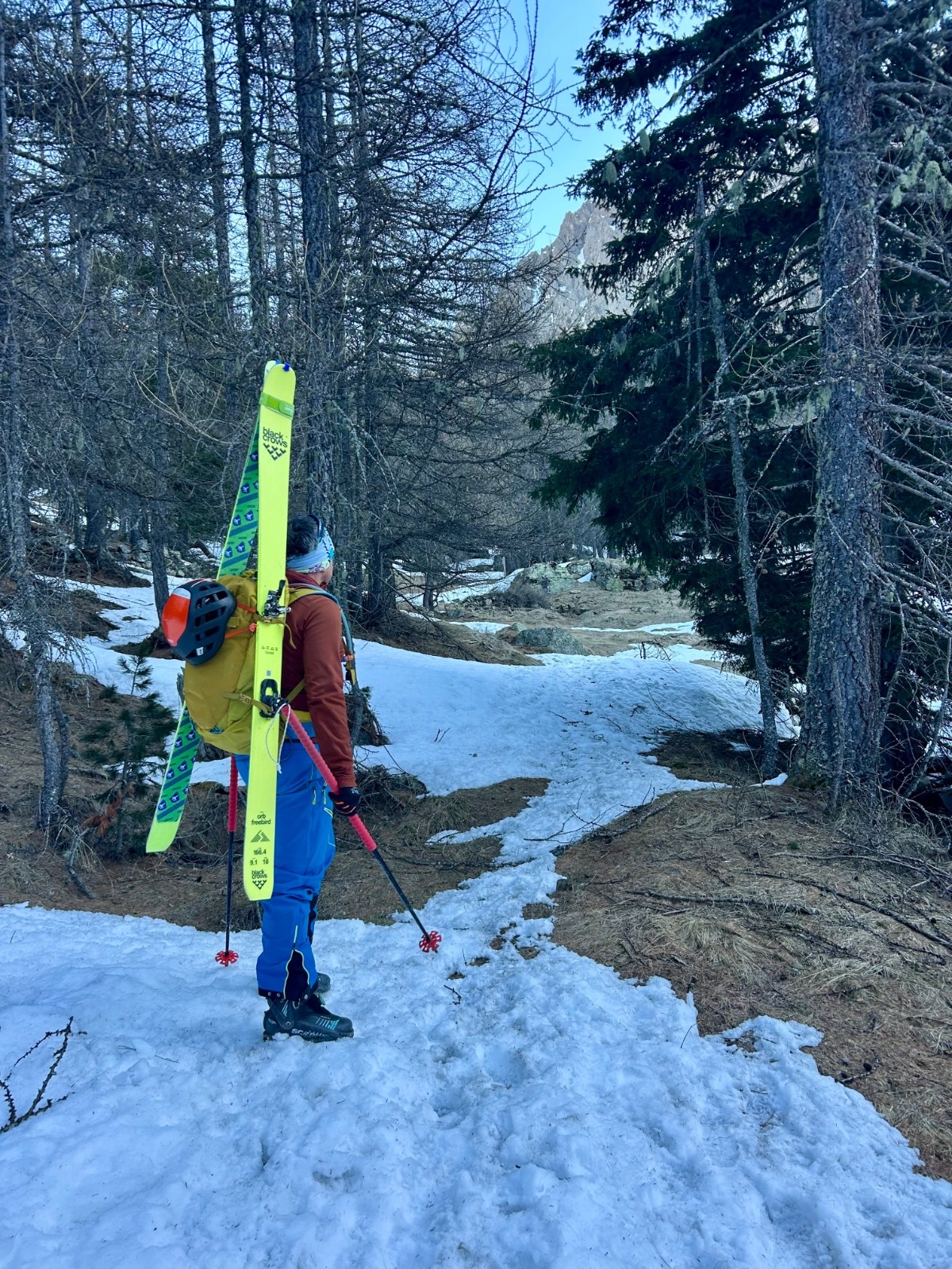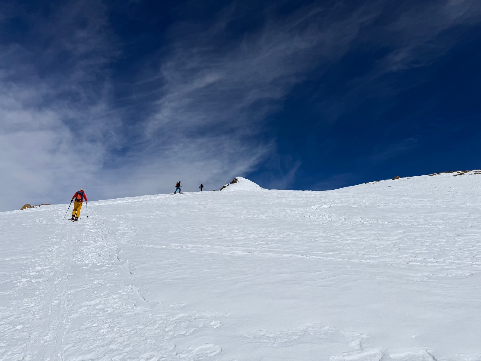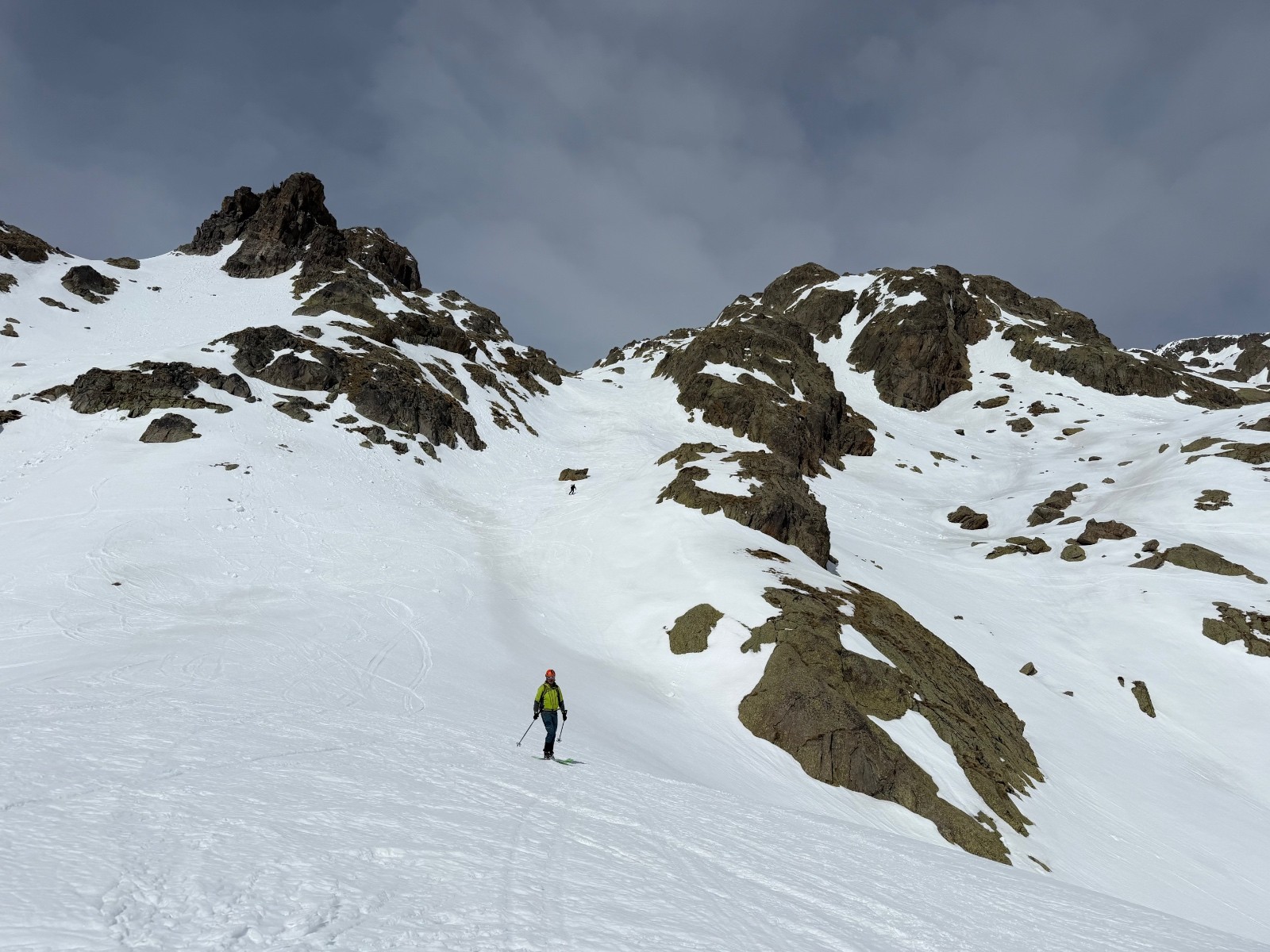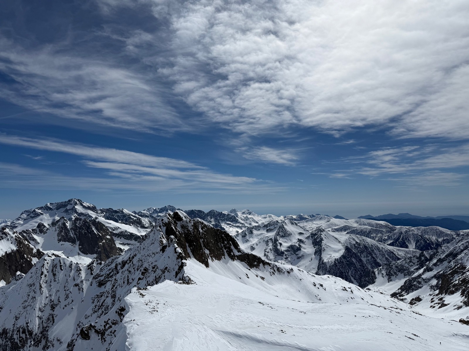 Conditions pour le ski : bon regel, descente poudre tassée sous le sommet, un peu de croûte puis neige de printemps plus ou moins decaillée