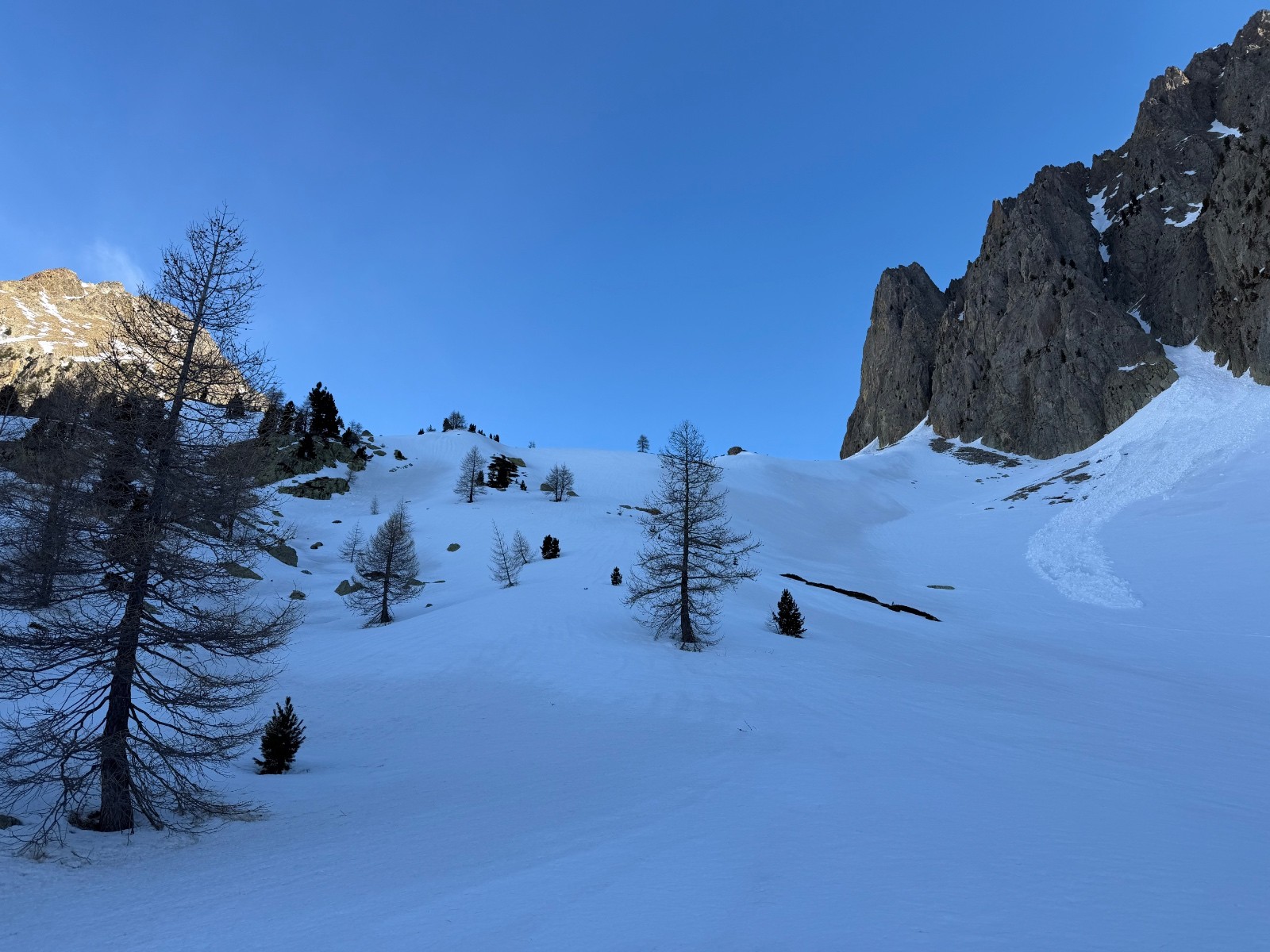 Conditions nivo et activité avalancheuse : manteau bien serré quelques coulées printanières observées.