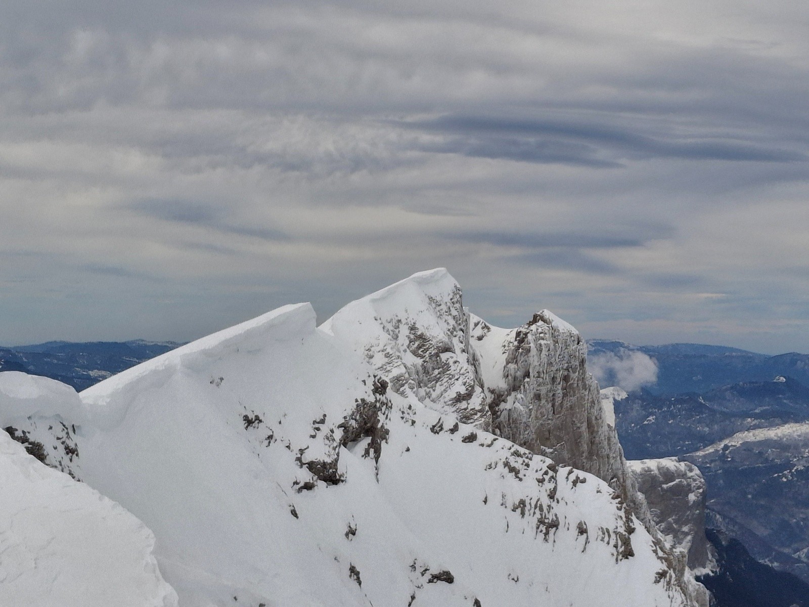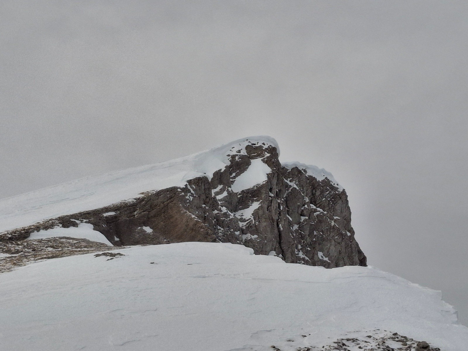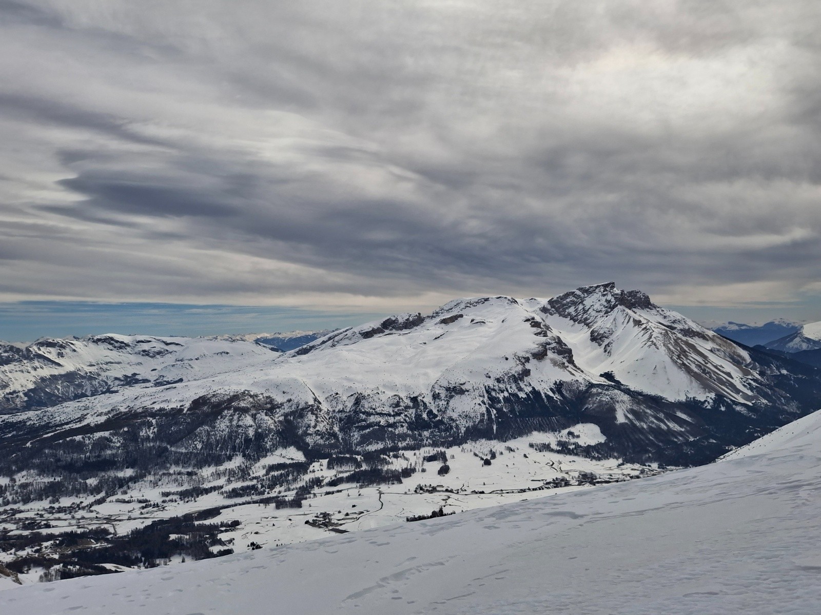 Conditions pour le ski : bonnes. Neiges hétérogènes mais toujours bien skiable. Poudre tassée sous le col avant le sommet en neige dure et ventee.