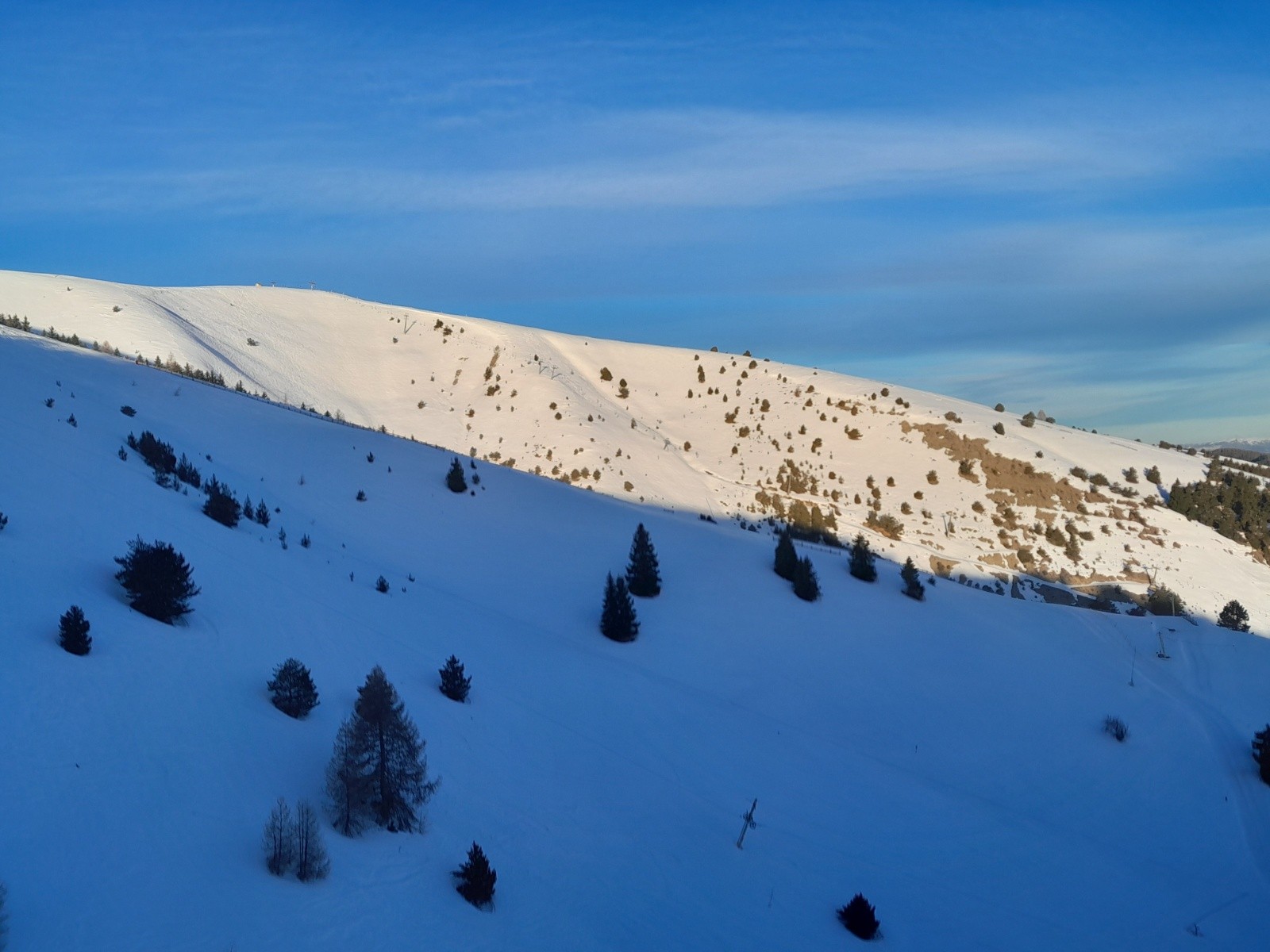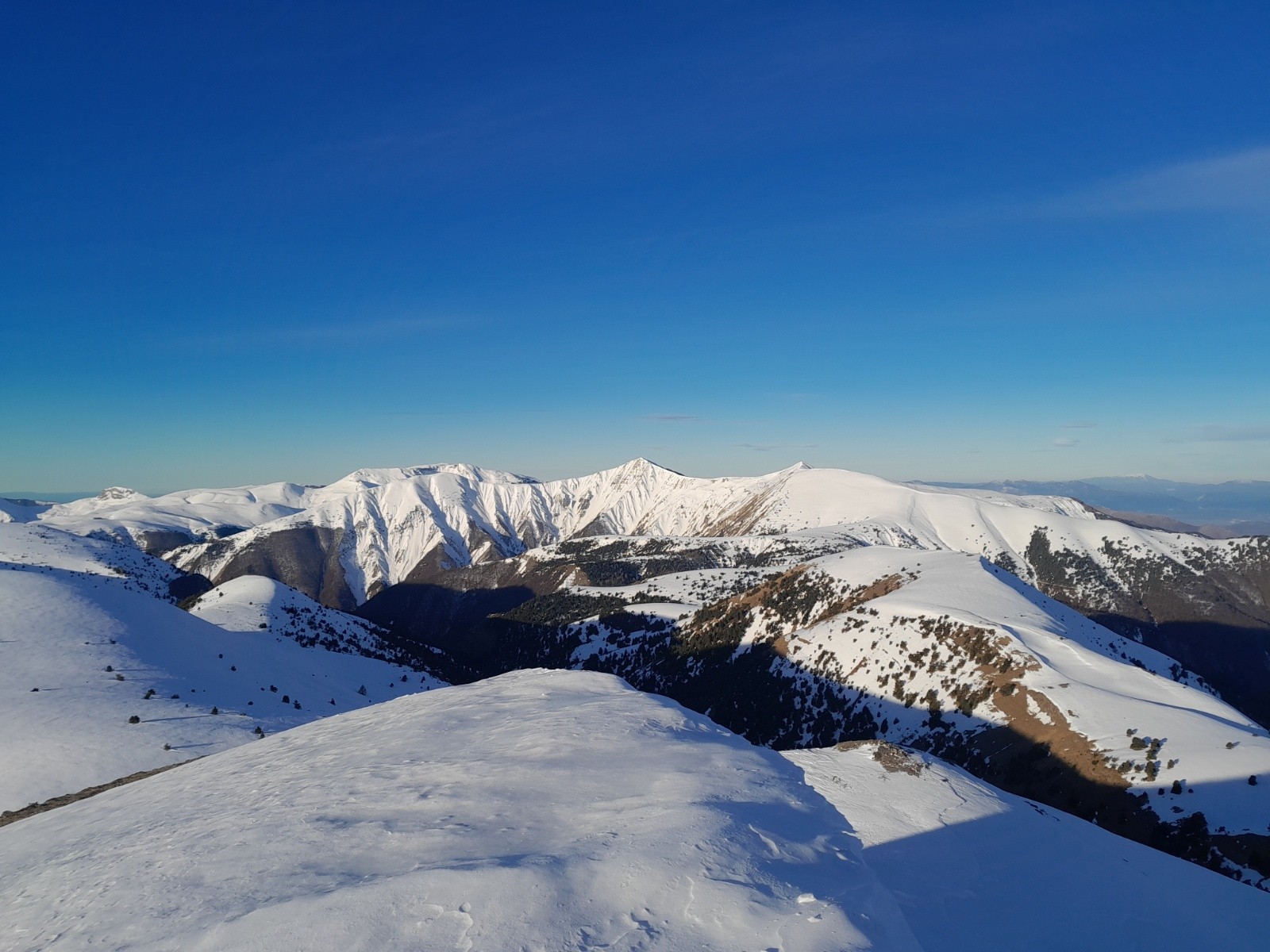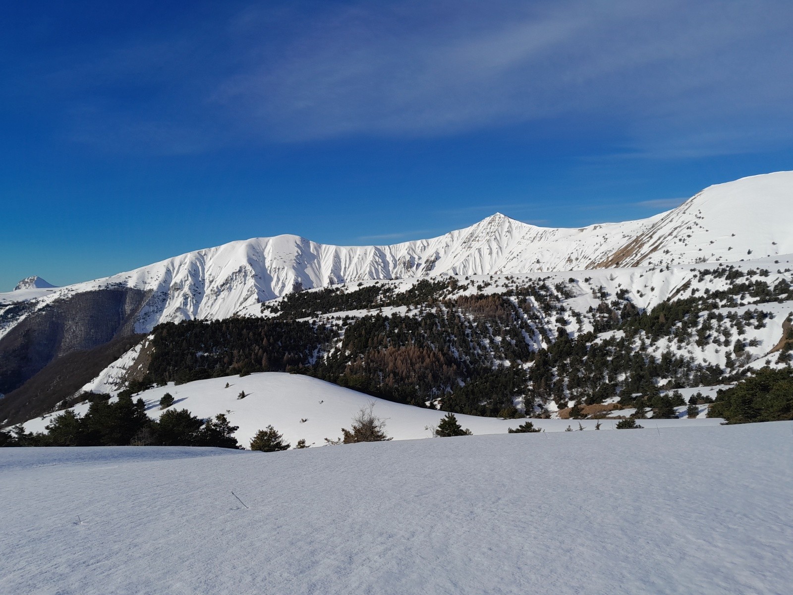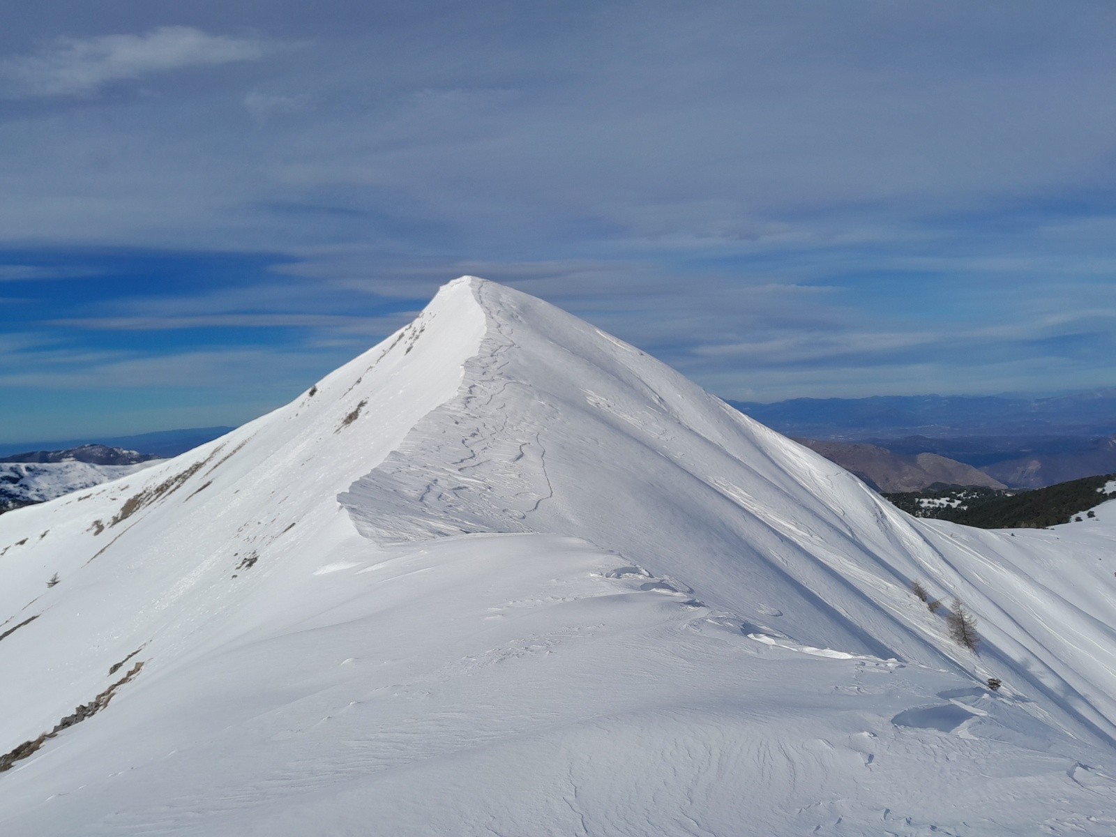 Conditions pour le ski : globalement correcte mais de tout (du dégueulasse à très bon). Croute infâme en N et NE mais parfois de la poudre ***. Neige soufflée proche des crêtes **. Neige dure ailleurs allant du très dure *** au plus souple **** (pas de décaillage)