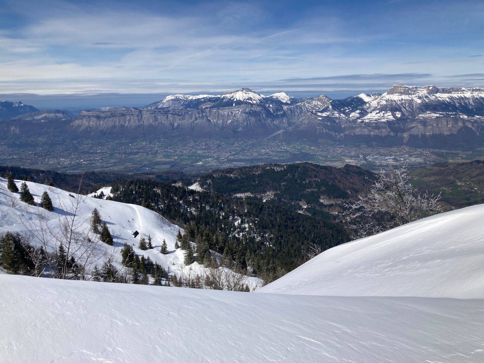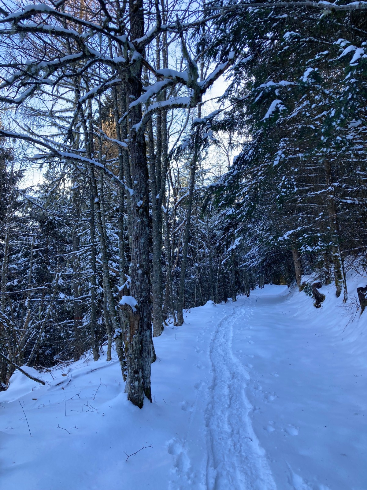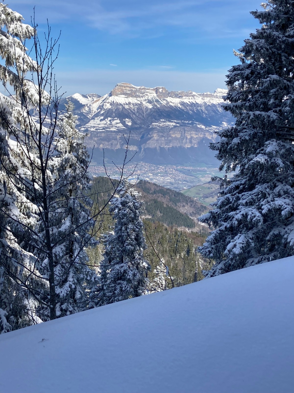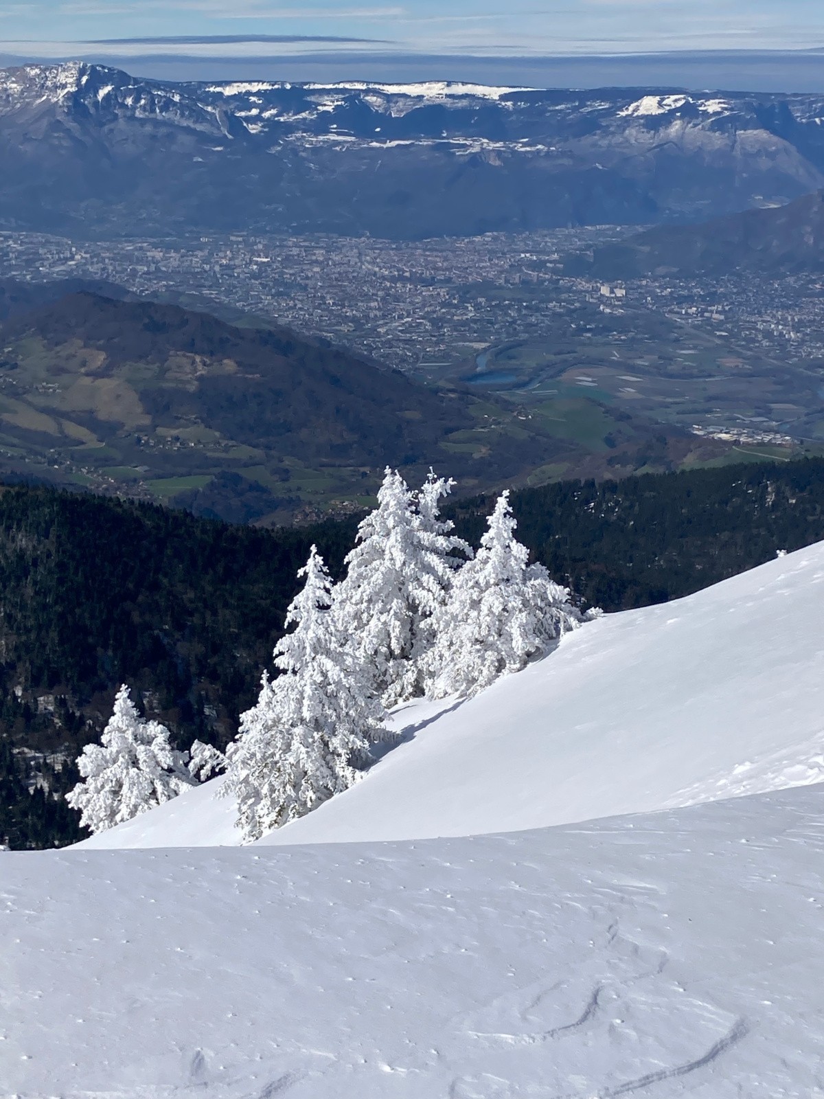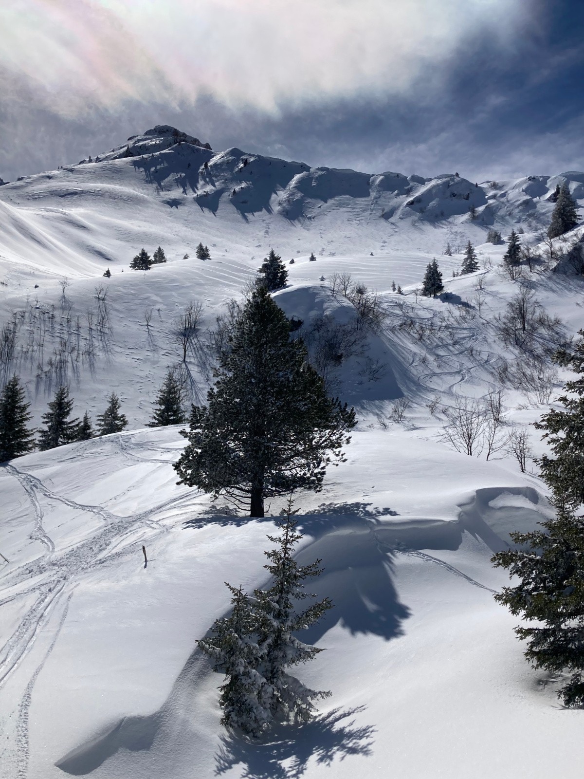 Conditions pour le ski : Excellentes, si on oublie quelques passages avec une petite croĂ»te (mais se skiant pas si mal finalement). De bons passages restĂ©s en poudre Ă l'heure de la descente dans les pentes Sud sous la crĂȘte du Mont Saint-Mury. Neige s'humidifiant dans la forĂȘt, devenant collante entre PrĂ© Mollard et le parking.