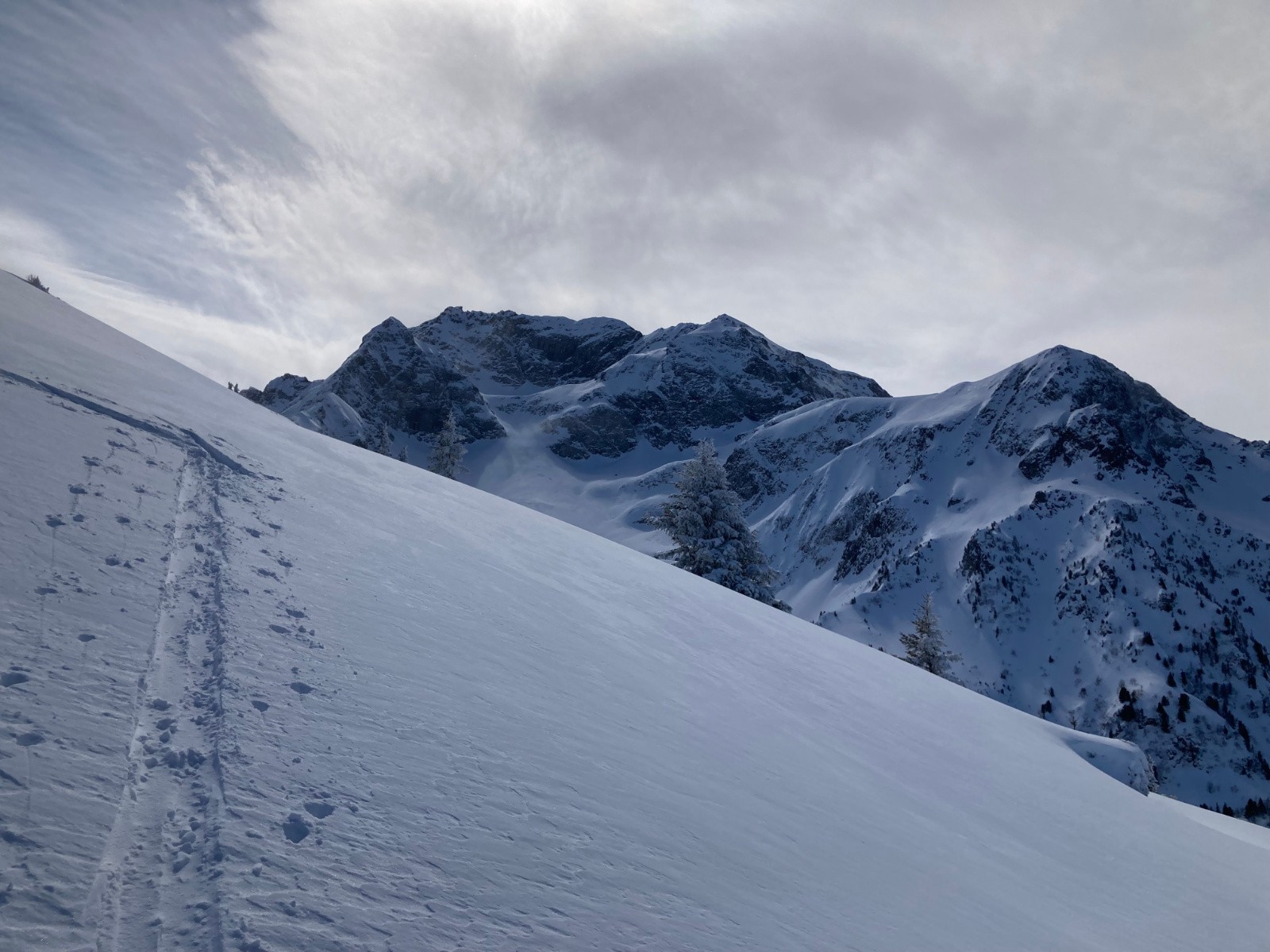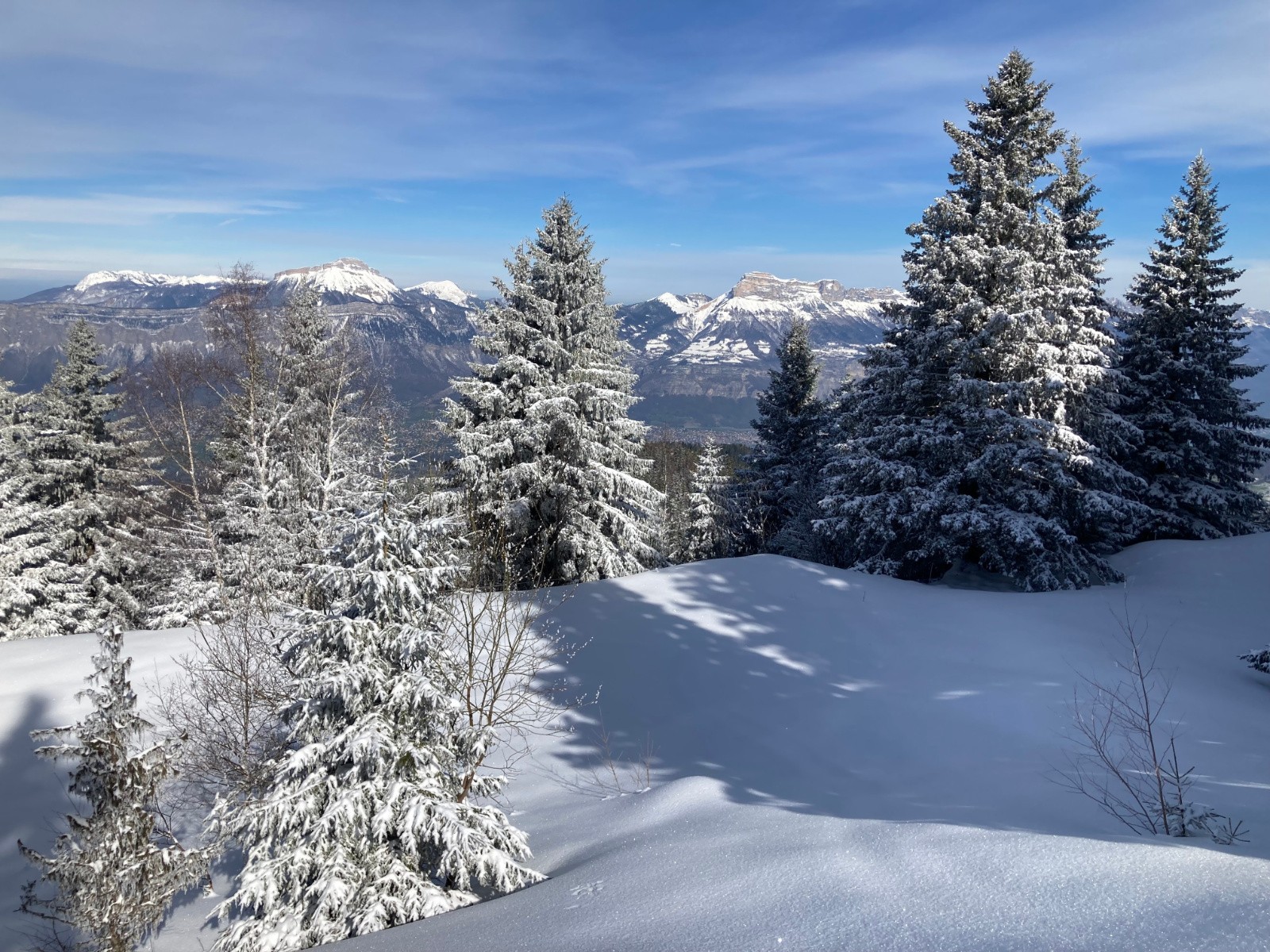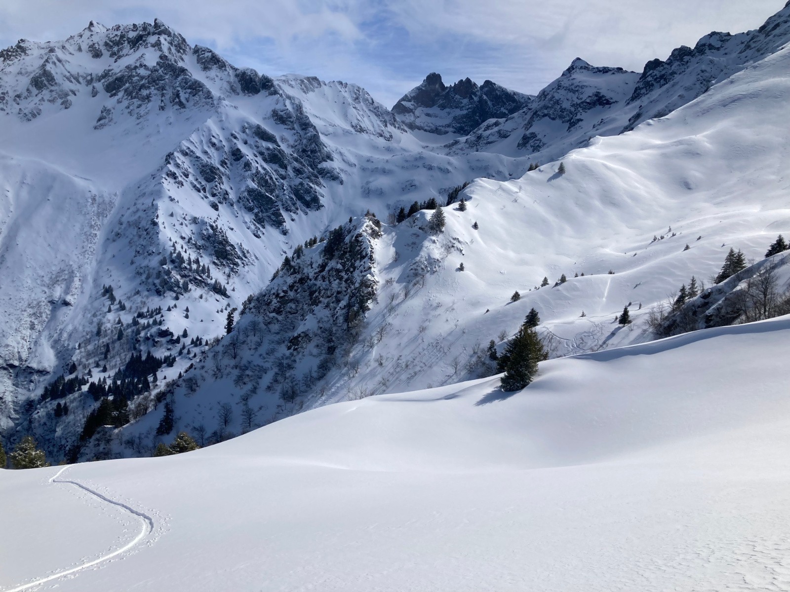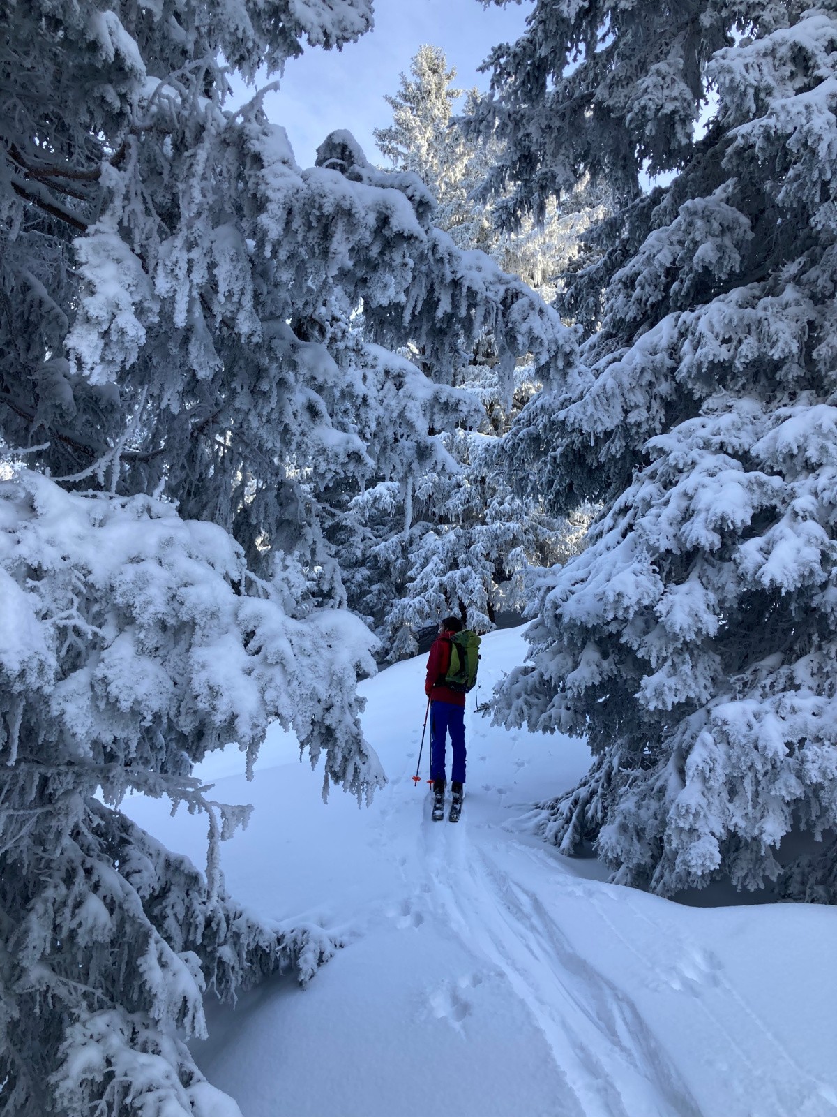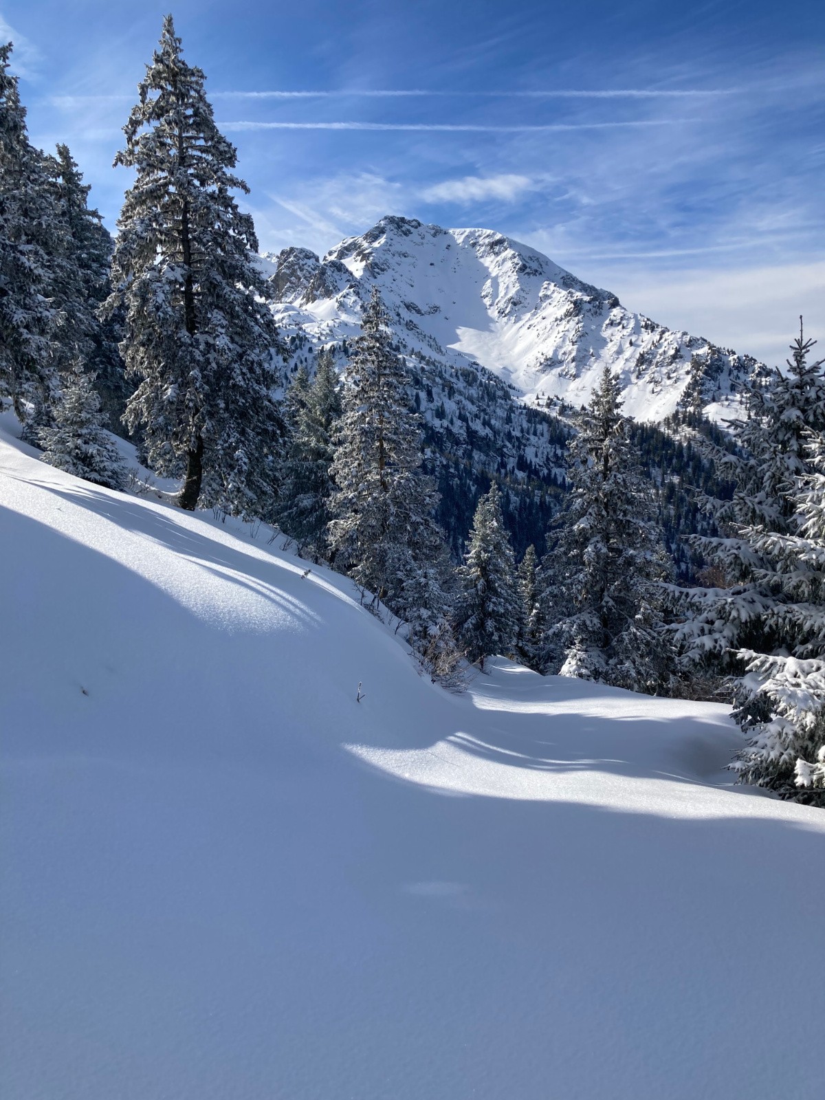 Conditions pour le ski : Excellentes, si on oublie quelques passages avec une petite croĂ»te (mais se skiant pas si mal finalement). De bons passages restĂ©s en poudre Ă l'heure de la descente dans les pentes Sud sous la crĂȘte du Mont Saint-Mury. Neige s'humidifiant dans la forĂȘt, devenant collante entre PrĂ© Mollard et le parking.