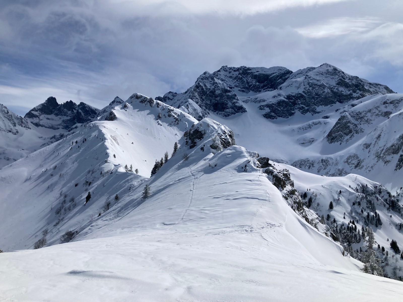 MĂ©tĂ©o/tempĂ©ratures : -4°C Ă 8h30 au parking du Col de PrĂ© Long. Beau temps, avec passages de voile nuageux. Fort vent de Nord en crĂȘte. Le temps se couvre Ă partir de 14h00