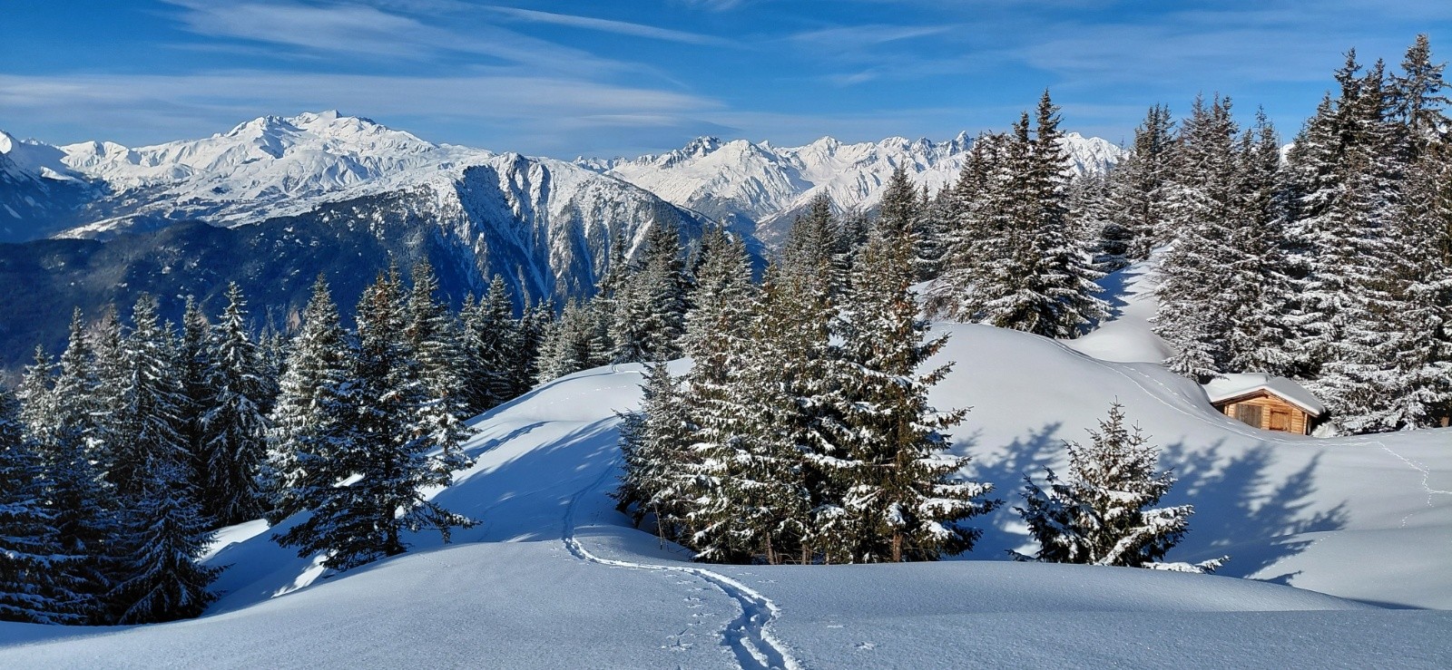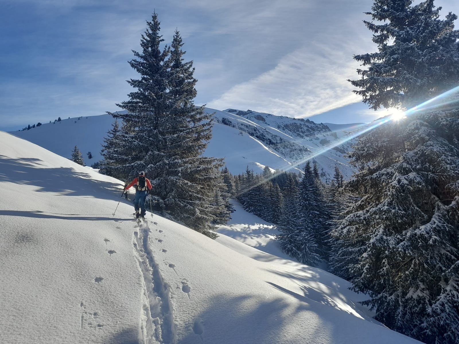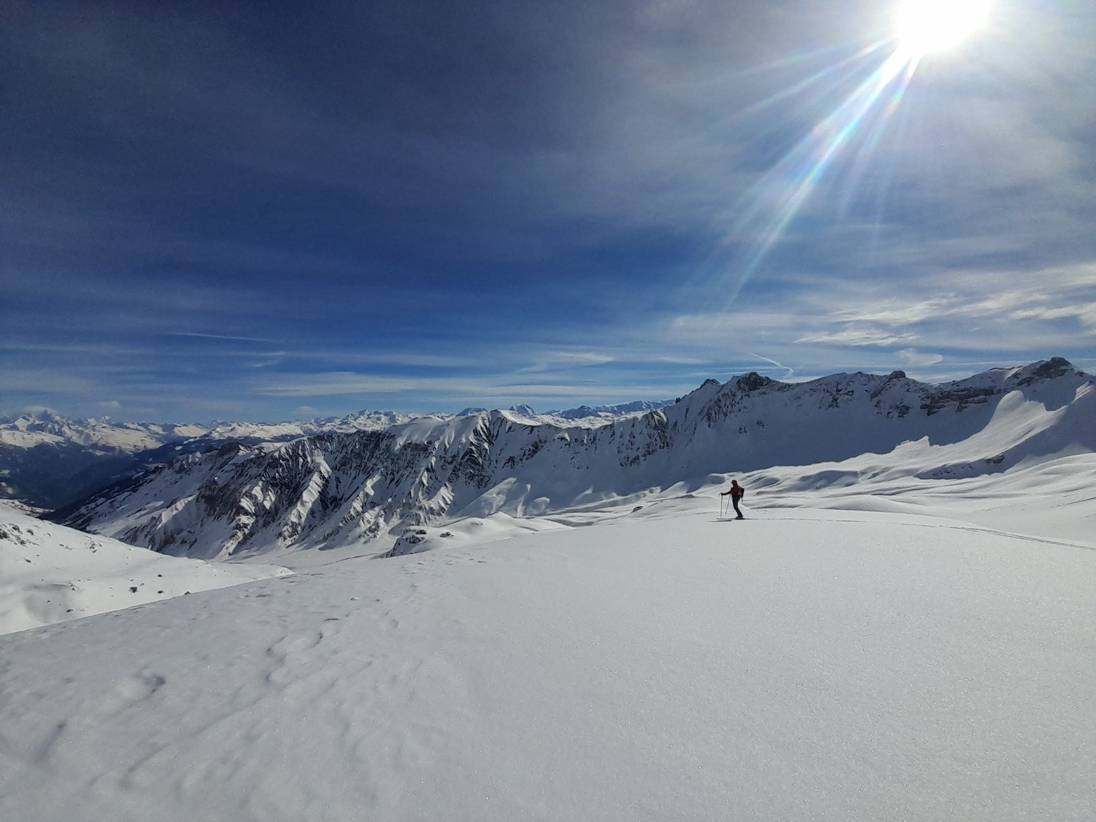 Conditions pour le ski : Très bonnes voire excellentes : vallon du Valbuche tout vierge en excellente poudre, descente Grand Coin en poudre fine moquette, Bellecombe moquette et Chanaisons un peu plus lourd