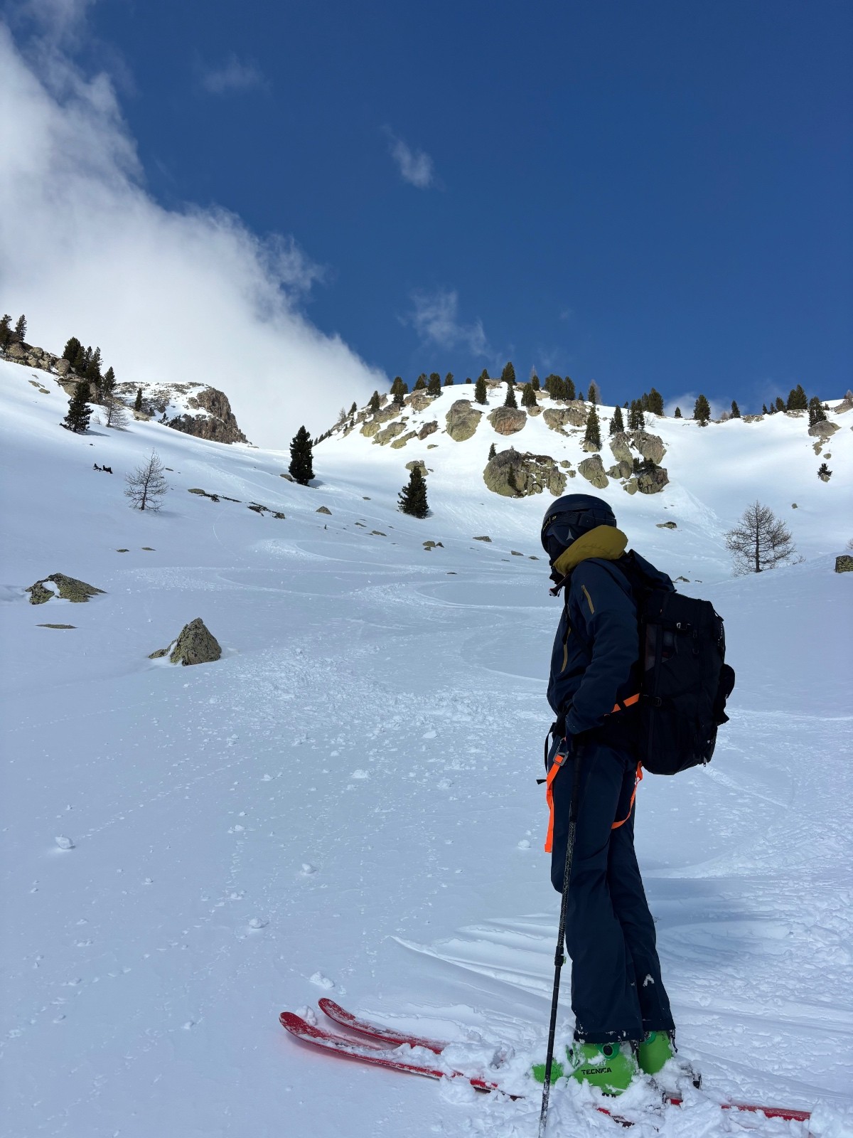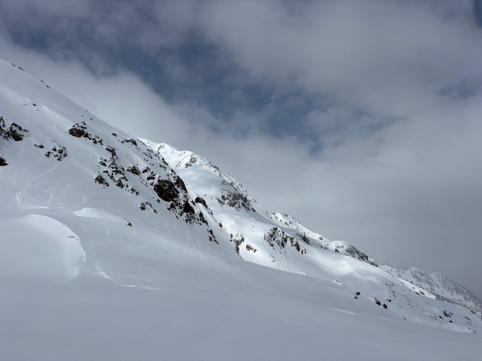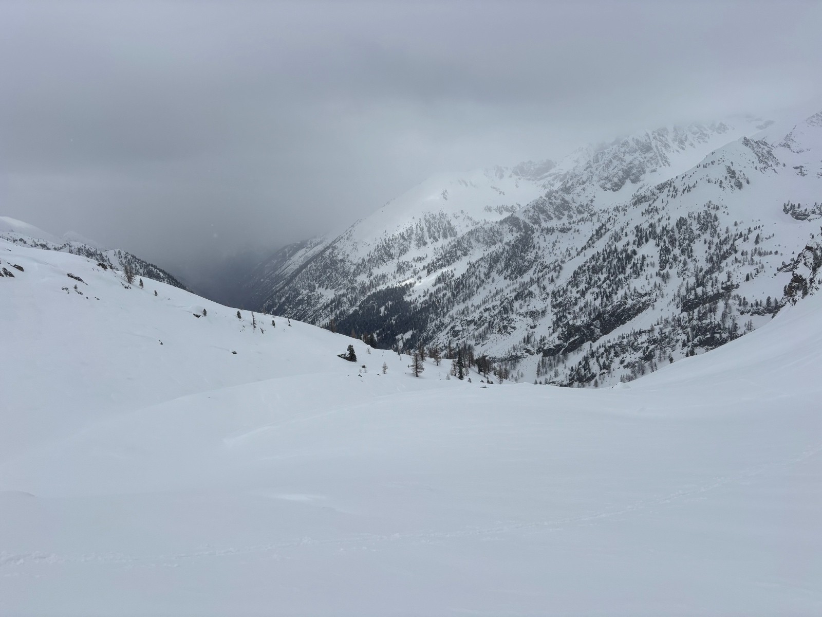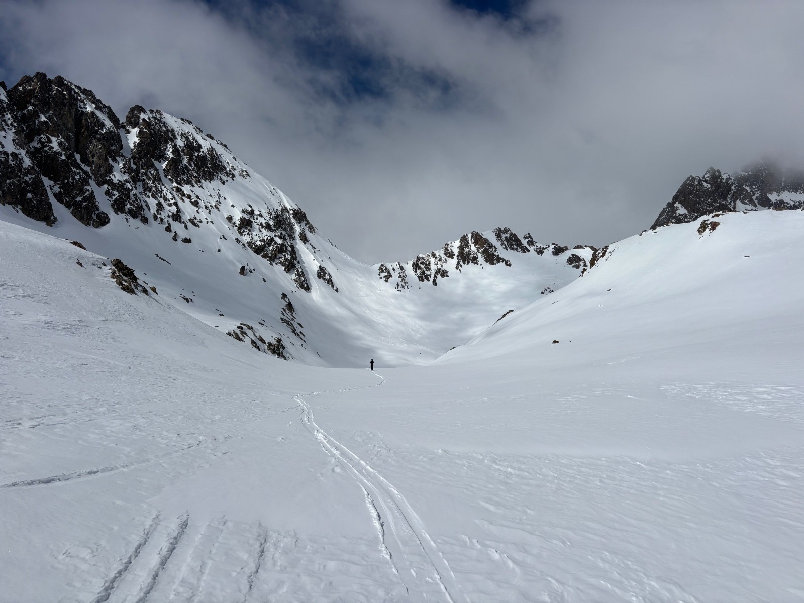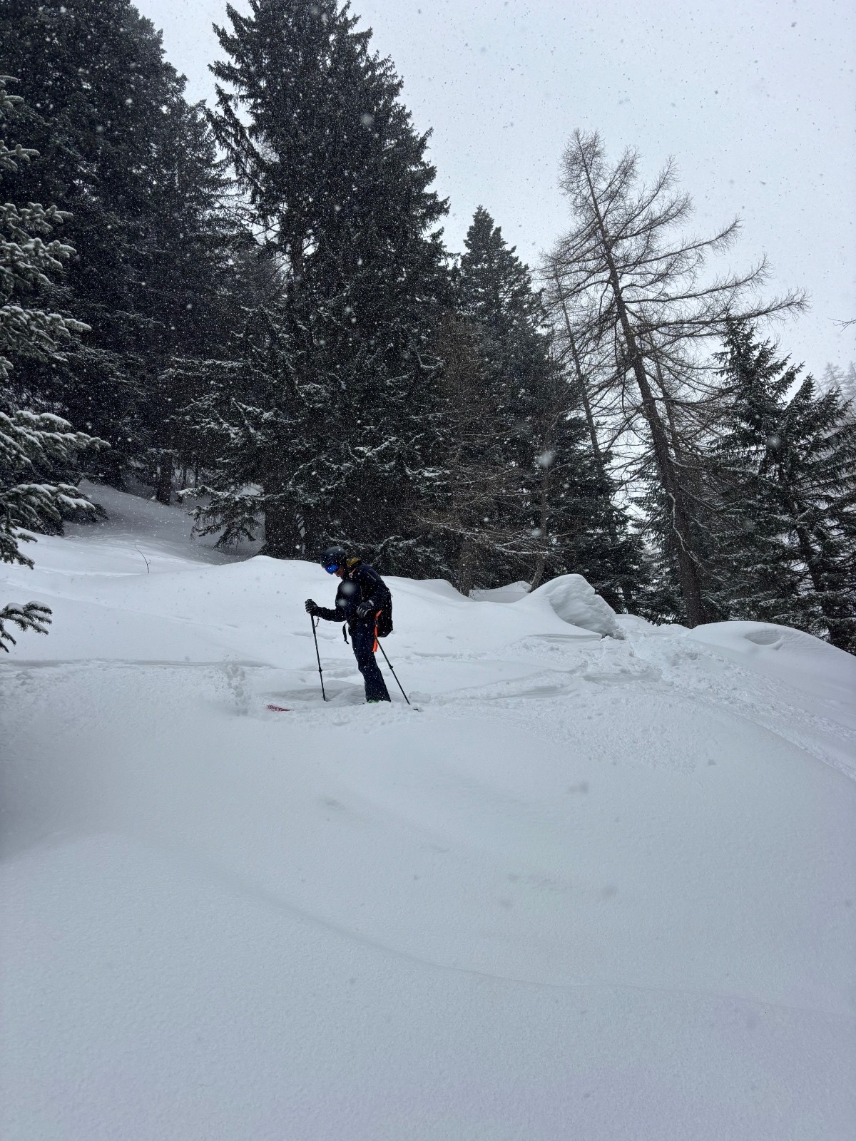 Conditions pour le ski : Belle petit couche supplementaire de poudre dans la descente de Dei Morti - Neige de printemps avec le Pas du Loup