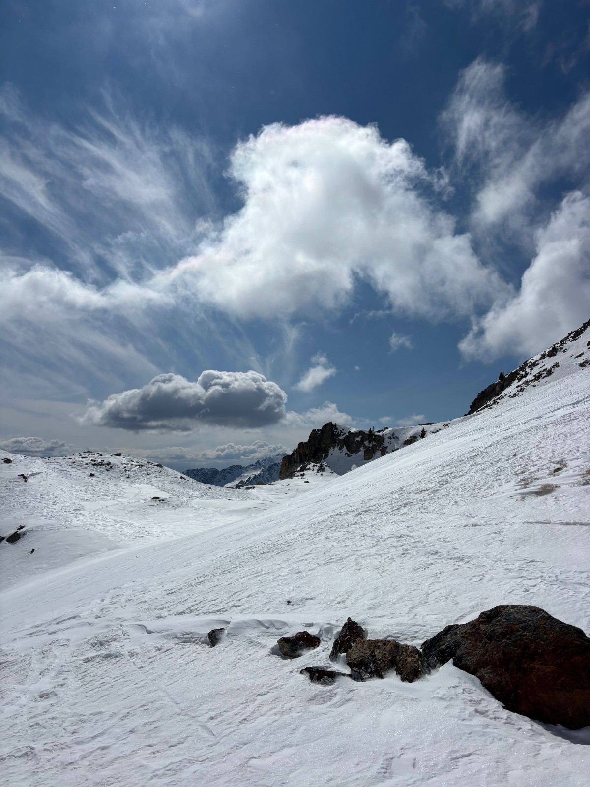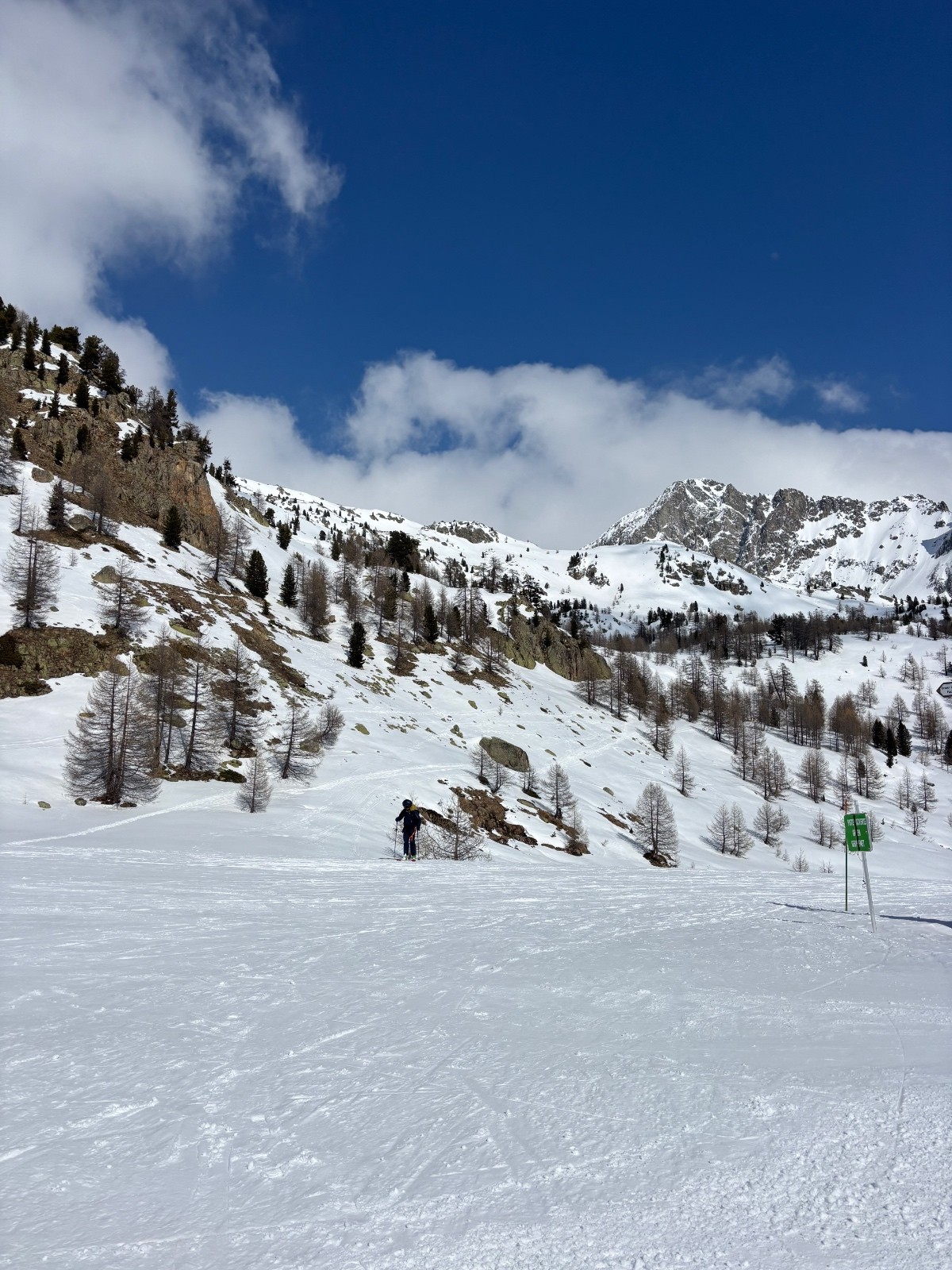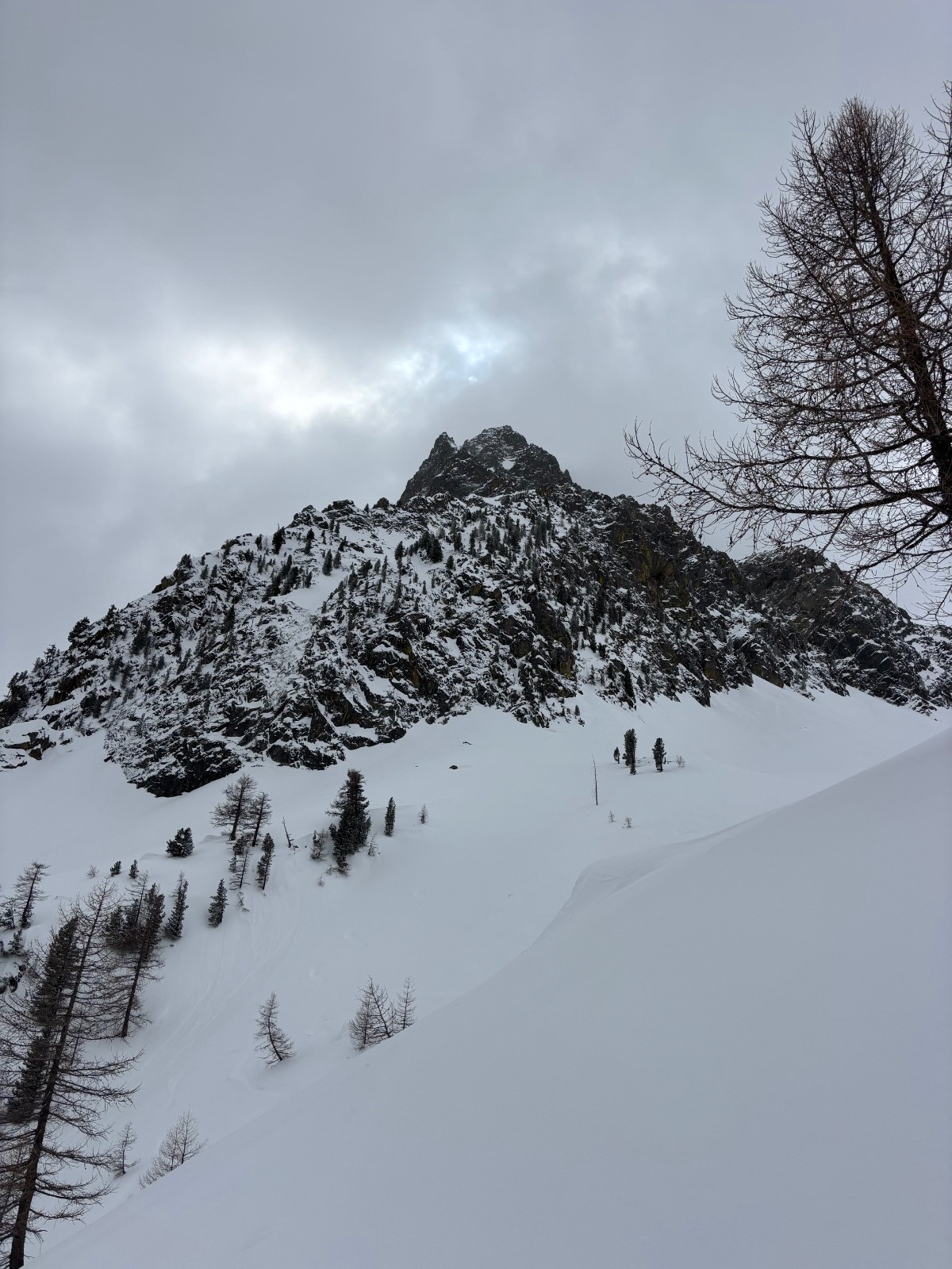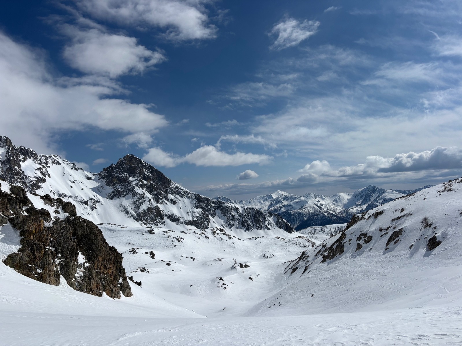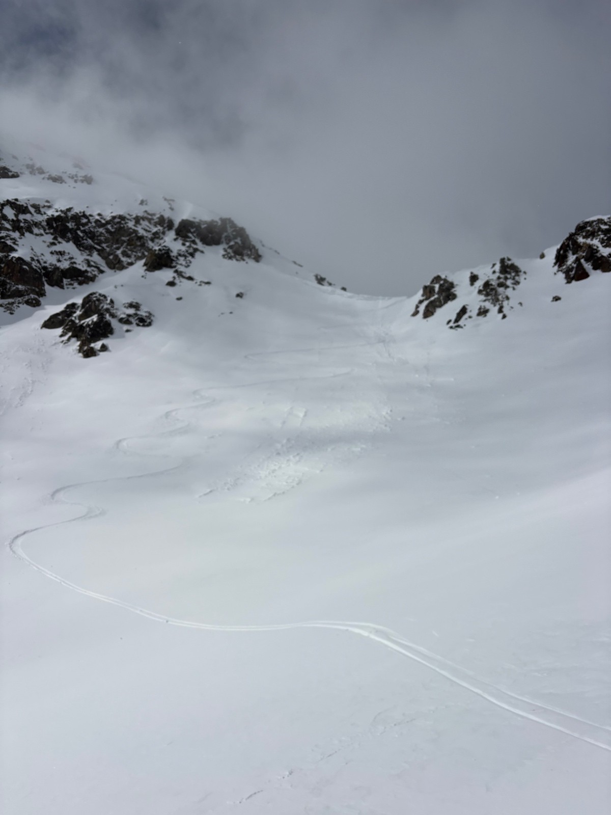 Conditions pour le ski : Belle petit couche supplementaire de poudre dans la descente de Dei Morti - Neige de printemps avec le Pas du Loup