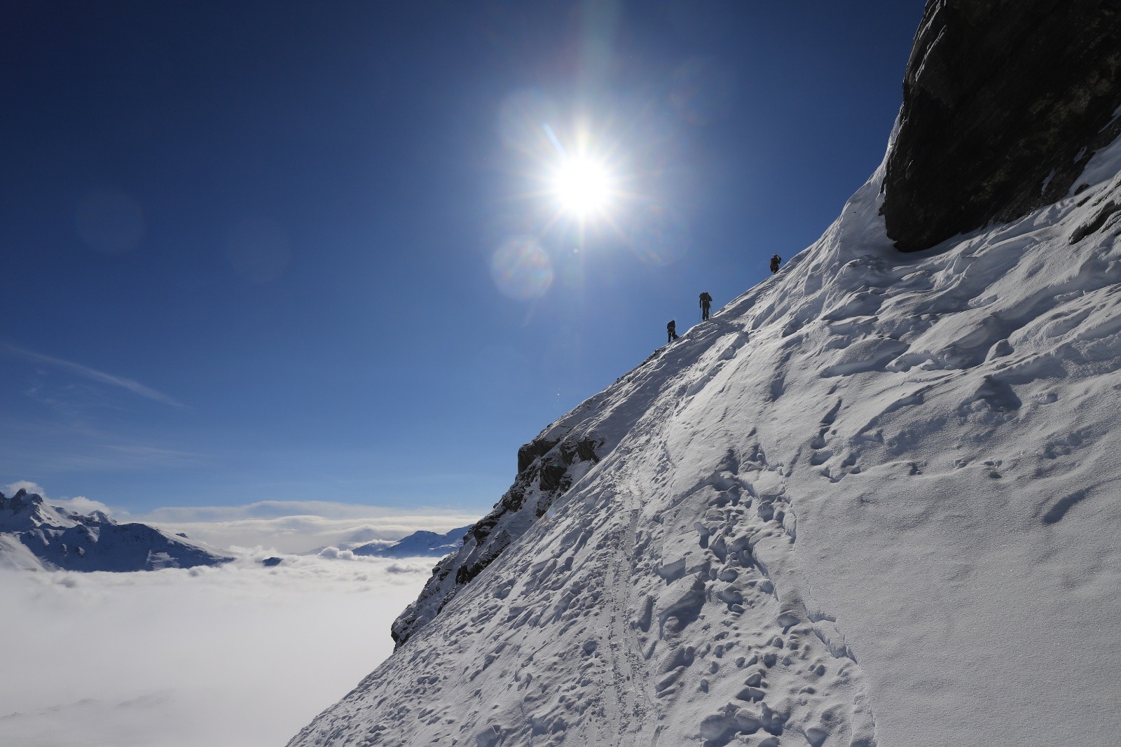 J1 : en face sud de la Pointe Chevrière : au moins 3 grands woufs entendus dans des zones d'accus, couche fragile bien présente, mais pentes < 30 °. On n'a rien vu partir.