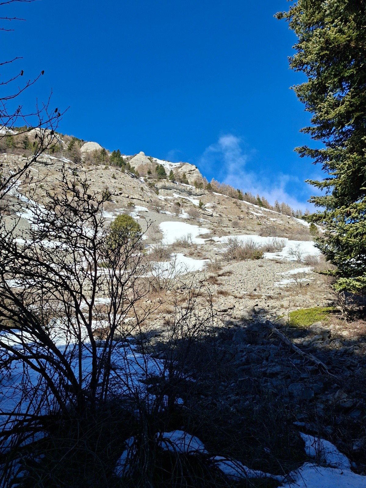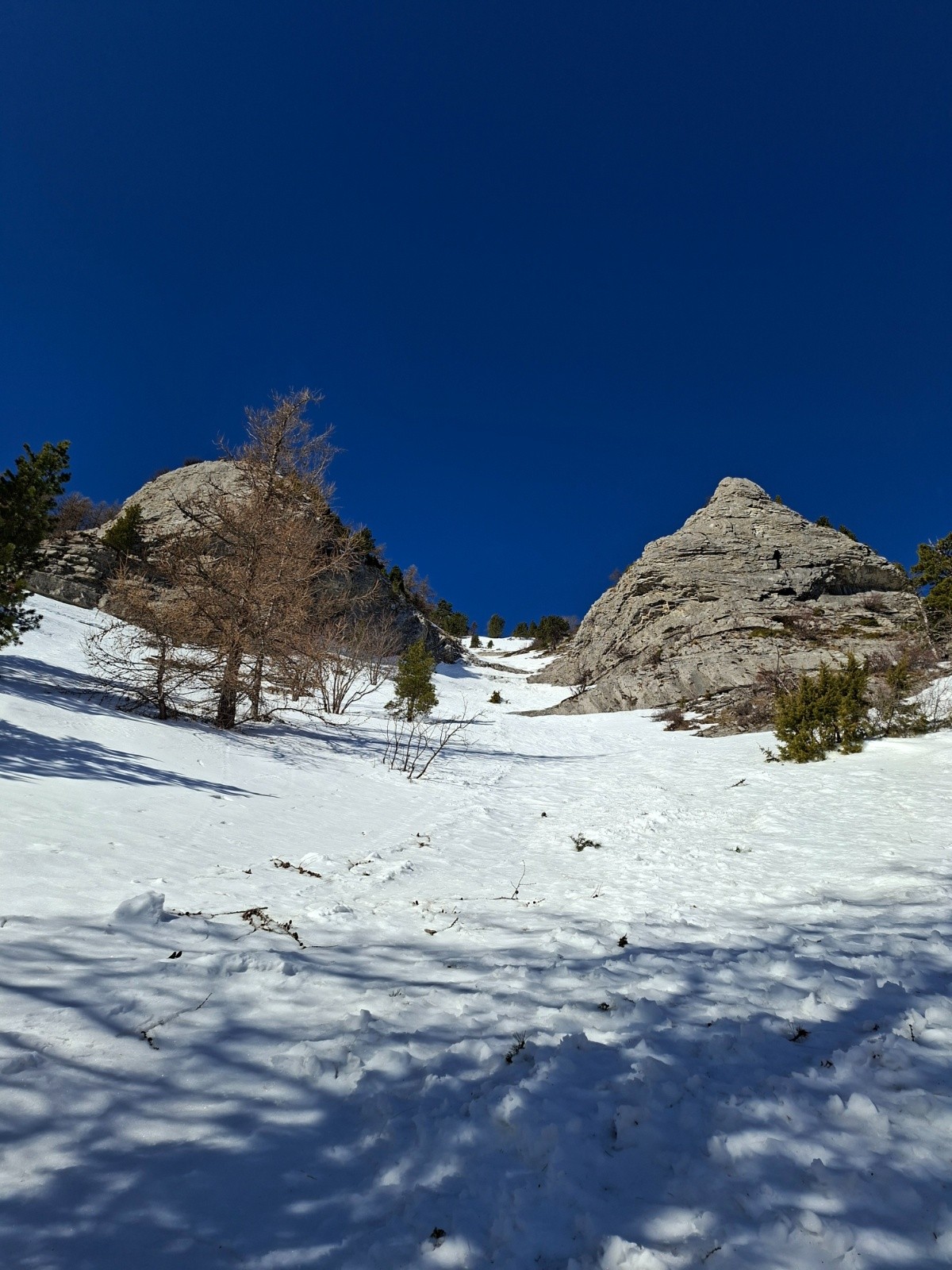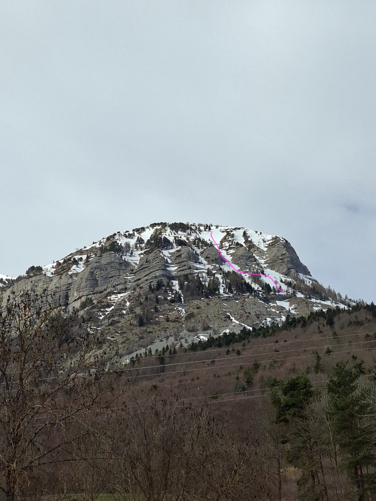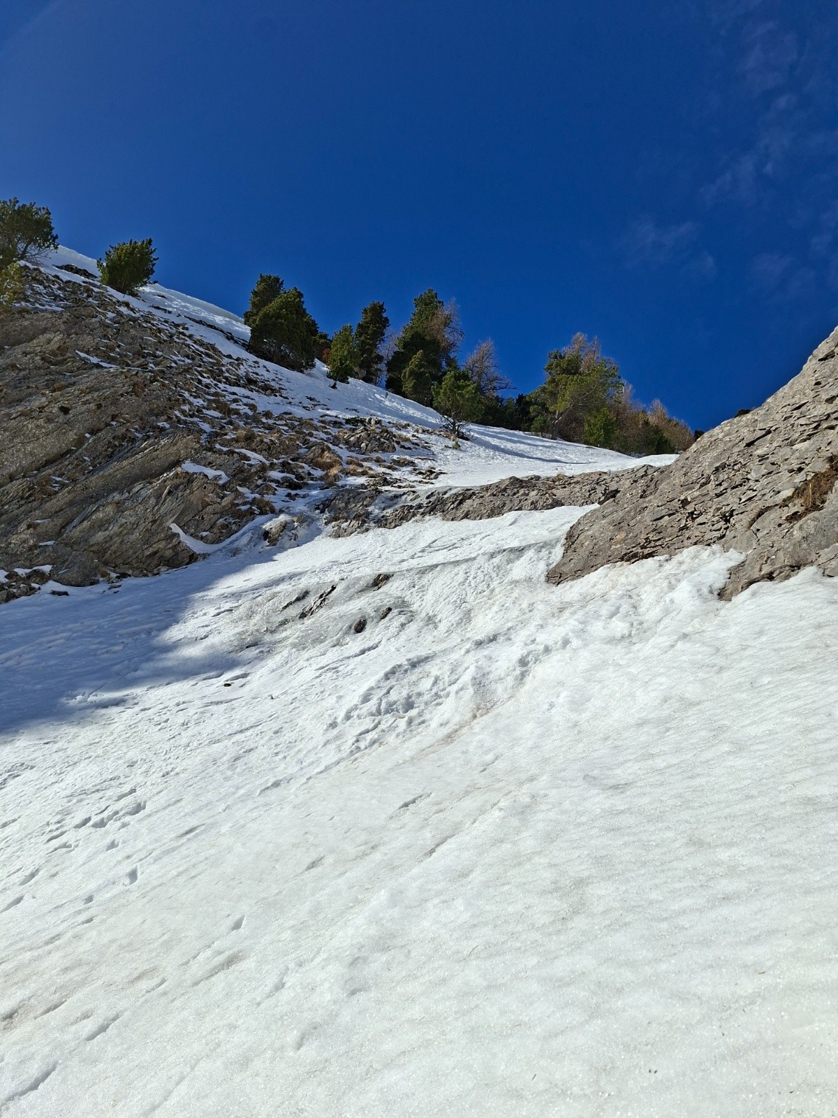 Itinéraire suivi : Bois vert, sentier d'été jusqu'au pt 1440 sous les Rochers du midi, couloir ENE (à gauche de celui en bleu sur le topo). Descente par le meme itineraire.