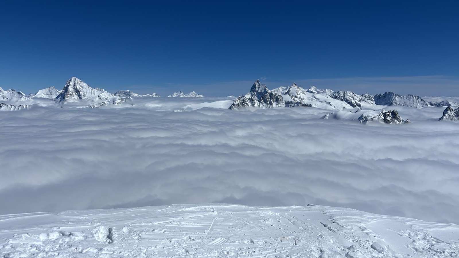 Arrivés à 3400 l'horizon se dégage pour laisser place à une splendide mer de nuages isohypse de G'név à Zurich et au-delà.