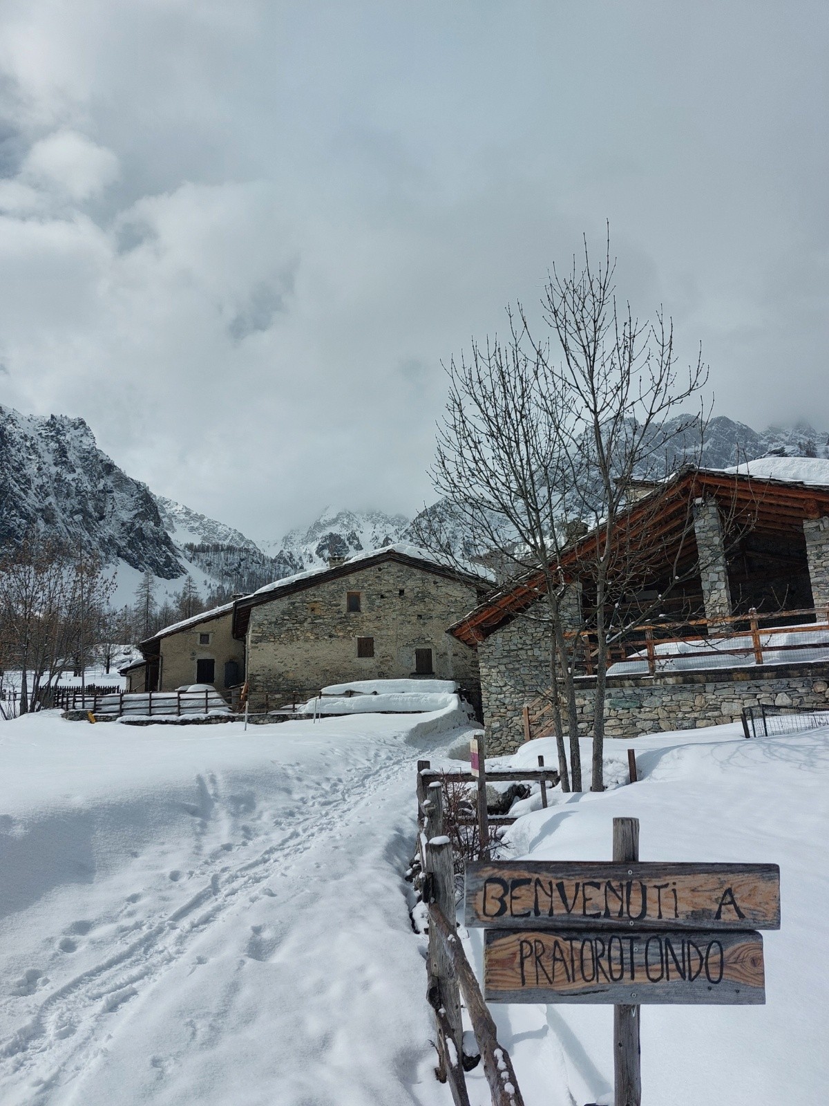 Du monde au départ ce dimanche, c'est la balade sûre dans les mélèzes du coin recommandée par le gardien du refugio Campo Base. On suite le ruisseau en rive gauche par le sentier, puis traversée du pont au village de Pratorotondo (magnifique). Bascule en sud-est vers vallonetto et la forêt de melezes.