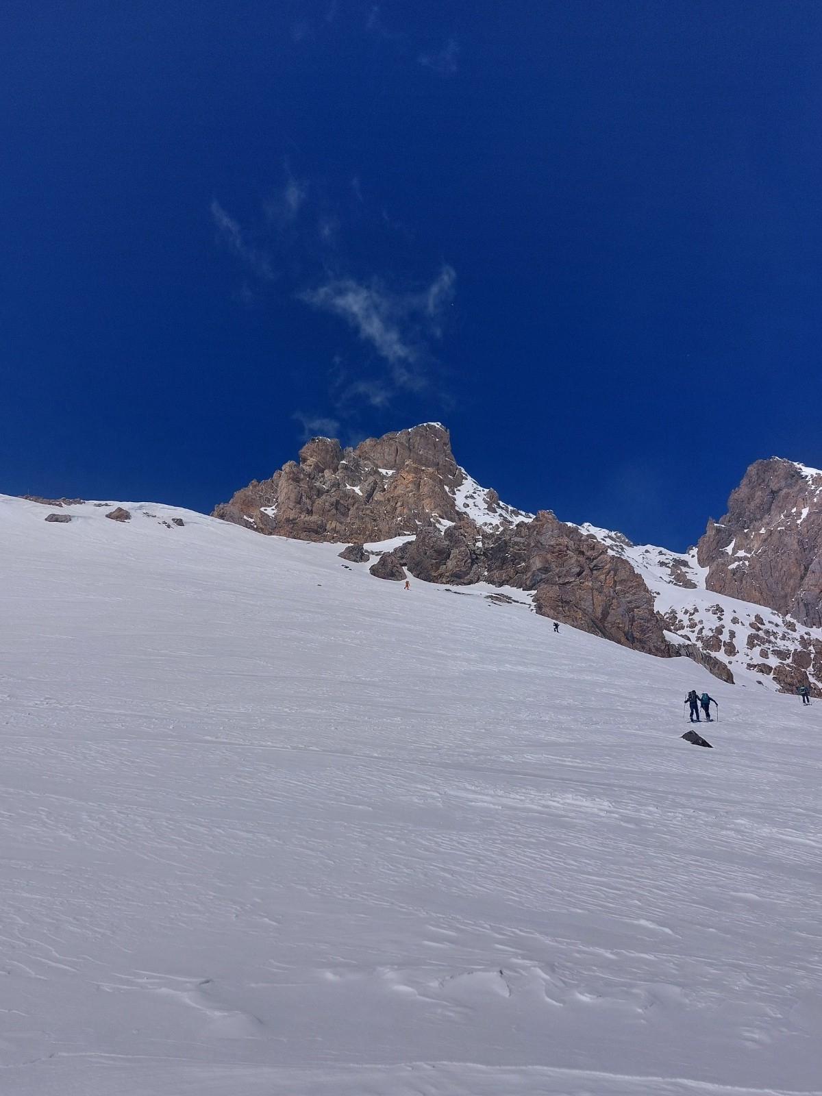 Conditions pour le ski : pas ouf sur le haut, neige très changeante et croutée puis moquette excellente en sud et jusqu'en bas, on s'en est remis 200m en versant sud-est bien revenu !