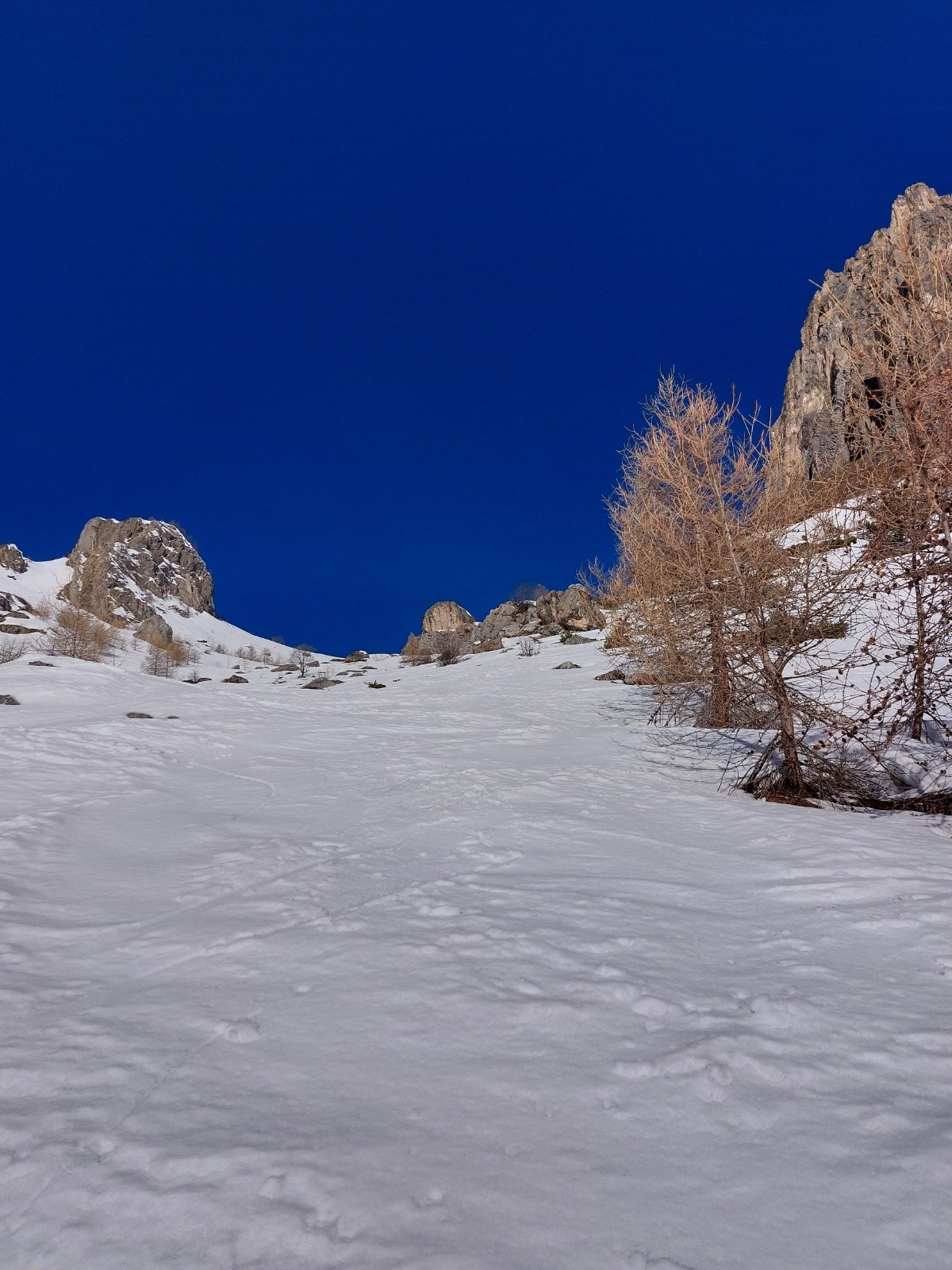 Itinéraire suivi : la classique jusqu'au col, la trace est faite (raide...), du monde malgré qu'on soit un lundi (des italiens et des suisses allemands)