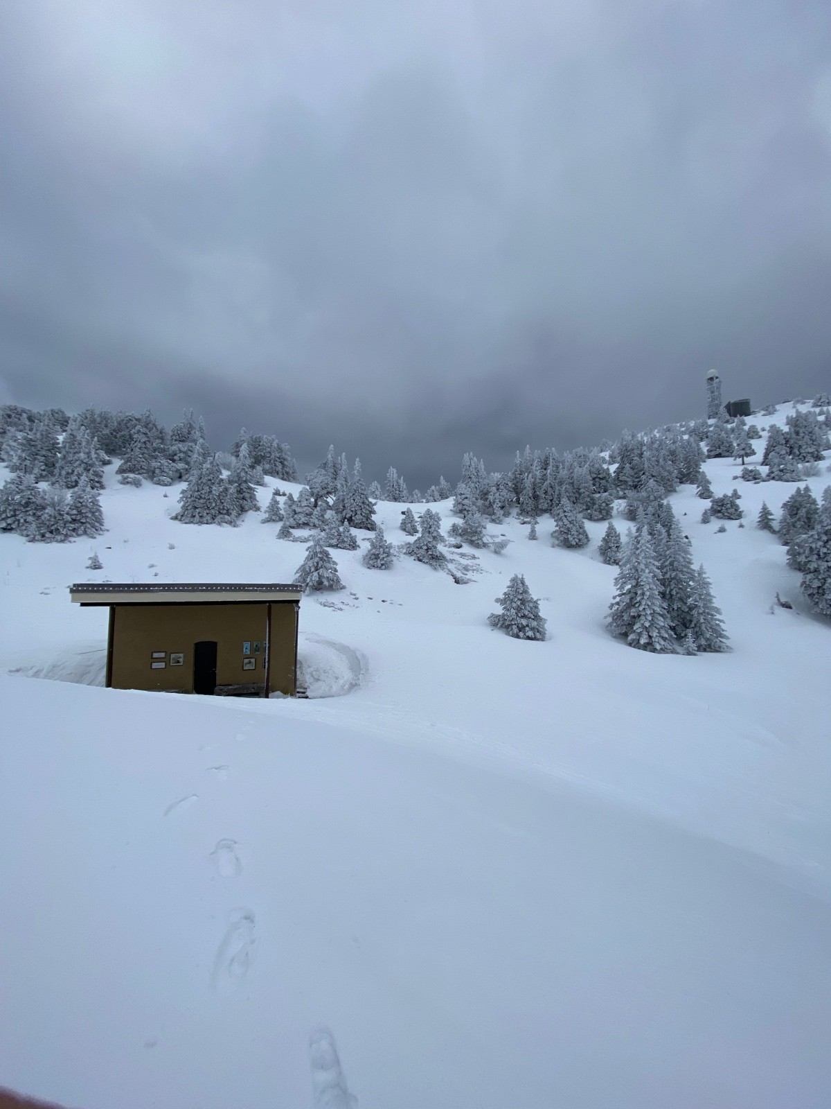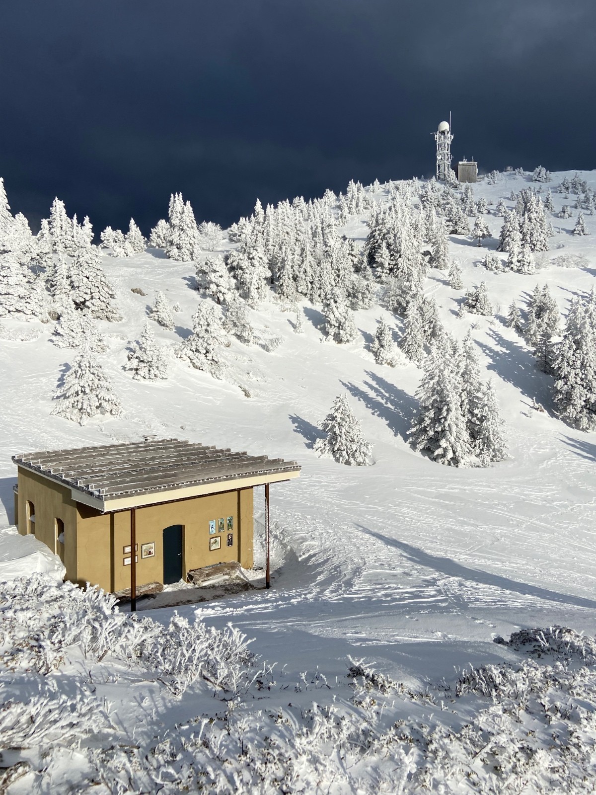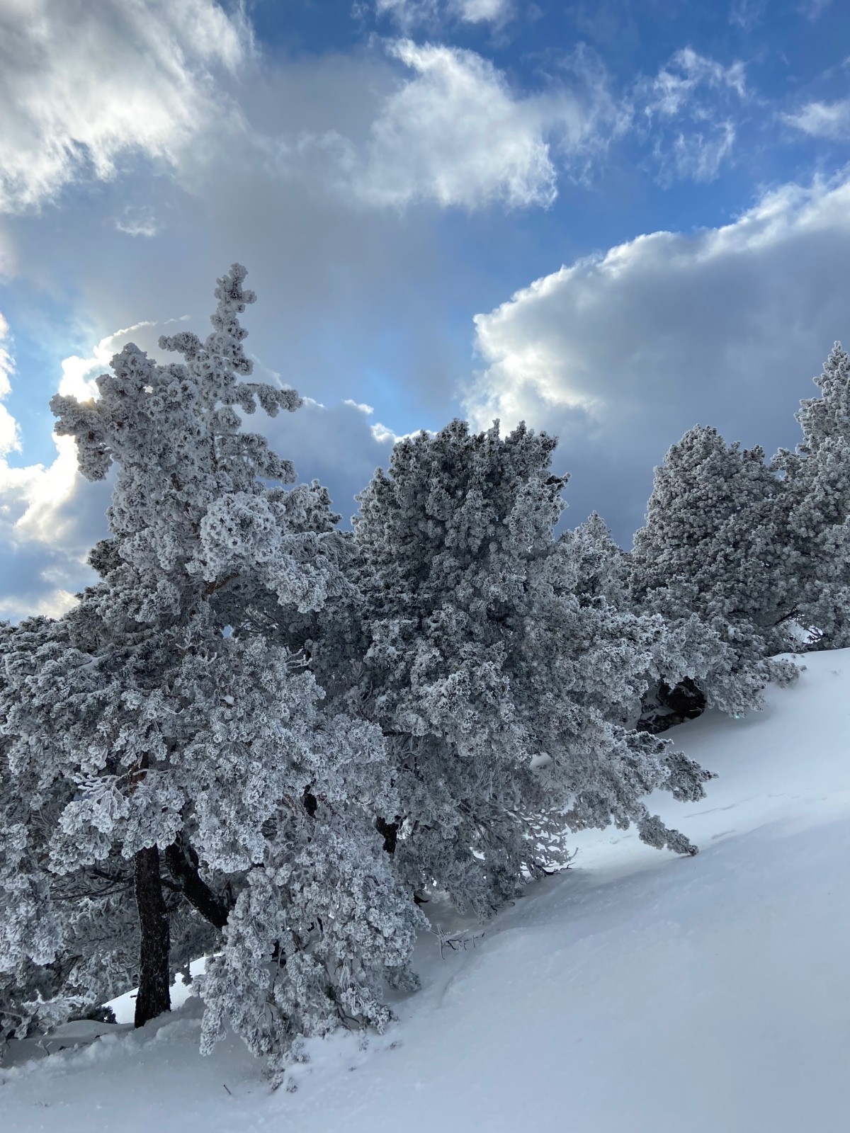 Les arbres sont complètement givrés à partir de 1500m.