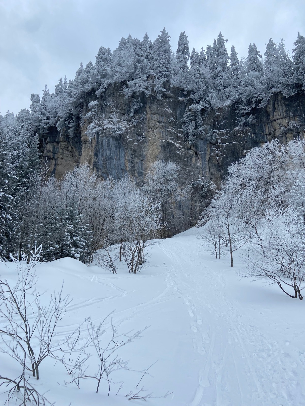 Roc de Bataillon 1440m, les arbres commencent à être givrés