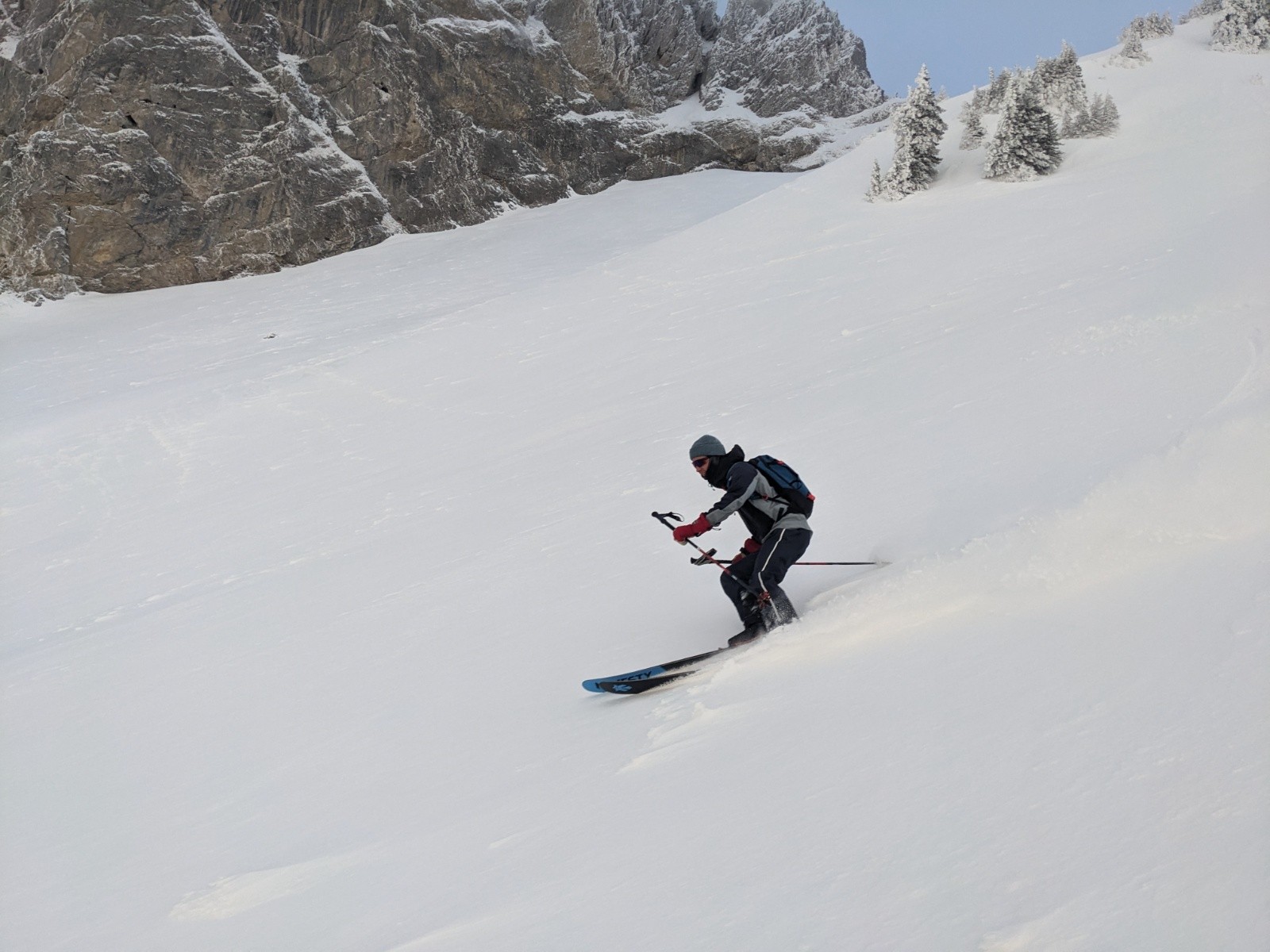 Combe NO de petite Chaurionde entre très bonne portion en poudre tassée et portion croûté fin pas dérangeant en skiant/surfant vite.