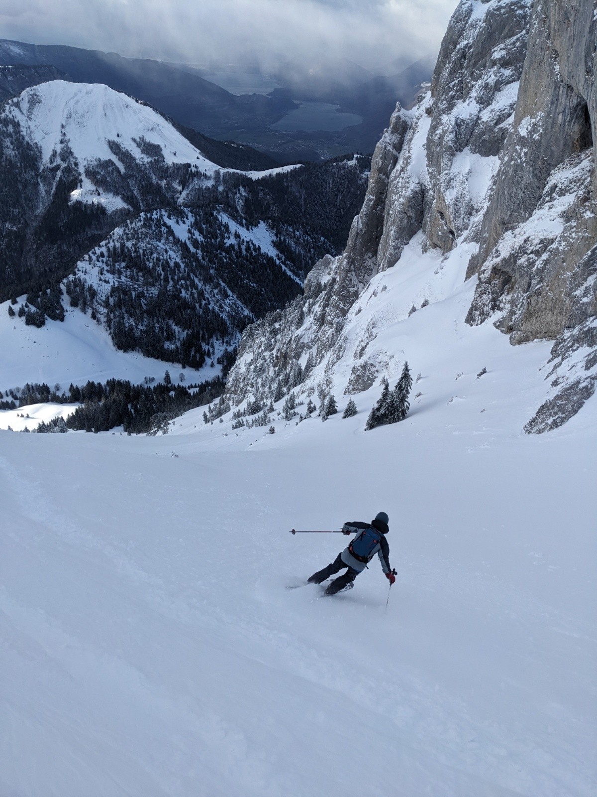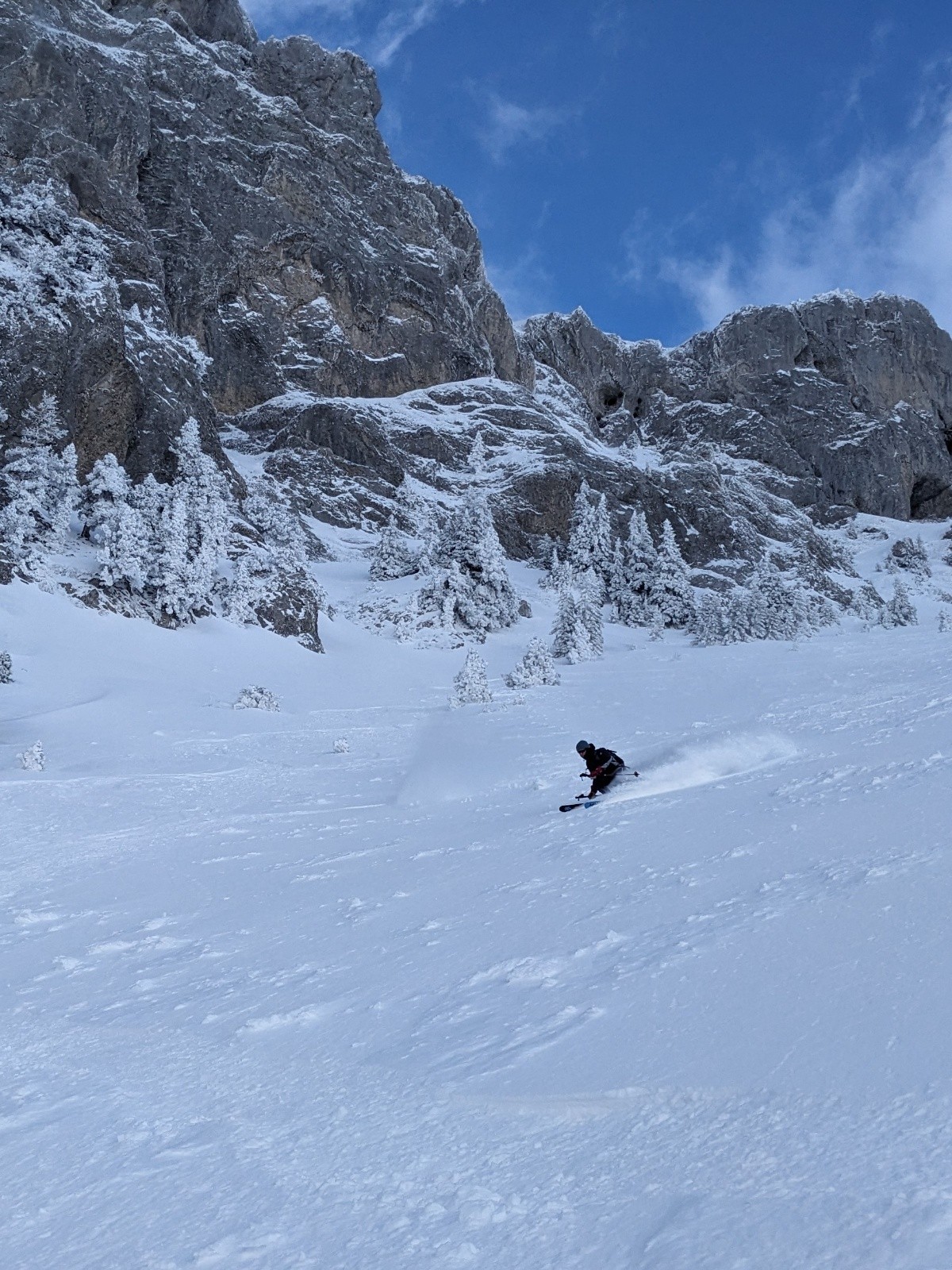 Bas de la combe, excellent, poudreuse lisse.