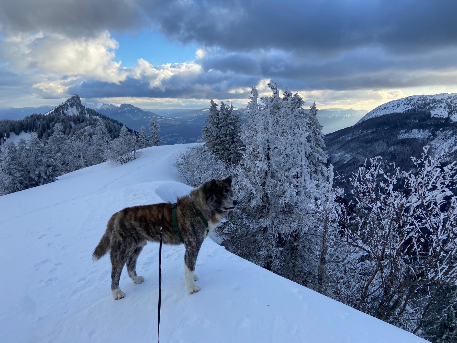 Je n'ai pas souvent eu à renoncer à mi-chemin, mais je ne regrette vraiment pas, la petite piste dans la forêt a un côté sauvage très beau, et l'arrivée sur la crête offre une vue surprenante. On s'est certainement régalés davantage à descendre par là que par la route, Senshi préfère d'habitude la neige damée mais là ça passait parfaitement, et en pleine semaine à cette heure-là nous étions quasi seuls.