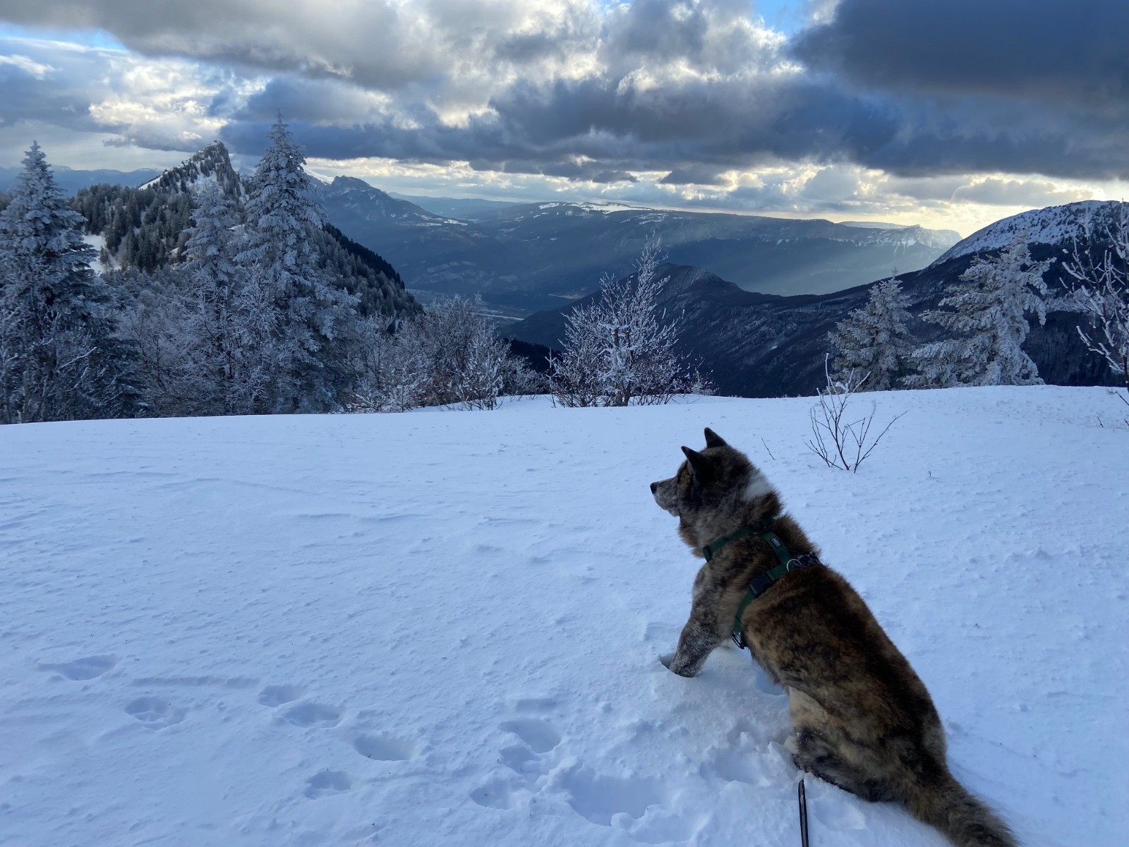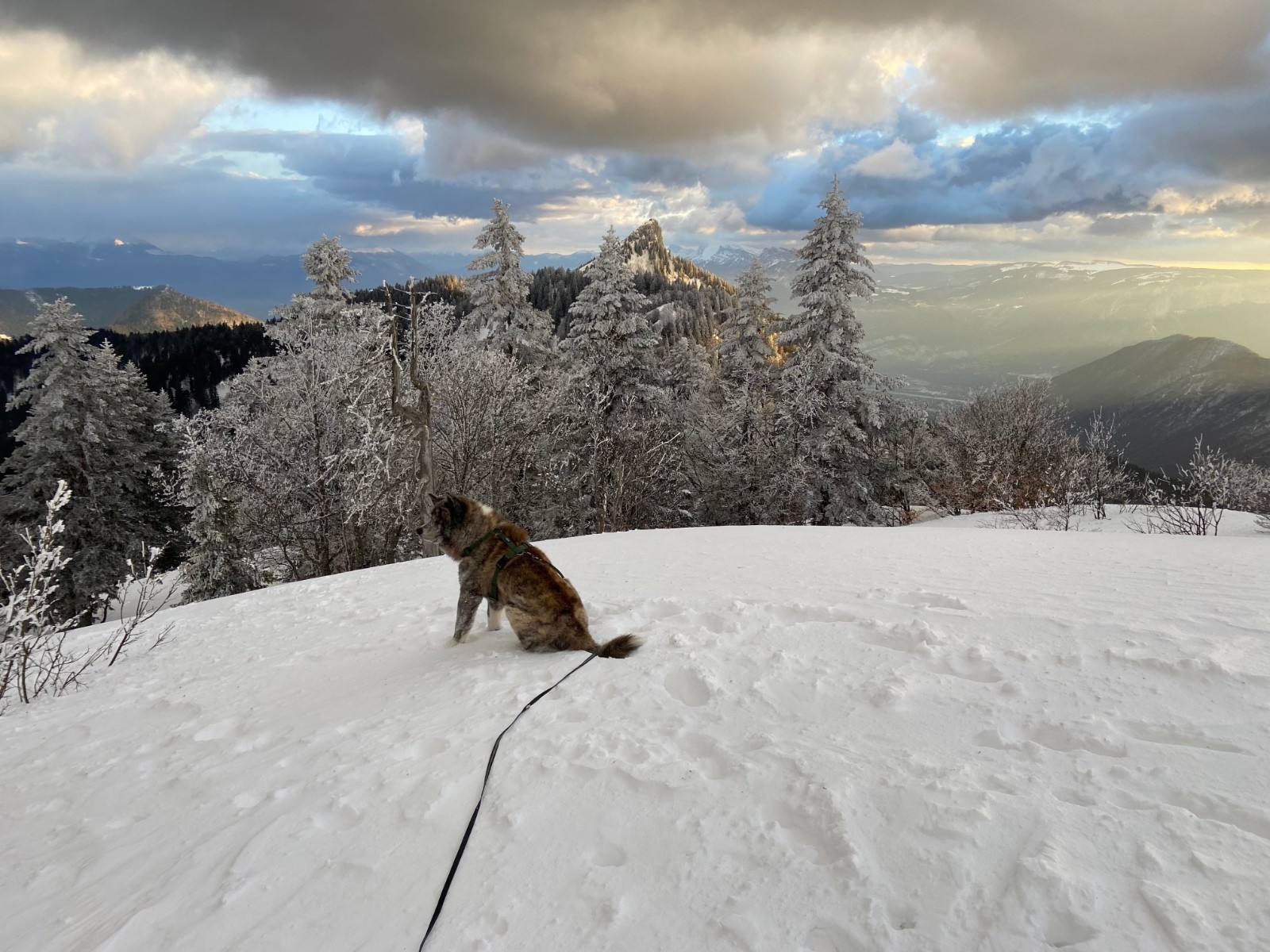 Départ très venteux à 17h15 à La Prairie du Col de Porte, avec mon chien Senshi pour compagnon, et pour objectif le Charmant Som avec sa vue spectaculaire.