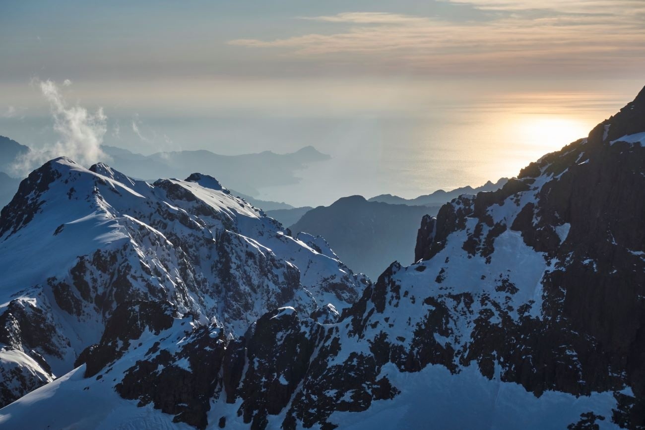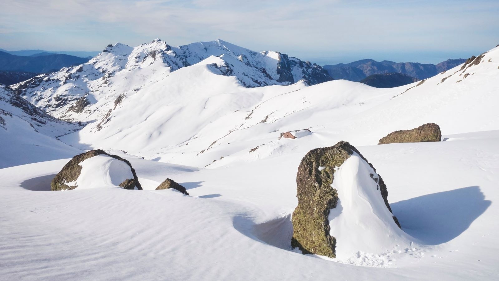 Enfin, nous avons trouvĂ© ici ce que nous Ă©tions venus chercher, et probablement mĂȘme un peu plus, en laissant place Ă lâimprĂ©vu. MĂȘme si le terme est souvent galvaudĂ©, pour nous simples « continentaux », il faut bien avouer que nous avons Ă©tĂ© « dĂ©paysĂ©s », probablement davantage que dans nâimporte quel massif des Alpes. Nous connaissions tous ces montagnes corses en version estivale. Et pourtant, nous avons Ă©tĂ© bluffĂ©s par lâesthĂ©tique de ces montagnes drapĂ©es de leur manteau blanc. La neige rĂ©haussent les contours, rendant le relief plus effilĂ©, plus acĂ©rĂ©... Avec lâaide du vent, elle plĂątre les faces les plus verticales Ă la maniĂšre des parois patagoniennes. Dâaucuns qualifieraient ces sommets imposants « dâalpins », Ă moins dâinventer un terme propre Ă ces montagnes corses marquĂ©es par lâinsularitĂ© et la proximitĂ© de la merâŠ