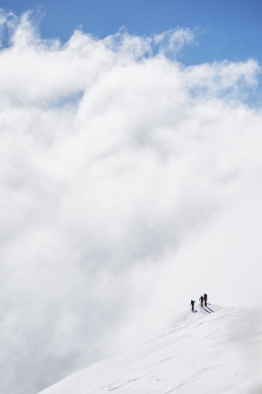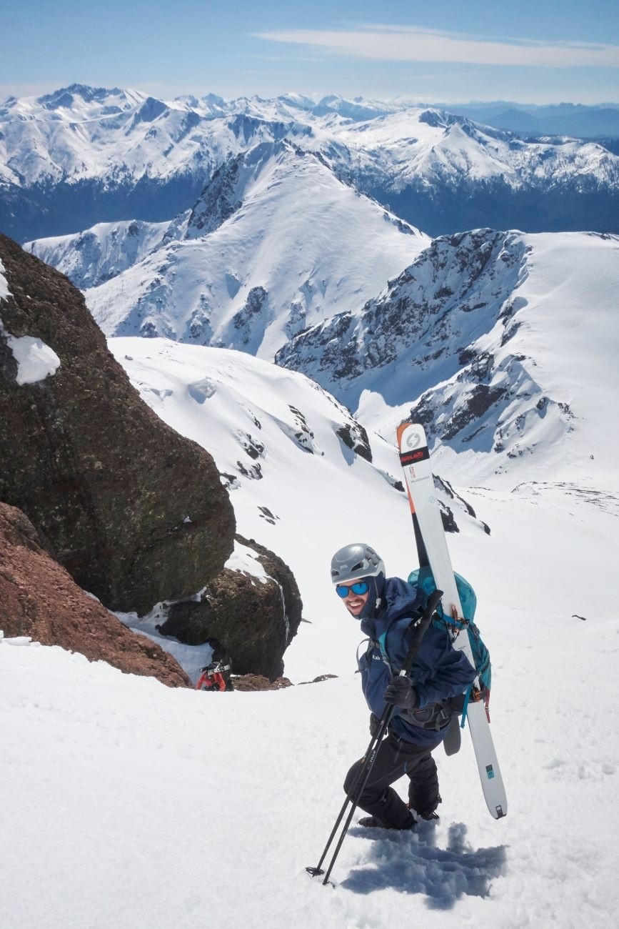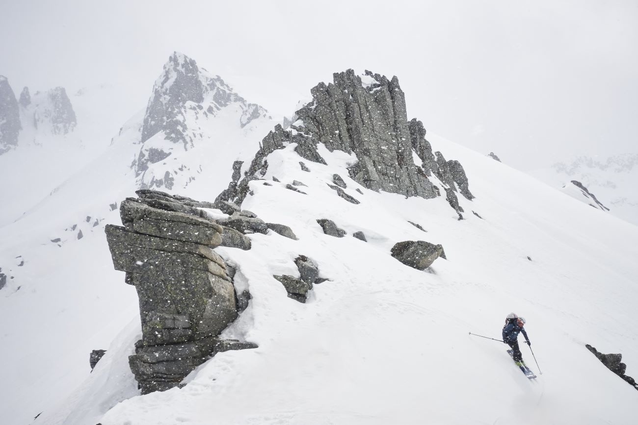 En dĂ©finitive, nâaurait-on pas trouvĂ© dans cette Corse, si proche et pourtant si diffĂ©rente, ce que certains partent chercher plus loin ? Skier au-dessus de la mer des calanches de Piana nâest-il pas aussi jouissif que de tracer des courbes dominant les fjords ? Les pins laricios de Radule, au port monumental, ne sont-ils pas aussi « exotiques » que les araucarias dâAmĂ©rique du Sud ? Et de ce sommet enneigĂ© de la Paglia Orba, la « Reine des montagnes corses » (dâaprĂšs un pionnier de lâalpinisme corse, FĂ©lix Von Cube), nâĂ©mane-t-il pas un esthĂ©tisme comparable Ă celui du Cerro Torre ou du Fitz Roy ? MĂȘme sâil y a autant de rĂ©ponses que de skieurs, nous nous sommes posĂ©s toutes ces questions.