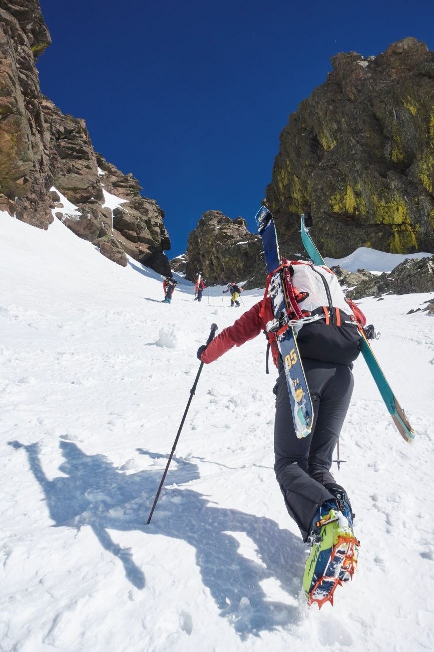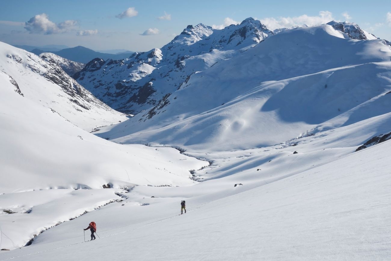 Bref, mĂȘme si la mĂ©tĂ©o nous a jouĂ© des tours, câĂ©tait lâannĂ©e pour profiter de la neige corse ! Bien sĂ»r, nous aurions pu aussi rĂ©aliser lâalta strada uniquement Ă ski, ce qui implique : i) dâorganiser des dĂ©pĂŽts de nourriture ou une logistique Ă©nergivore et, ii) de rester en altitude, sans possibilitĂ©s aisĂ©es de sâĂ©chapper vers les vallĂ©es plus riantes, en cas de mauvais temps.