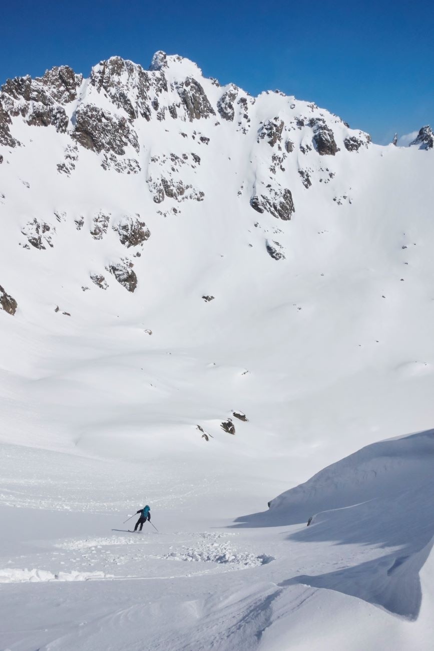 Conditions pour le ski : Alternance de neige de névés denses et bien skiantes (quand il faisait mauvais) et de neige transfo (moquette tip-top)