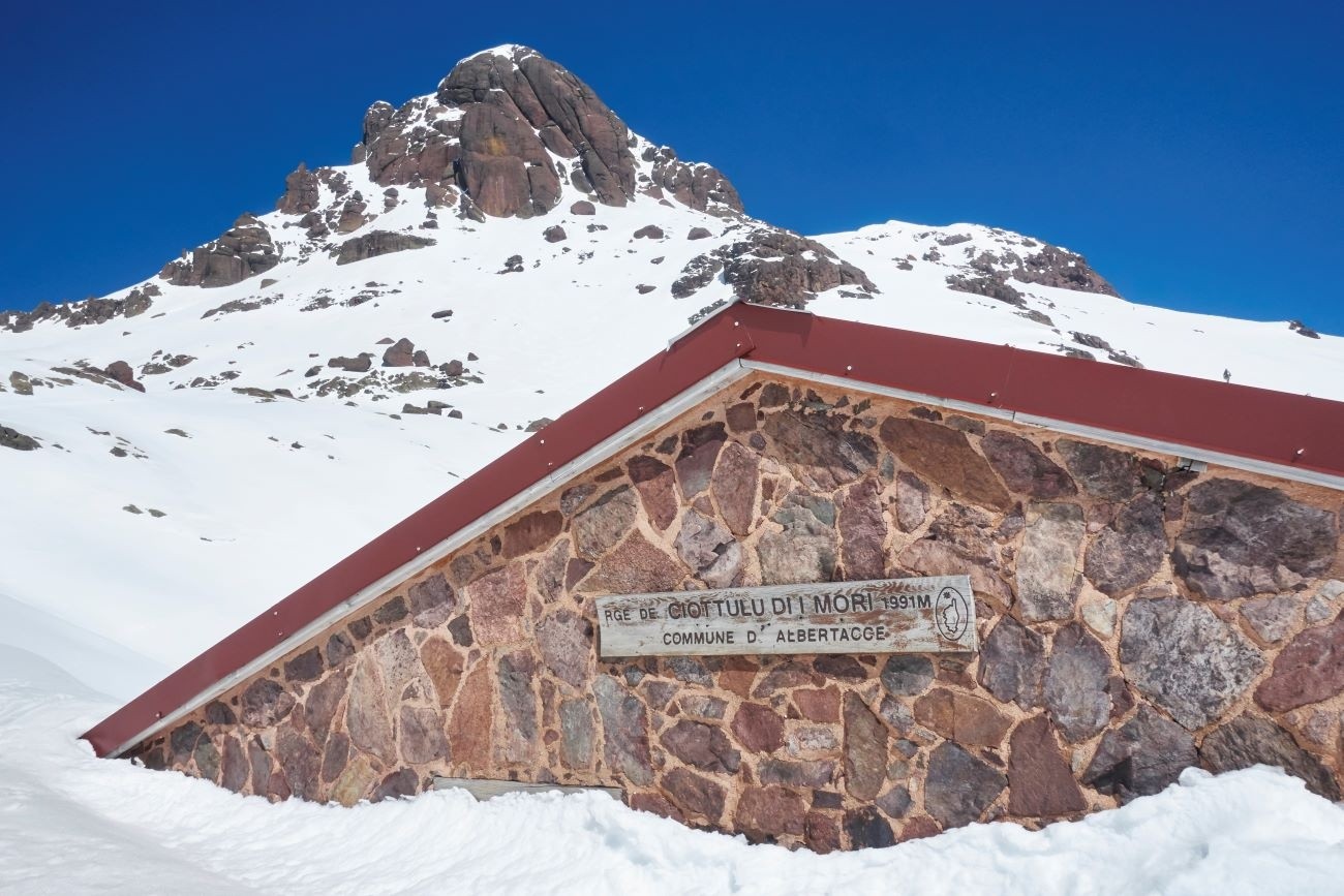 MalgrĂ© une mĂ©tĂ©o difficile, nous avons structurĂ© notre traversĂ©e pour « sanctuariser » les trois sommets que nous avions Ă cĆur de descendre Ă ski, dans des conditions nivo-mĂ©tĂ©orologiques de qualitĂ© : le Rotondu, le Cinto (par son beau couloir de la Forca) et peut ĂȘtre surtout la Paglia Orba. Poser des virages sur ces pentes suspendues (au-dessus dâun couloir-chicane qui se passe en piolet-crampons) dominant la mer, avec lâimpression de pouvoir la toucher, a Ă©tĂ© un grand moment de cette traversĂ©e en vĂ©lo-ski. Cette Paglia Orba Ă ski, ce nâest pas de la « moyenne » montagne, câest de « lâextraordinaire » montagne ! Et quoi de mieux que de profiter de ce secteur en restant durant 36h dans le secteur, seuls au refuge de Ciuttulu di i Mori. Une solitude Ă faire rĂȘver les randonneurs estivaux du GR20. Deux Corse, deux ambiances.
