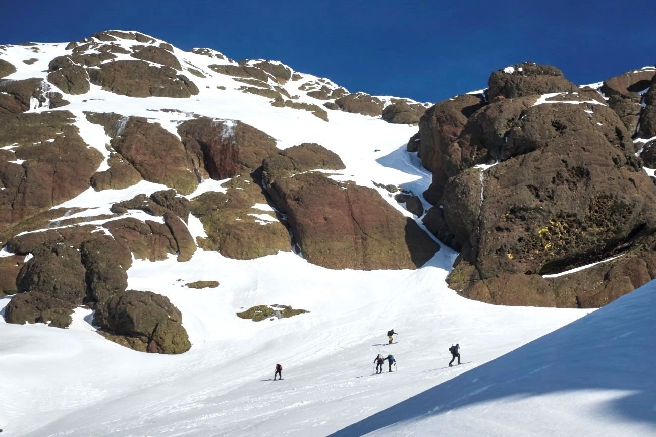 Avec une semaine anticyclonique (rare sur les sommets de lâile en cette pĂ©riode), câest mĂȘme probablement la façon la plus pertinente de parcourir cette montagne hivernale, du moins si la neige est prĂ©sente en abondance (avec des risques nivologiques limitĂ©s) et si lâobjectif primordial est le ski. Ăa fait quand mĂȘme beaucoup de conditions Ă rassembler, ce qui explique que cette alta strada, la Haute-Route corse Ă ski, ne soit pas rĂ©alisĂ©e si frĂ©quemment. Pour la plupart dâentre nous, le ski Ă©tait dâabord un prĂ©texte au voyage, et le vĂ©lo-ski sâest une nouvelle fois rĂ©vĂ©lĂ© ĂȘtre un formidable moyen de dĂ©placement permettant de sâadapter aux conditions mĂ©tĂ©os difficiles et aux envies de chacun.