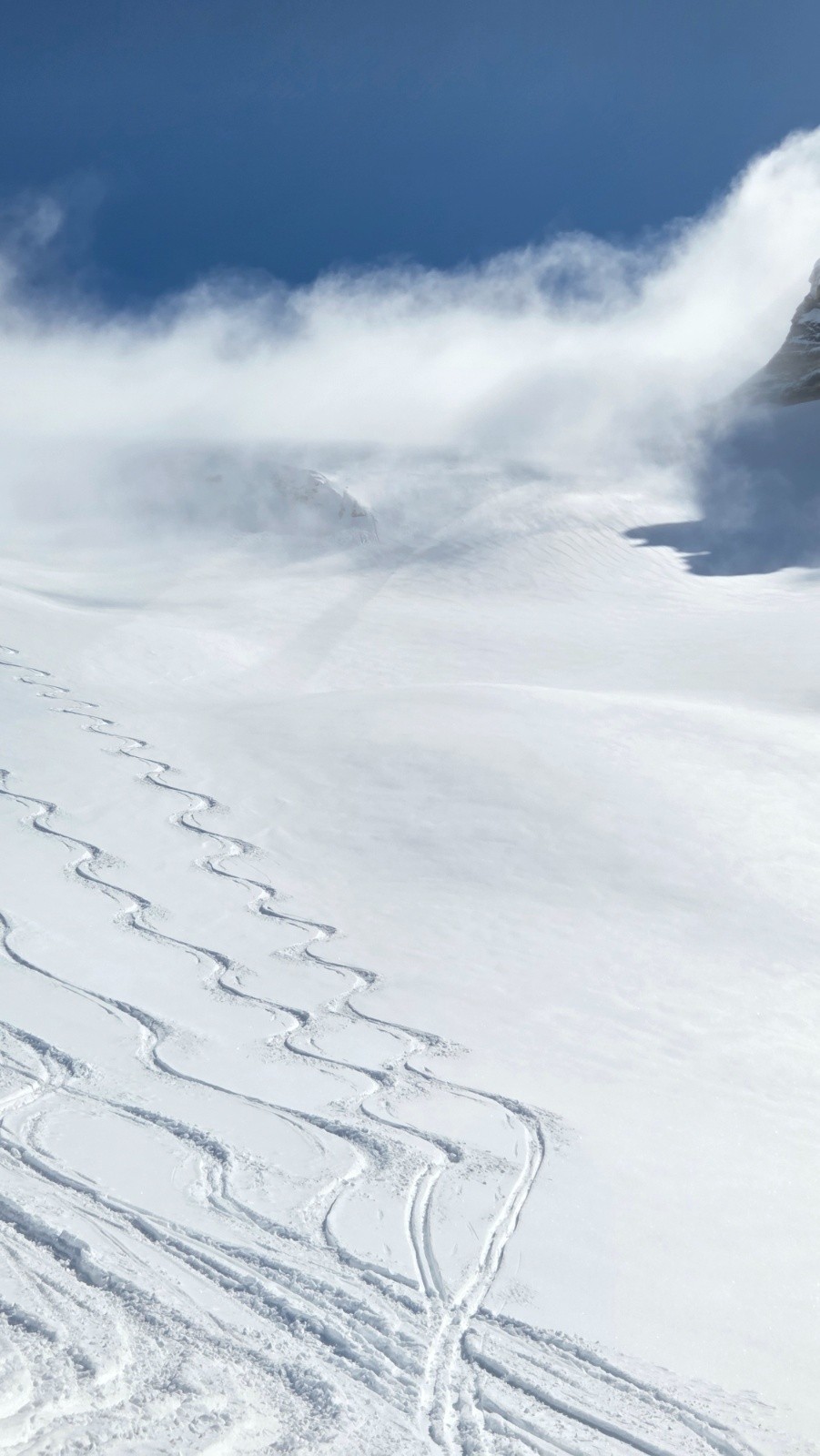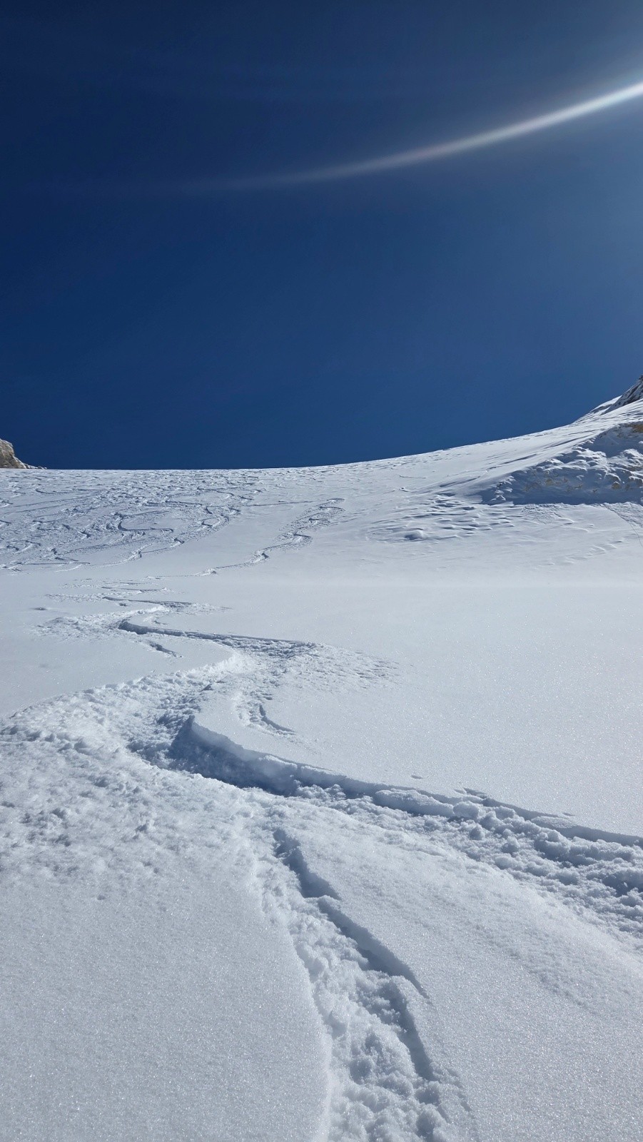 Conditions pour le ski : Excellente, le seul vallon non soufflée du coin ce jour. Un régal