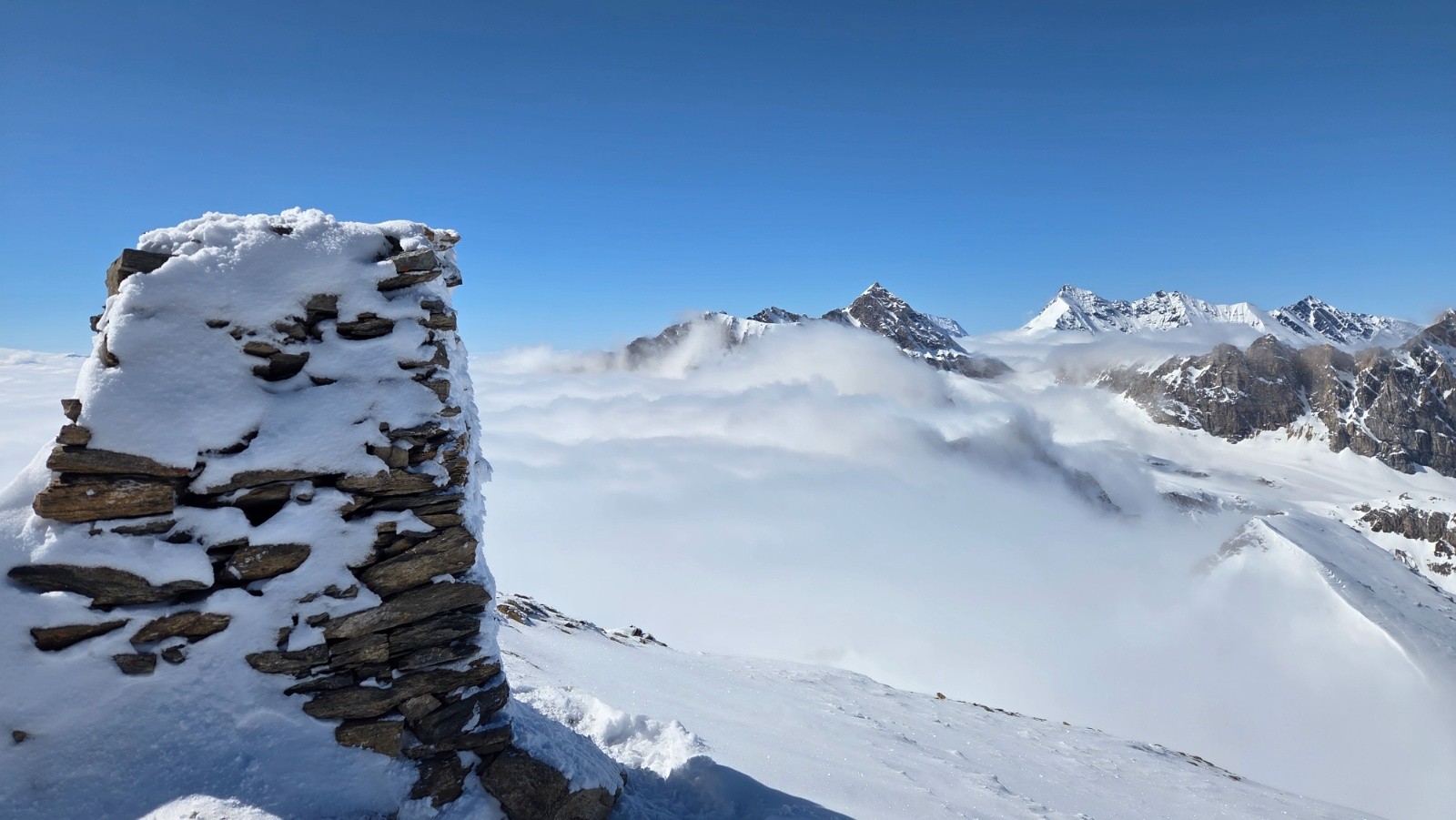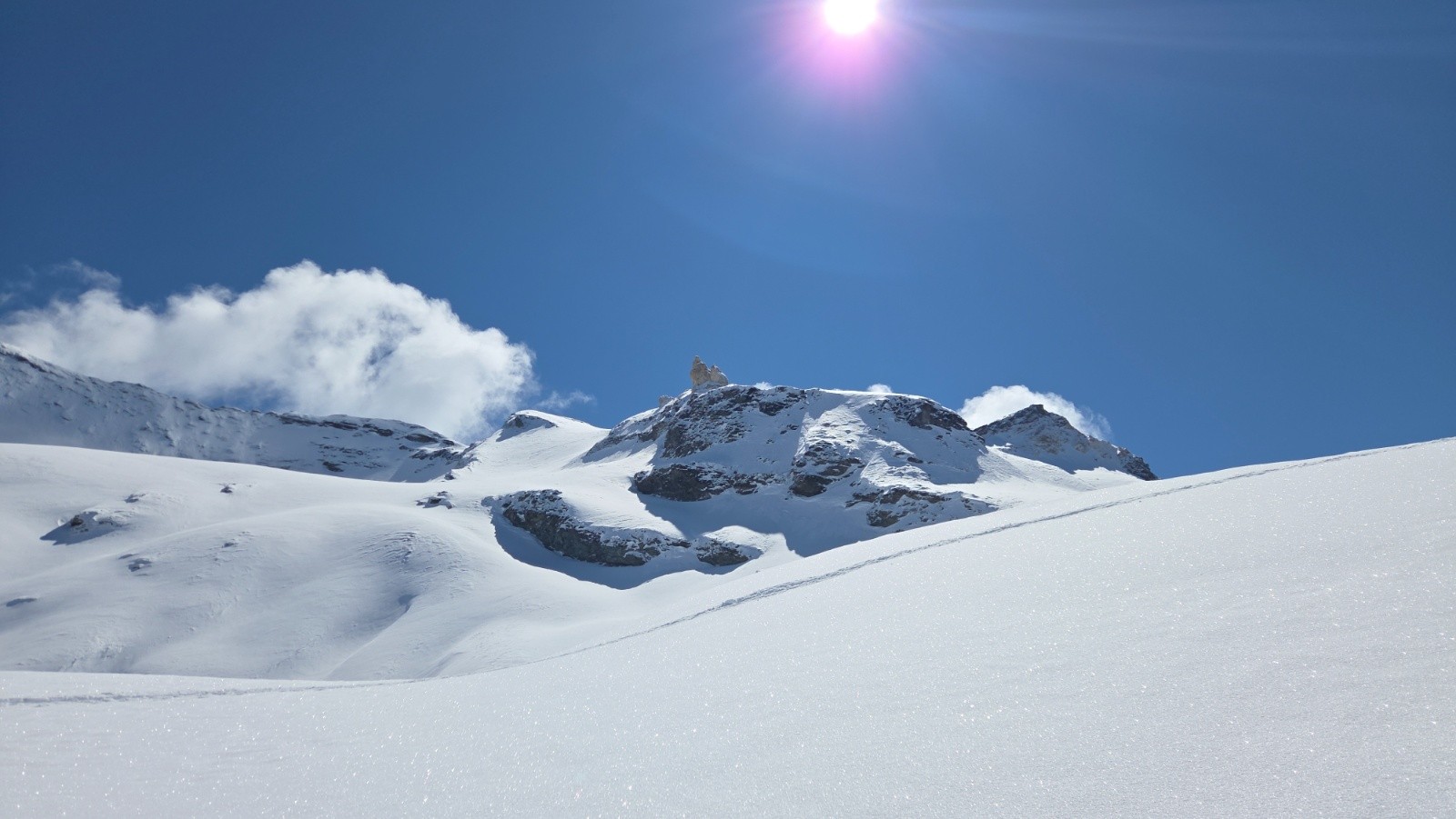 Horaires : Partis avec toute l'équipe de Rhème notre Dames car on s'est fait avoir par le refuge Benevolo (Mathieu n'avait pas vu mon e-mail! Un peu l'usine ce refuge! avec des lits sur 3 hauteurs dans une chambre de 7 m2!) Une poudre de rêve qui se mérite. C'est vraiment très long depuis Rhème notre Dames. Plusieurs Bouquetins sur le trajet et des paysages magnifiques. une belle course.
