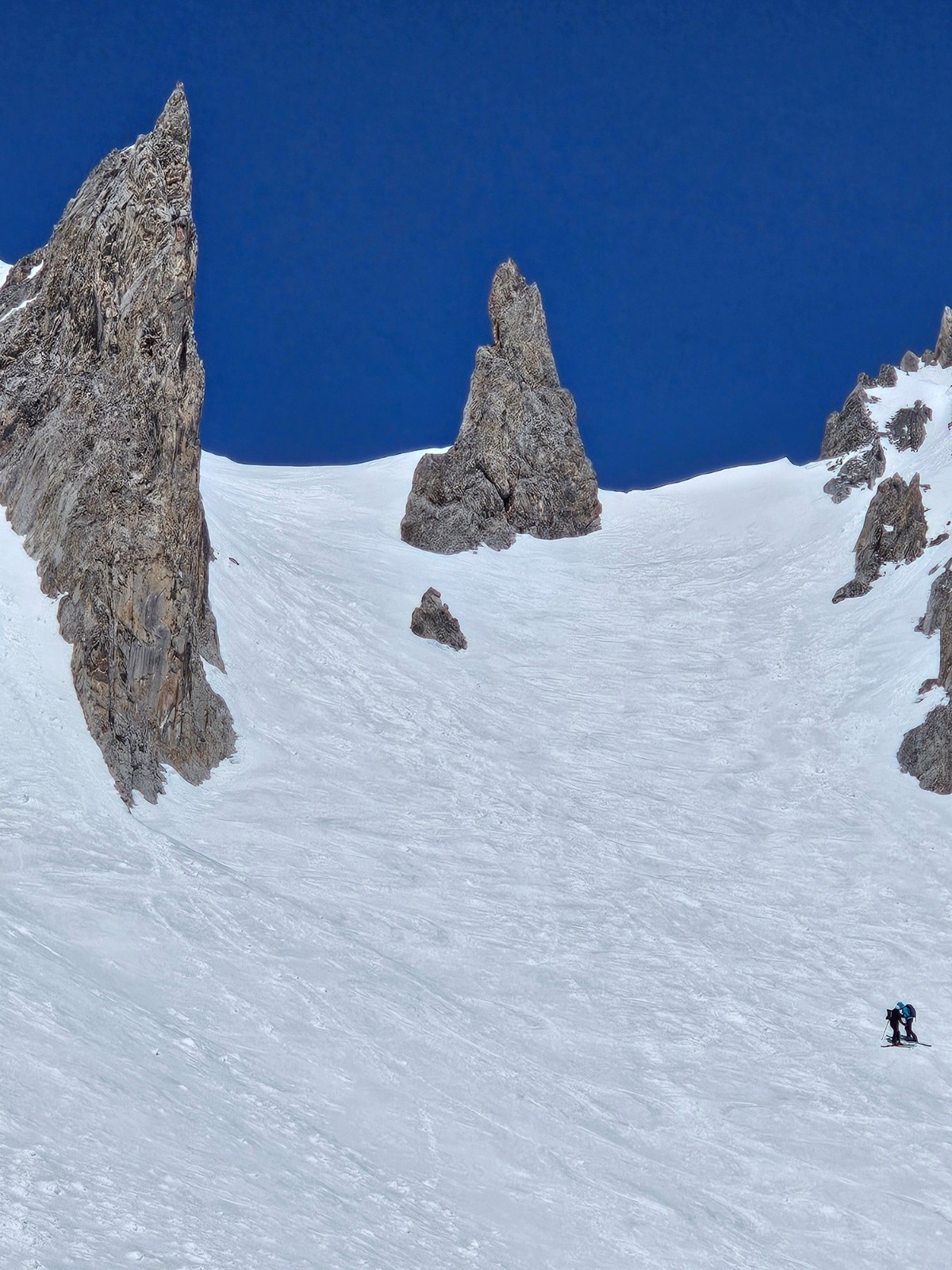 Le froid n'a pas épargné le côté italien des Alpes, on tente une course plein sud pour espérer un peu de moquette en espérant être protégés du vent d'Est. Raté !