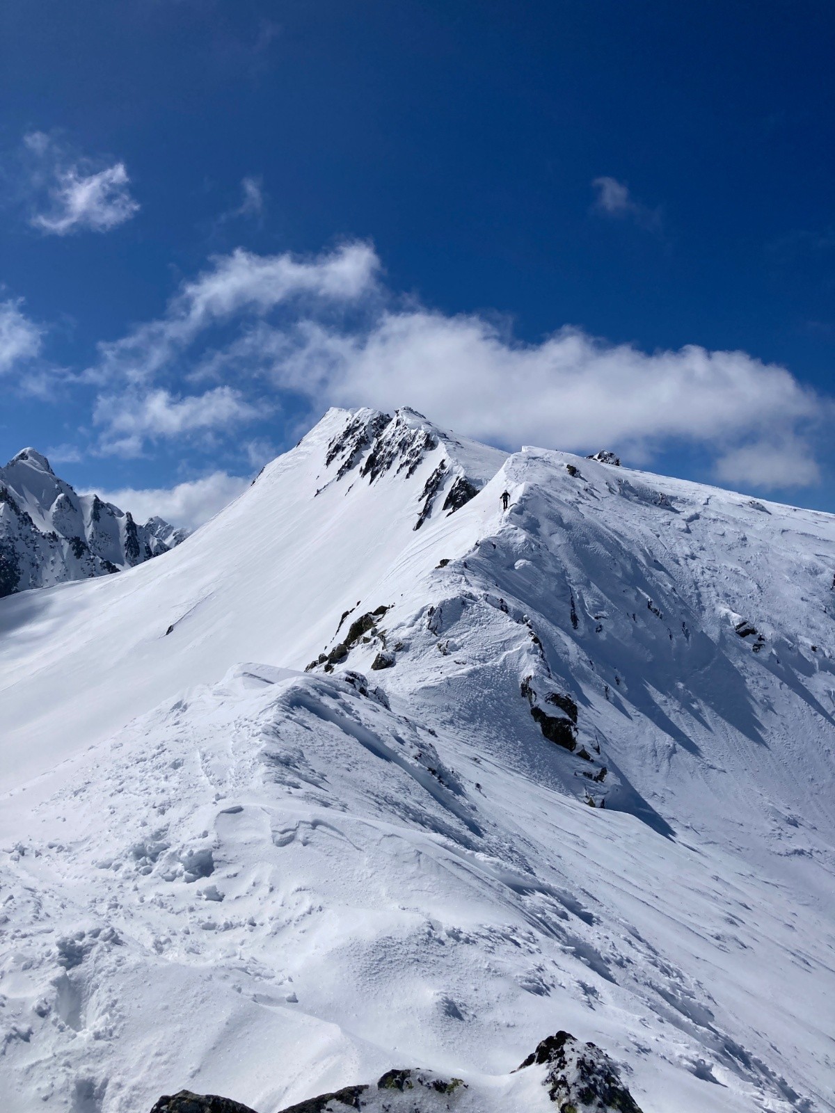 Je fais un dépôt de ski, chausse les crampons et je pars sur la crête jusqu'au sommet.