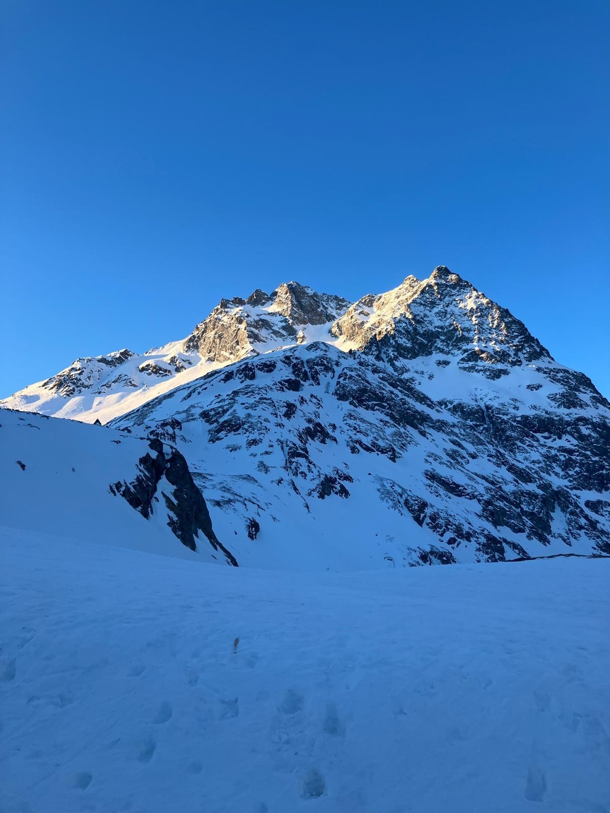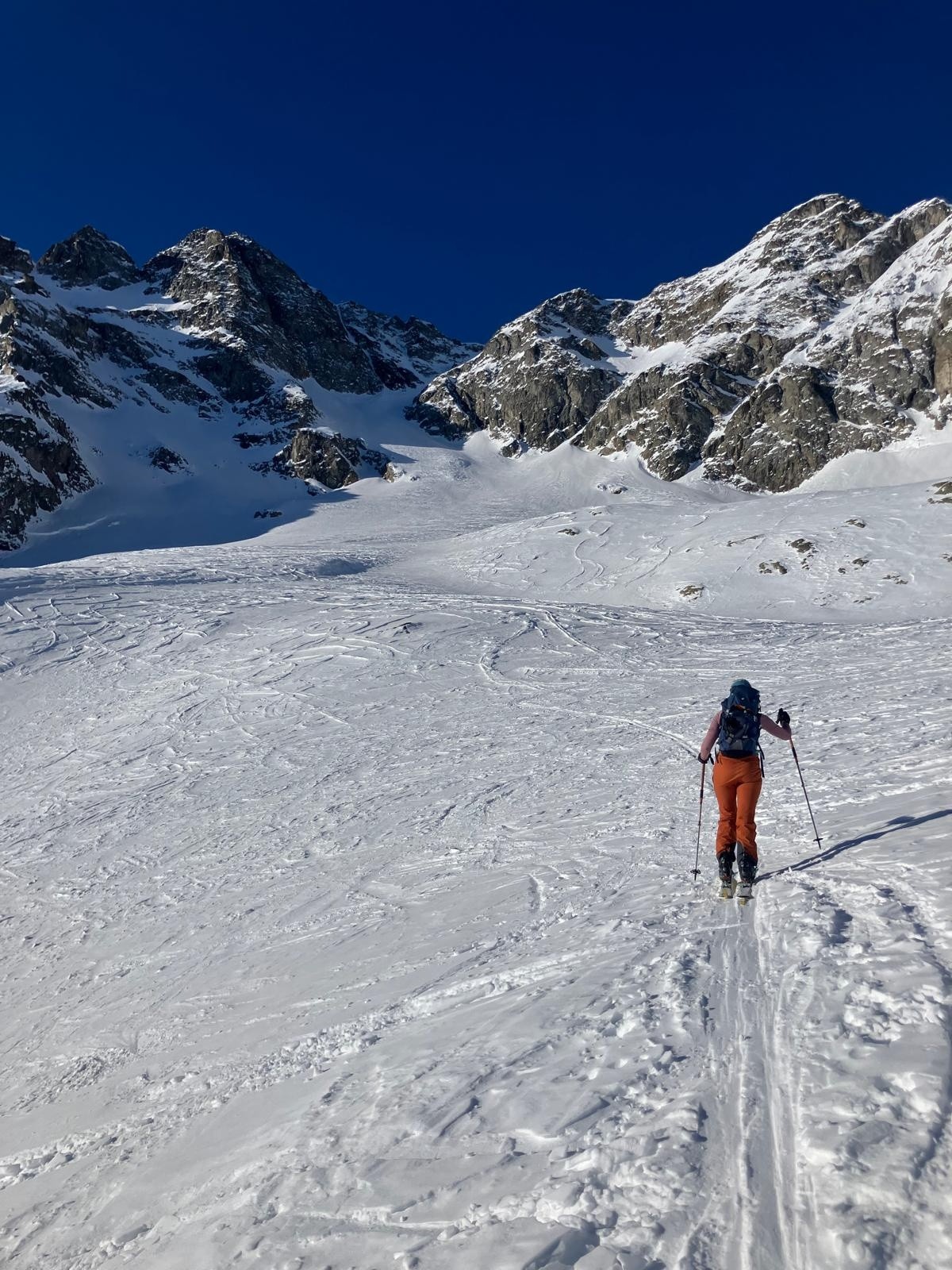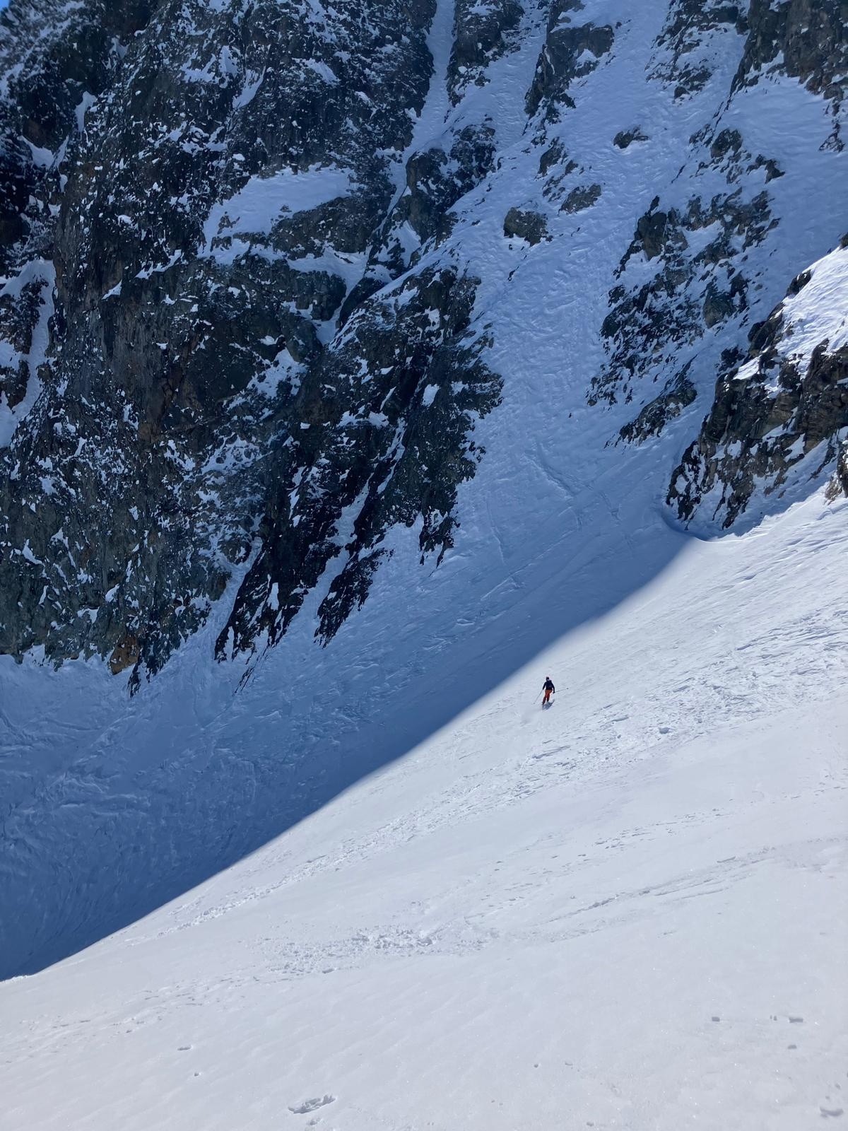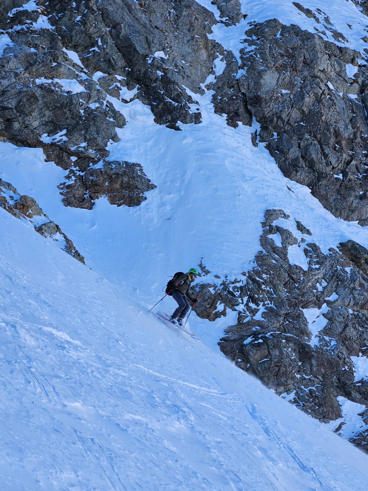 Conditions pour le ski : neige bien travaillée par le vent, des zones poudreuses abritées, transfo au soleil.