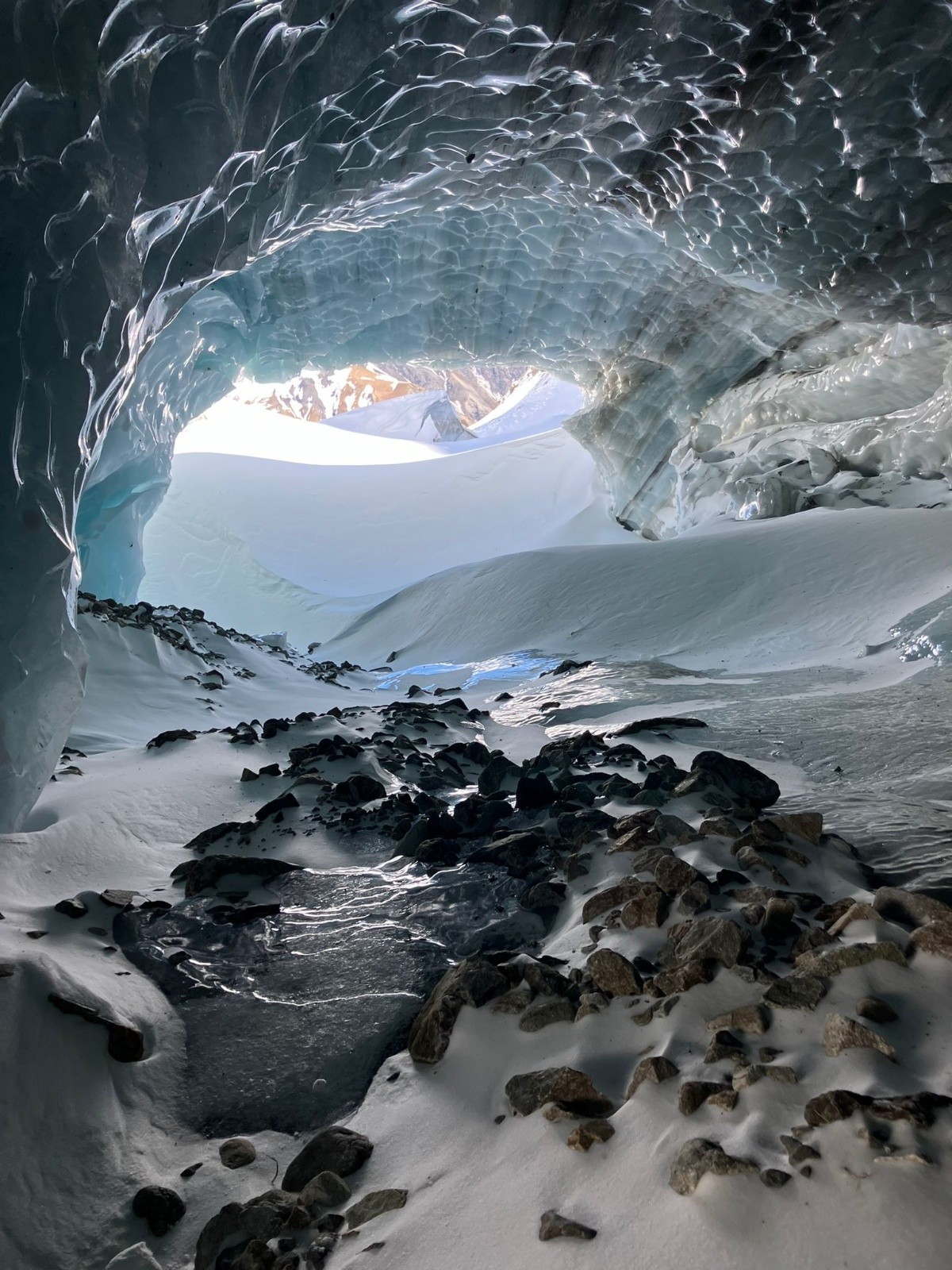 J1 visite des grottes de glace du glacier de l'Homme, puis remontée au refuge de l'Alp de Villar d'arène (80 places, bien mangé, confortable).