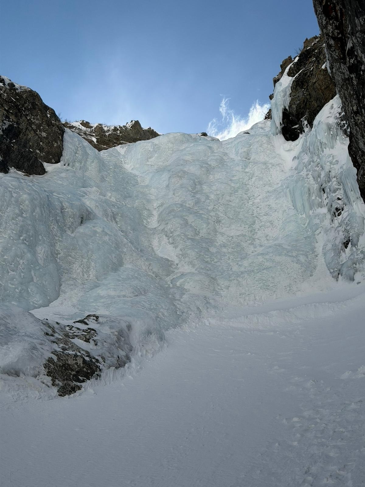 La cascade de glace Les Hémos à Godo est notre destination et on y accède en ski de rando (ce qui justifie un CR ici, vous vous doutez bien).