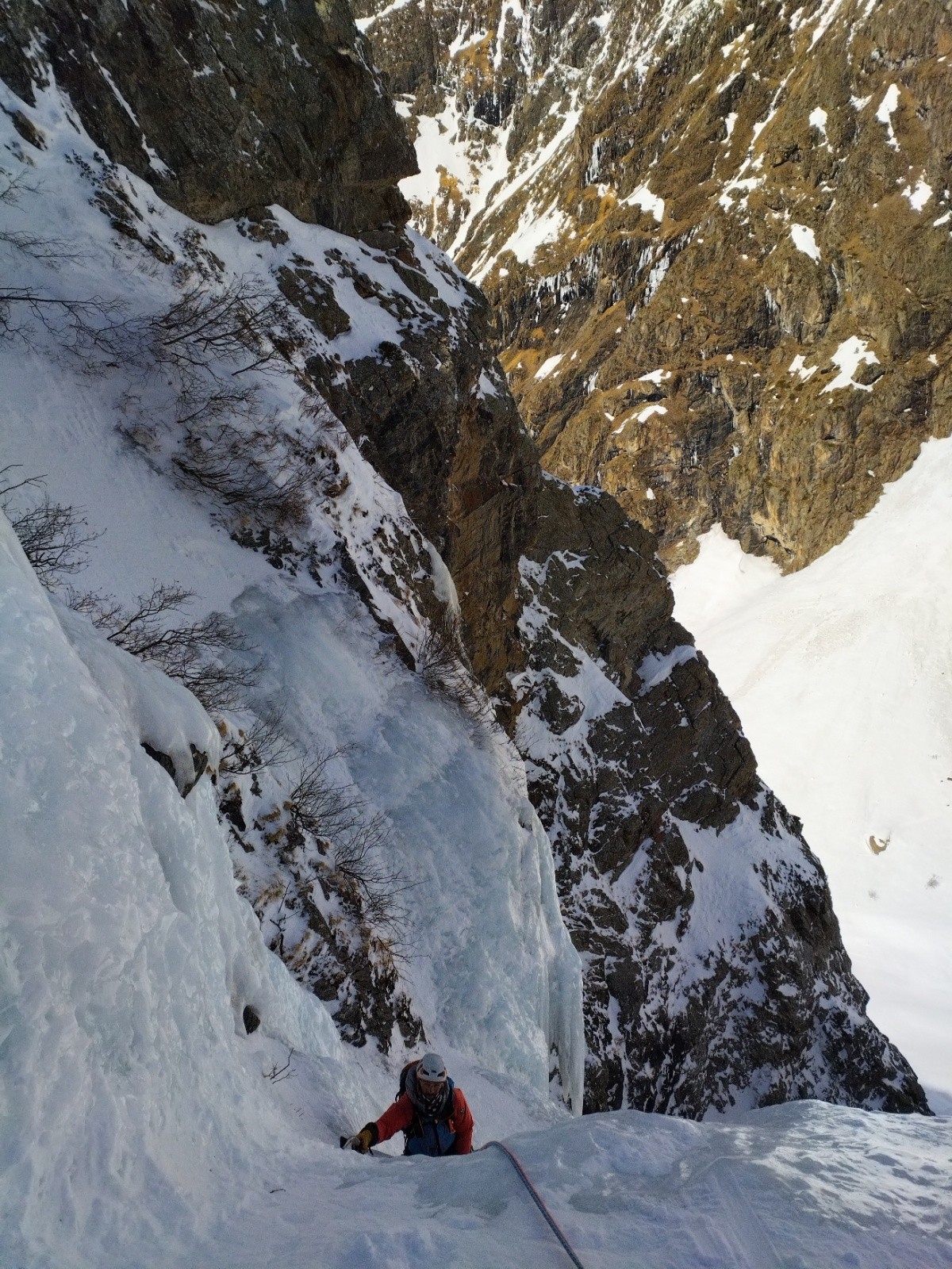 Après, dans notre cordée, le second il ne se tourne pas les pouces car il grimpe avec un piolet de cascade et un piolet droit (et ça sera la dernière fois car c'est plutôt chiant) car j'ai pas encore deux jolis piolets courbés de viking .