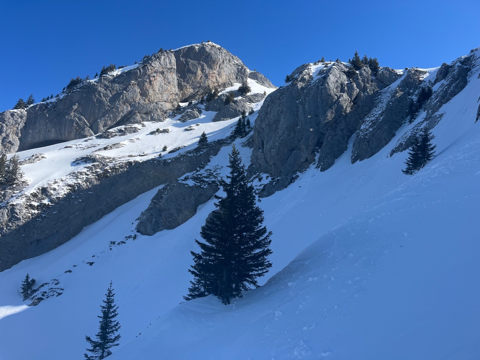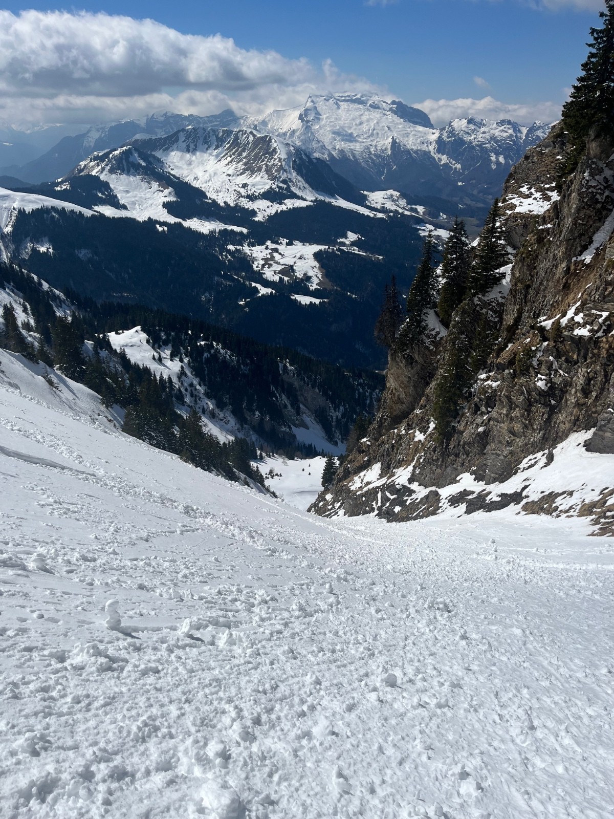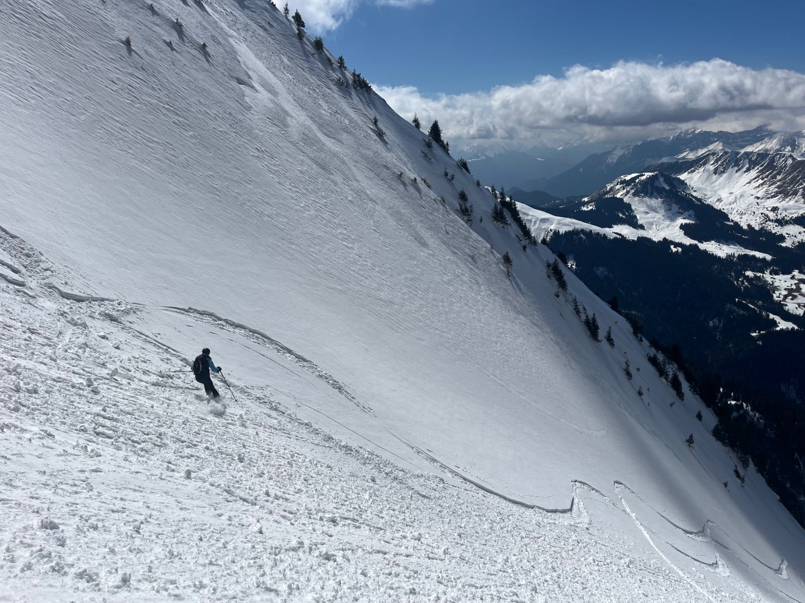 Conditions nivo et activité avalancheuse : RAS, juste une plaque partie sur la Tête de l’Aulp bien visible en NO. Grosse transformation de la neige récente aujourd’hui.