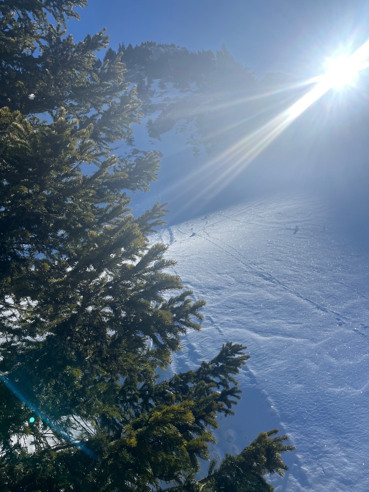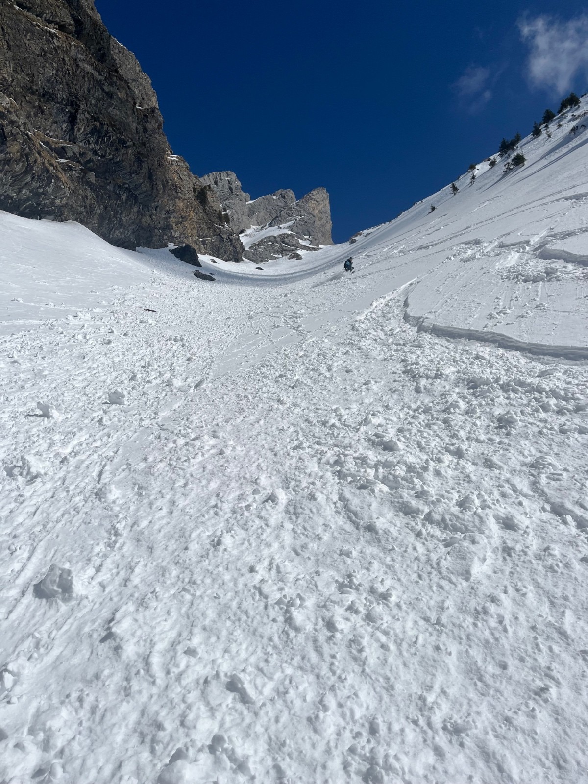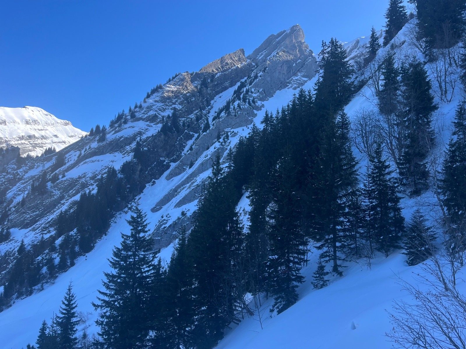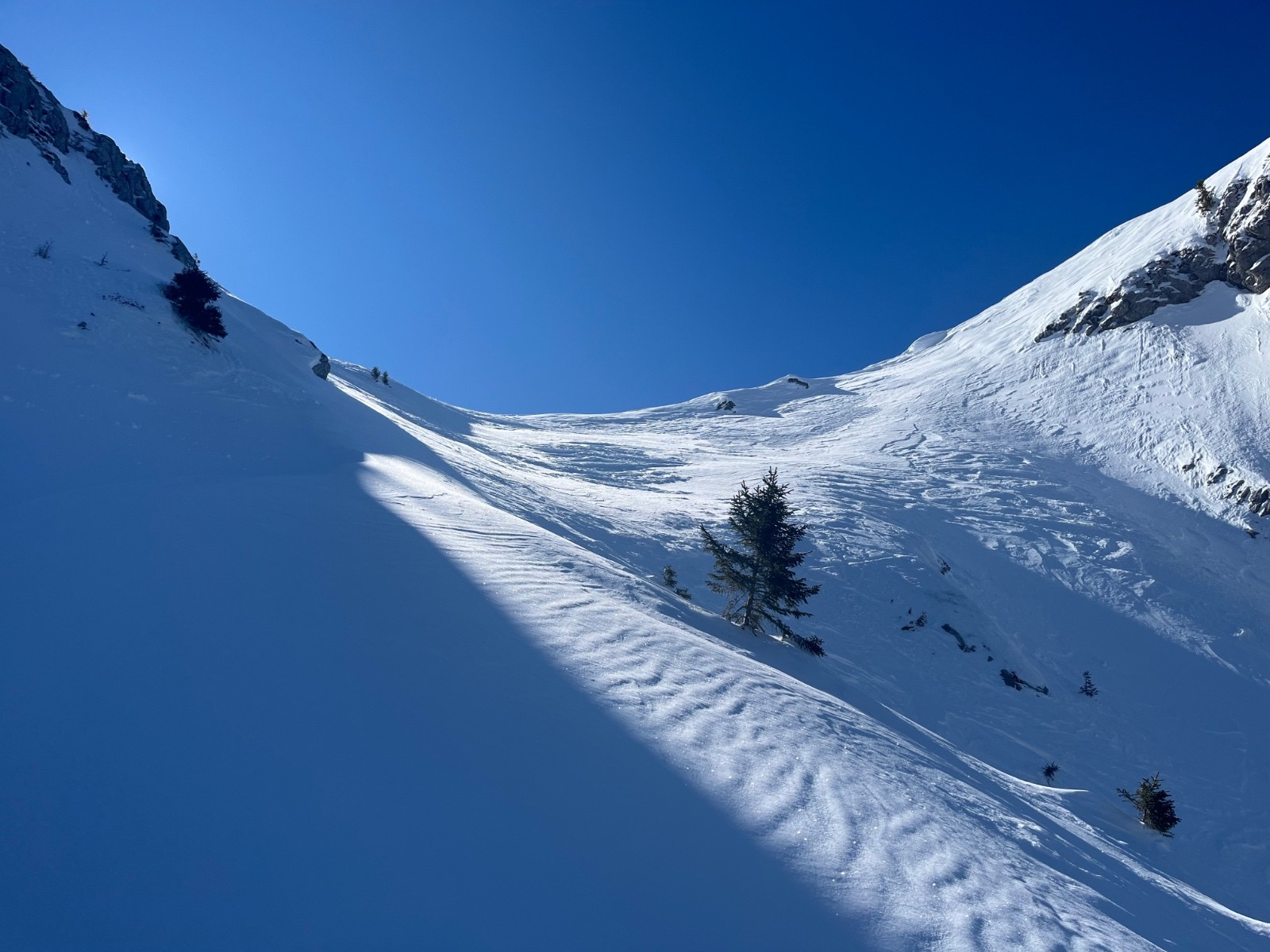 Conditions nivo et activité avalancheuse : RAS, juste une plaque partie sur la Tête de l’Aulp bien visible en NO. Grosse transformation de la neige récente aujourd’hui.