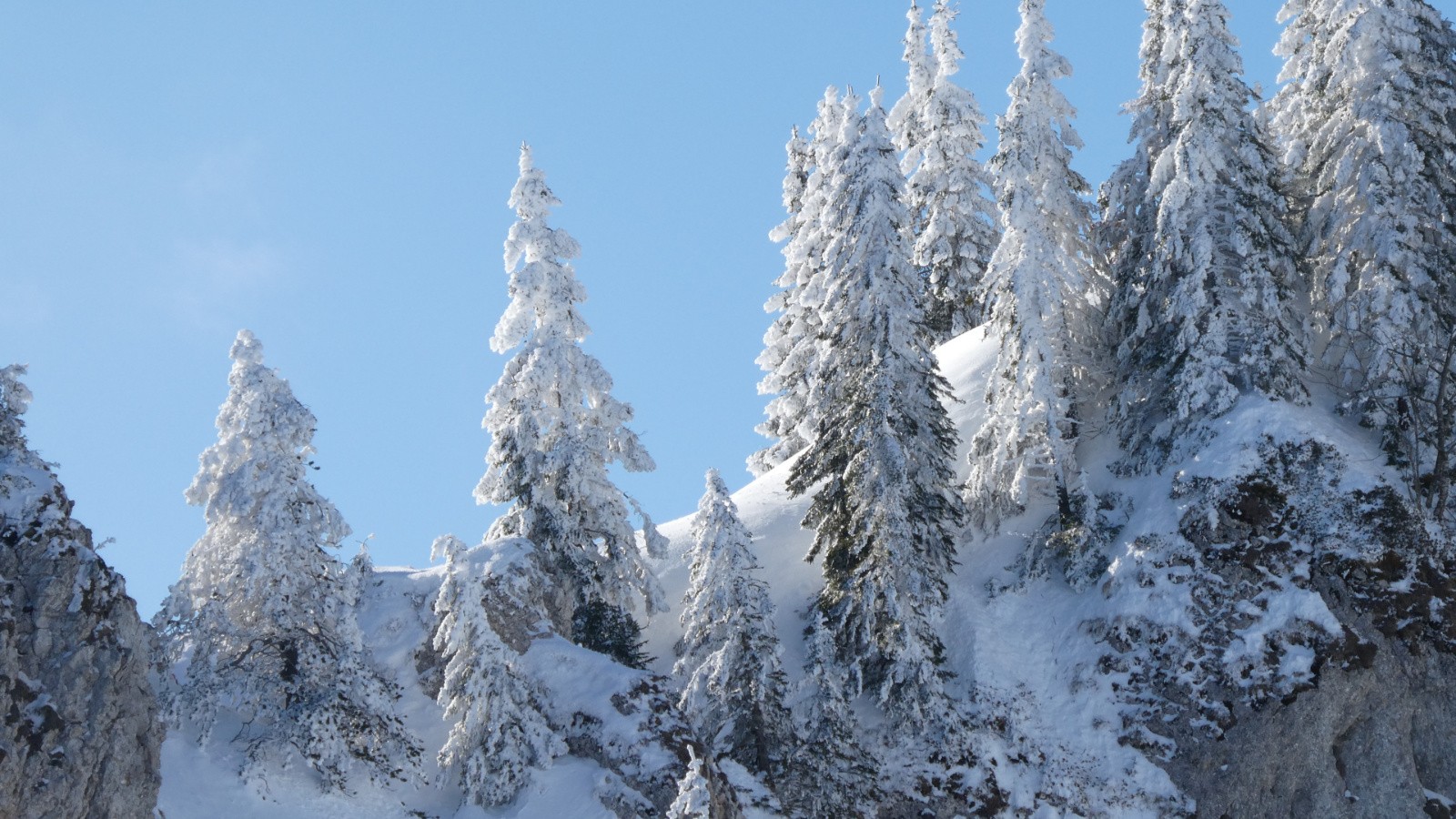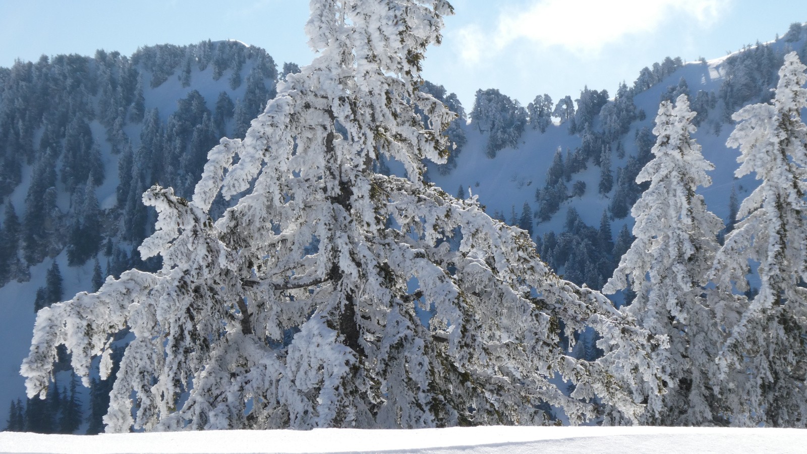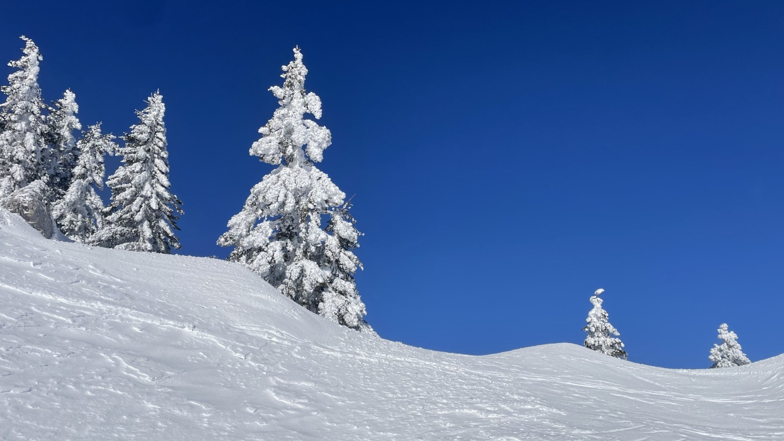 La neige est restée impeccable, douce, poudre un peu tassée par les passages, les sous-bois comme remis à neuf la nuit par une fée bienveillante. Même le chemin de traverse n’est pas retors (mais attention si ça se réchauffe brusquement, il y en a des paquets suspendus au-dessus qui ne demanderont qu’à glisser).