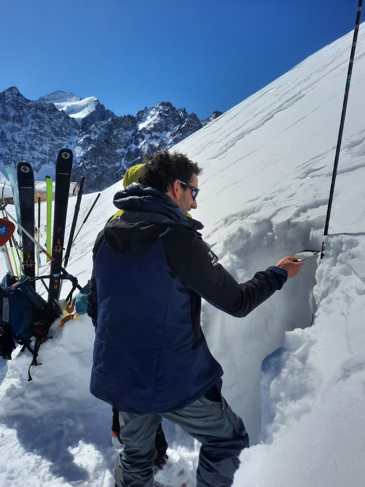 Sortie terrain commune entre les centres Météo-France de Grenoble et de Briançon, pour aller rendre visite à Guillaume le gardien du Refuge d'Adèle Planchard - observateur assidus depuis de nombreuses années - et pour faire une stratigraphie du manteau neigeux dans ce secteur de haute altitude. Merci beaucoup pour son accueil dans ce refuge très chaleureux, rénové avec une grande réussite durant l'été 2024 !