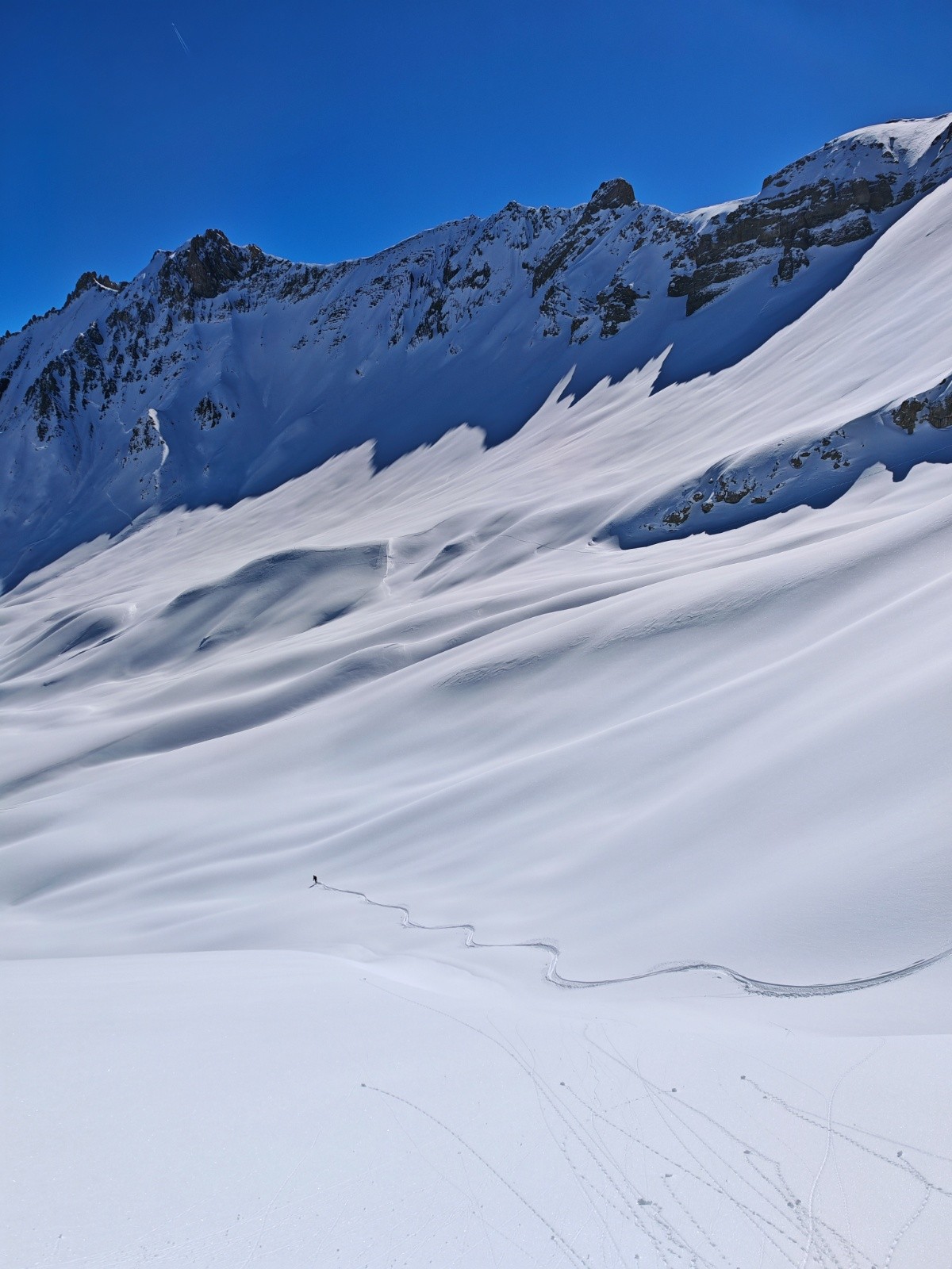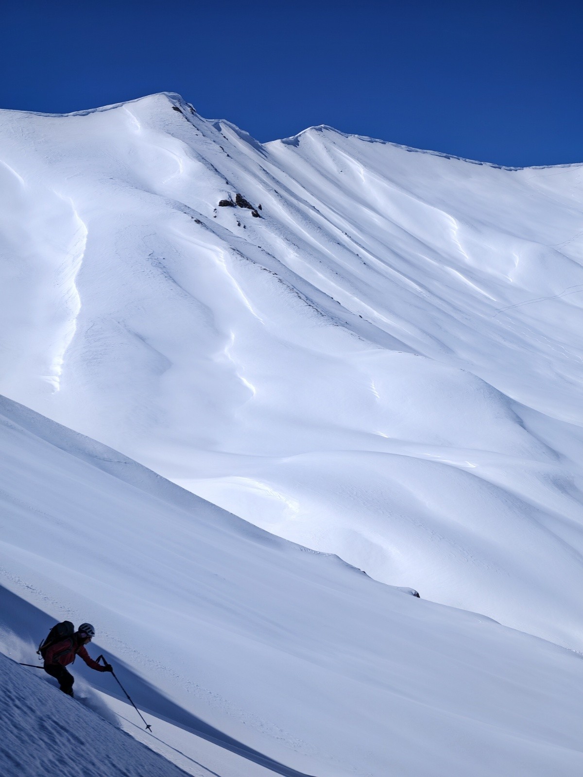 Conditions pour le ski : excellentes dans Valbouche, bonnes dans la descente de l'arête W au retour
