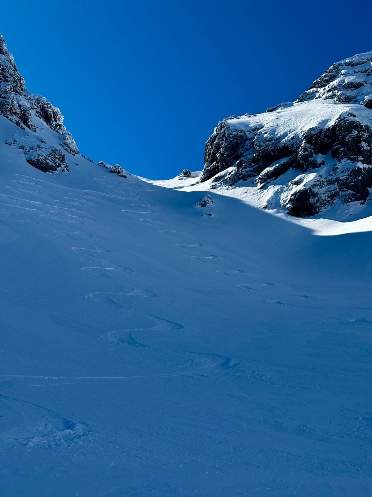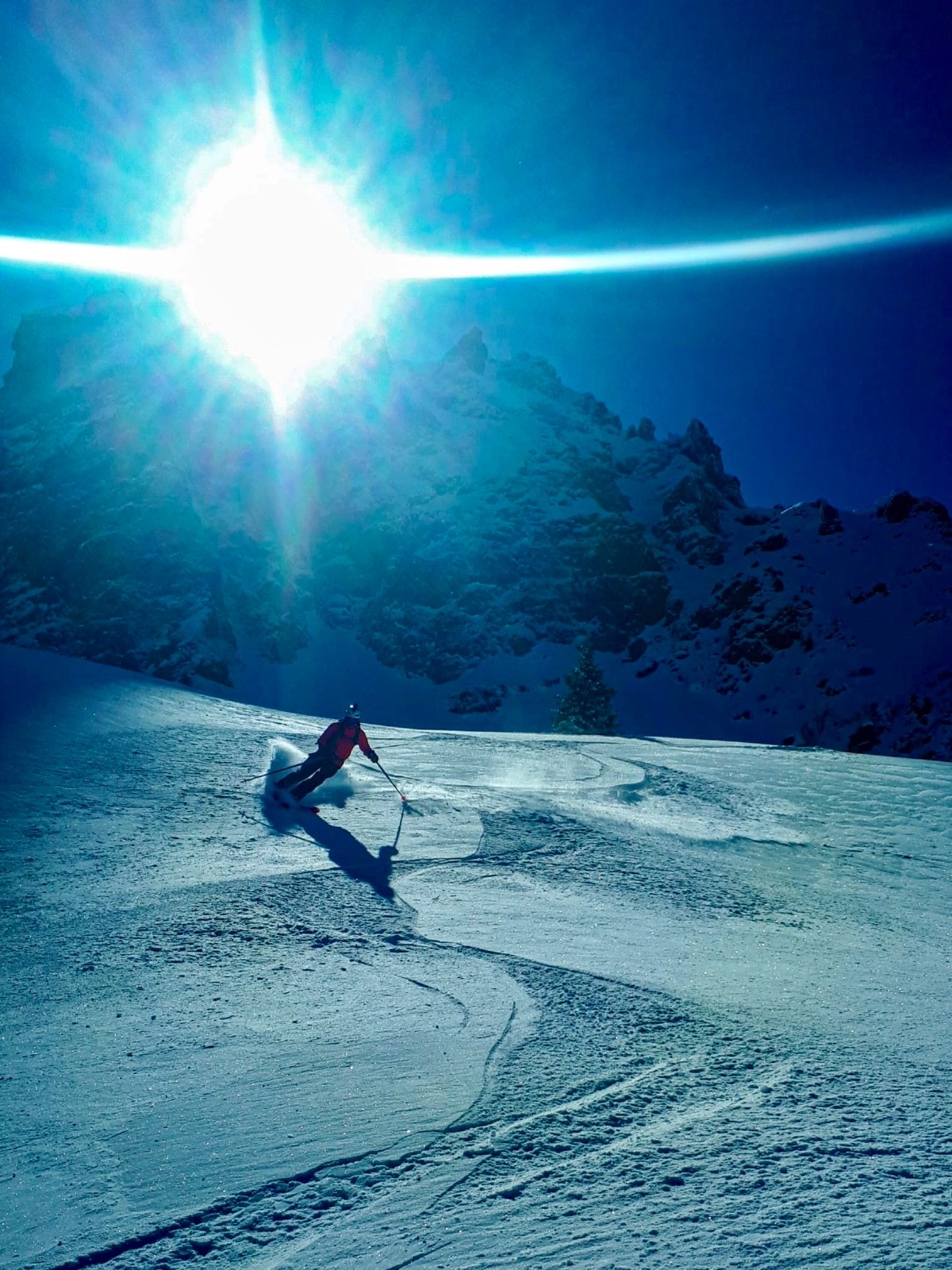 Conditions pour le ski : Agréablement surpris avec globalement de la bonne poudre bien skiante parfois légèrement croûtée/cartonnée