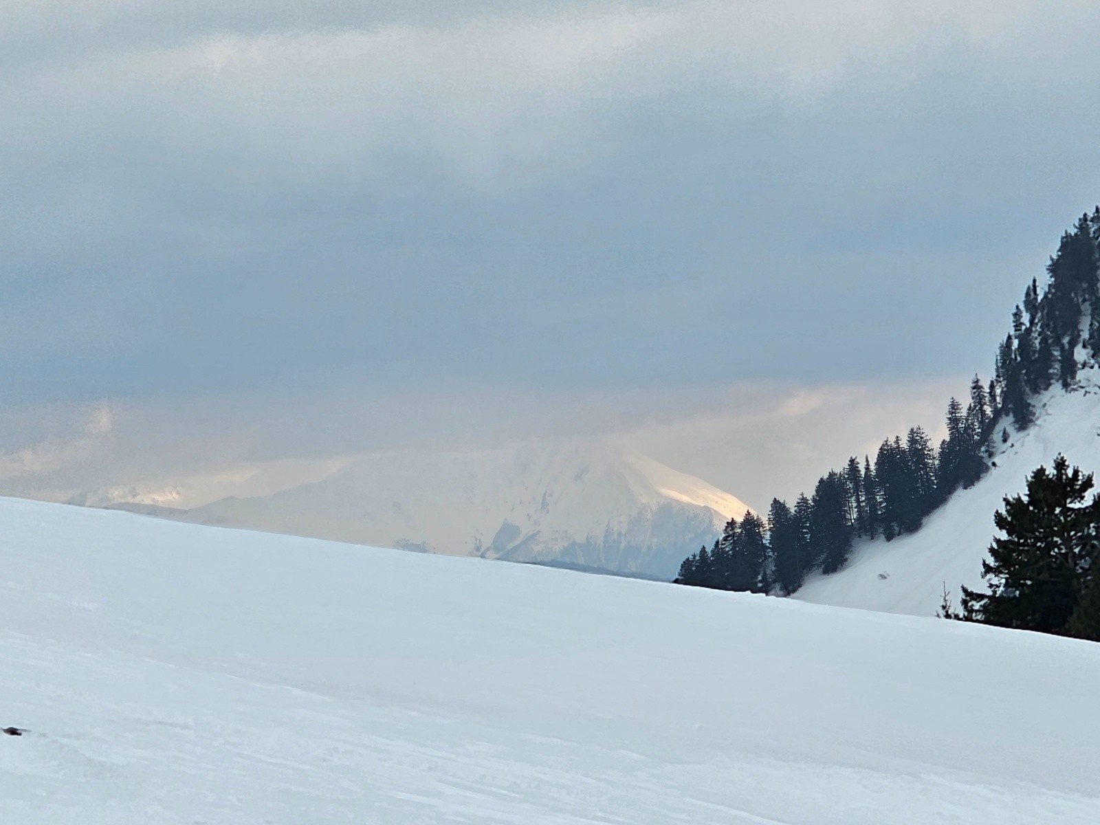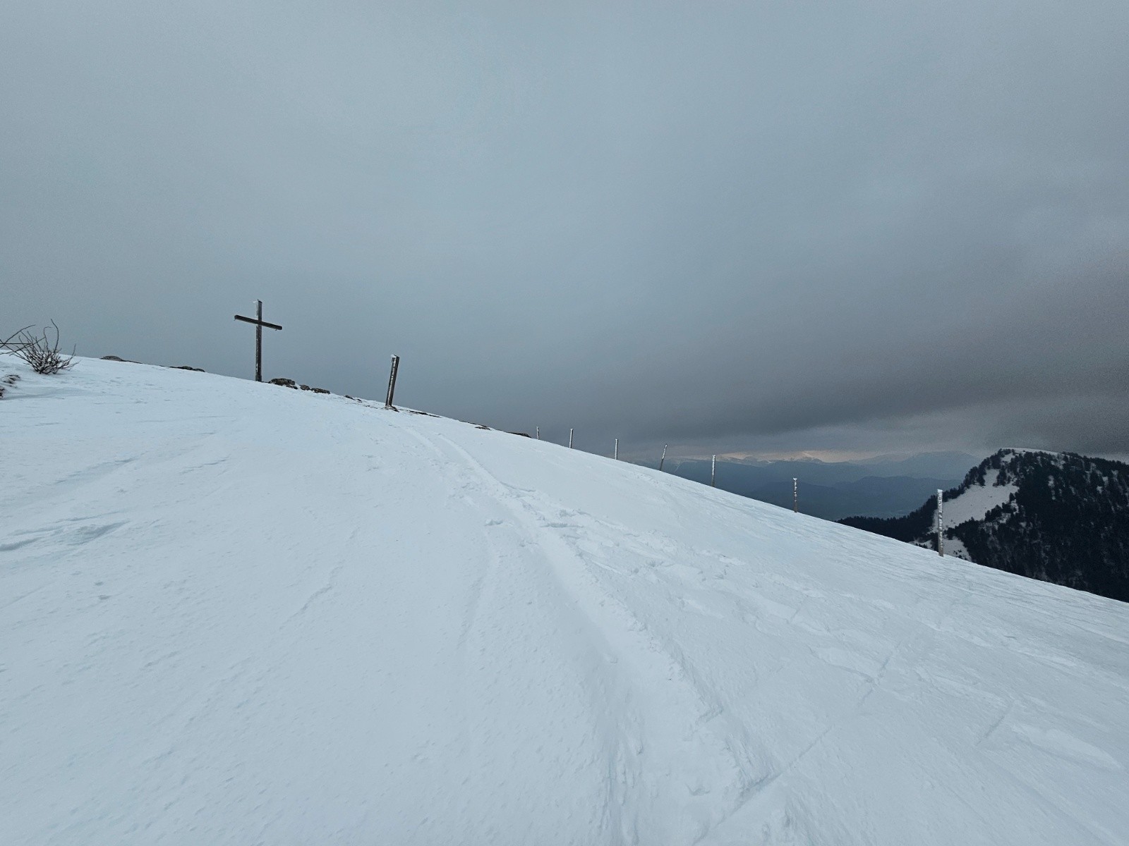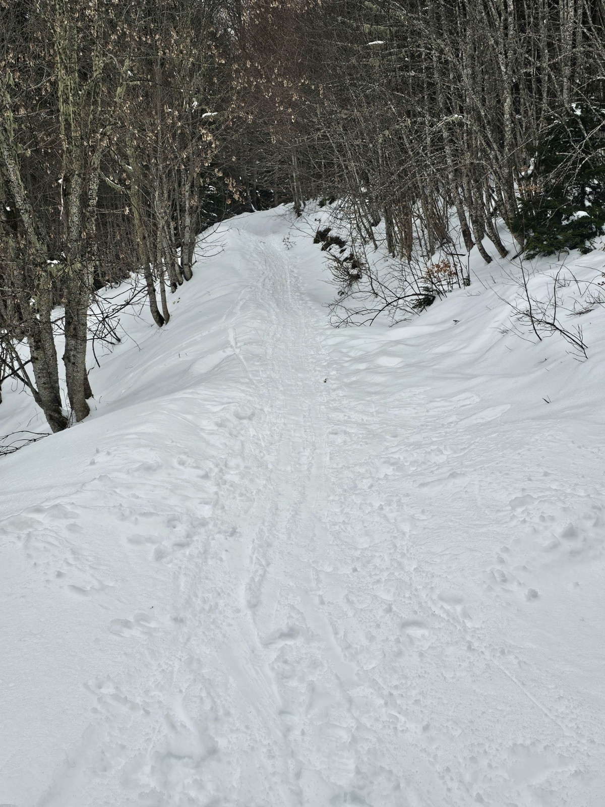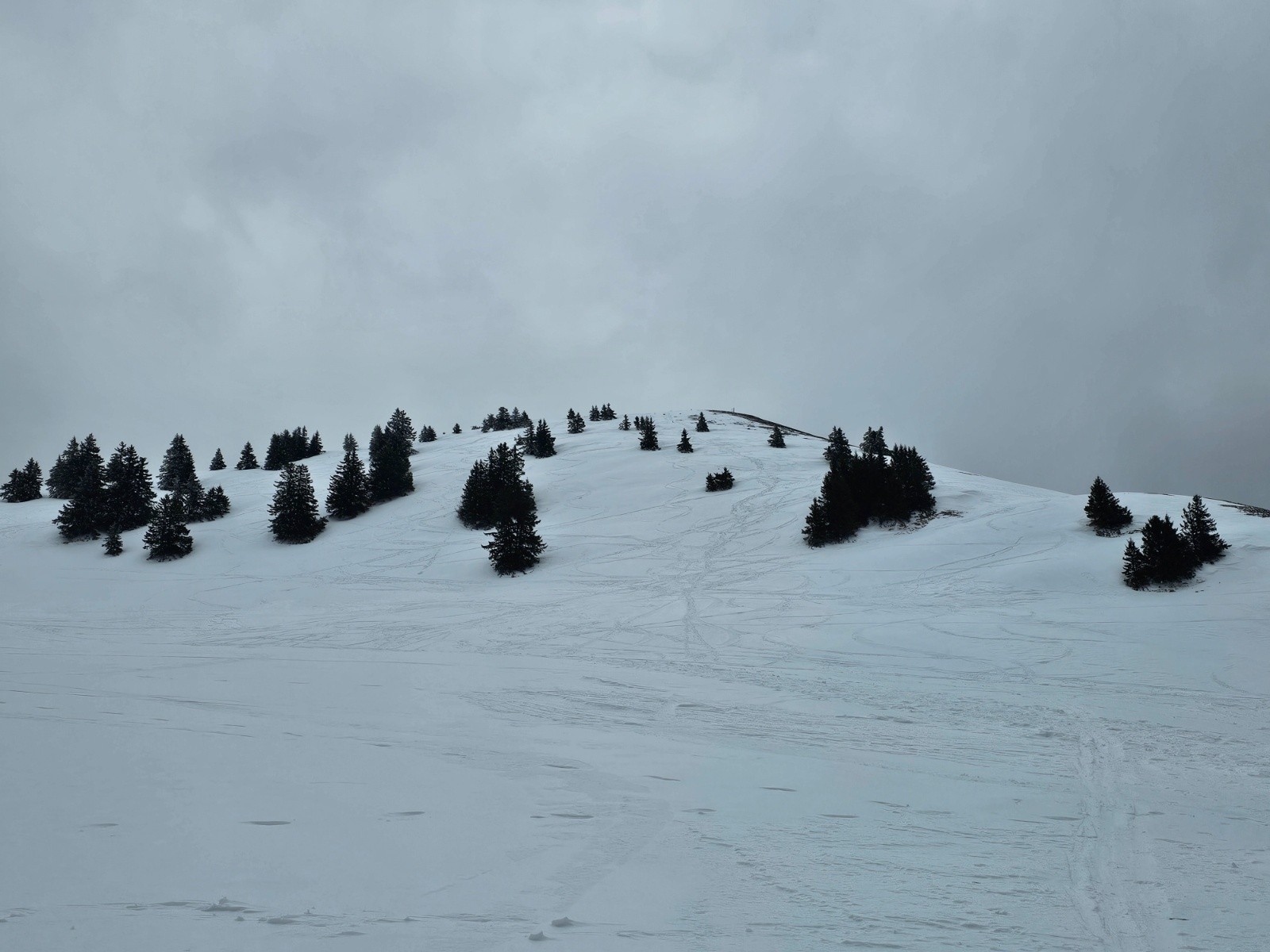Très peu de monde ; assez venteux en haut ; temps maussade et vent. Les traces sont bonnes. Le sommet commence à être dégarni.