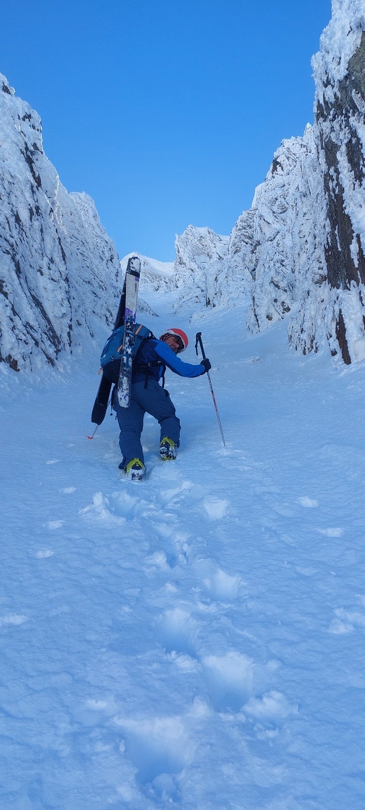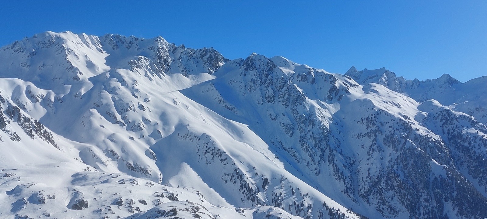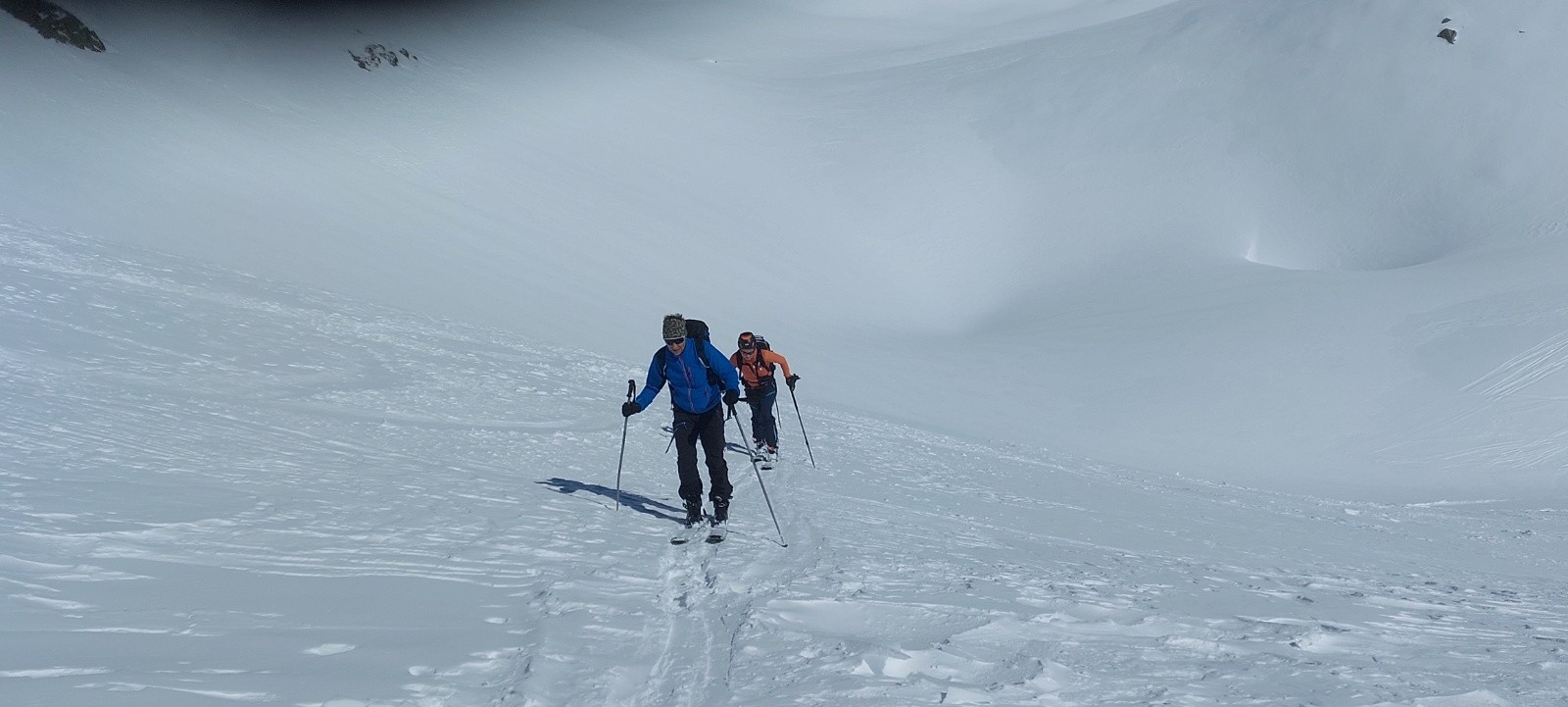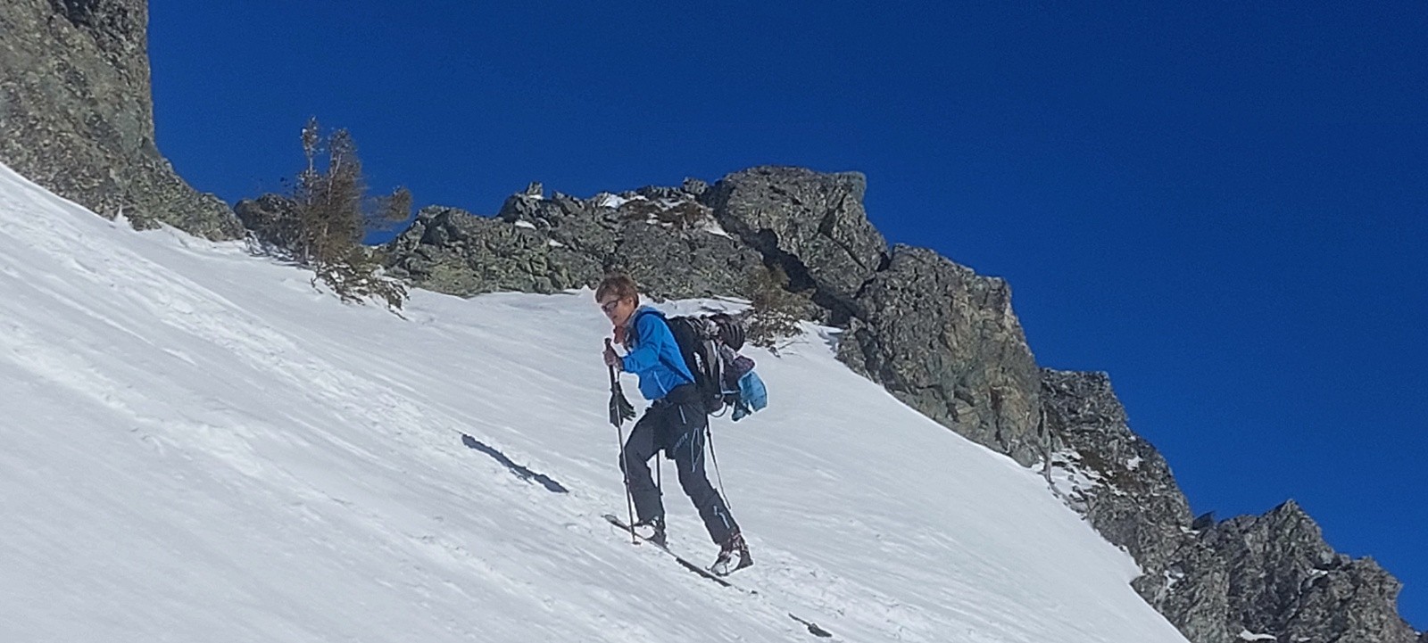 Itinéraire suivi : parking Pont de la Betta ~1300m -> Pas de la Coche -> Pointe du Sciallet -> descente (Sud-)Est jusque vers 1800m -> remontée brêche de Roche Fendue -> petite descente puis montée au Pic de la Pierre par le couloir Nord -> descente Ouest dans le cône du Rocher de l'Homme jusque vers 2200m -> remontée au-dessus du col de la Mine de Fer jusque vers 2450m -> descente Nord sur le lac de Crop puis jusqu'au parking du Pont de la Betta ~1300m après un petit 'guenillage' avec court repeautage distrayant...