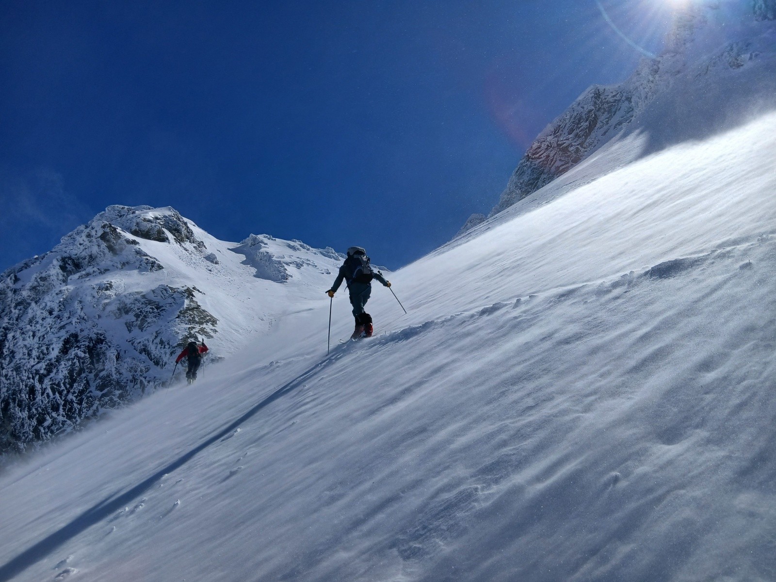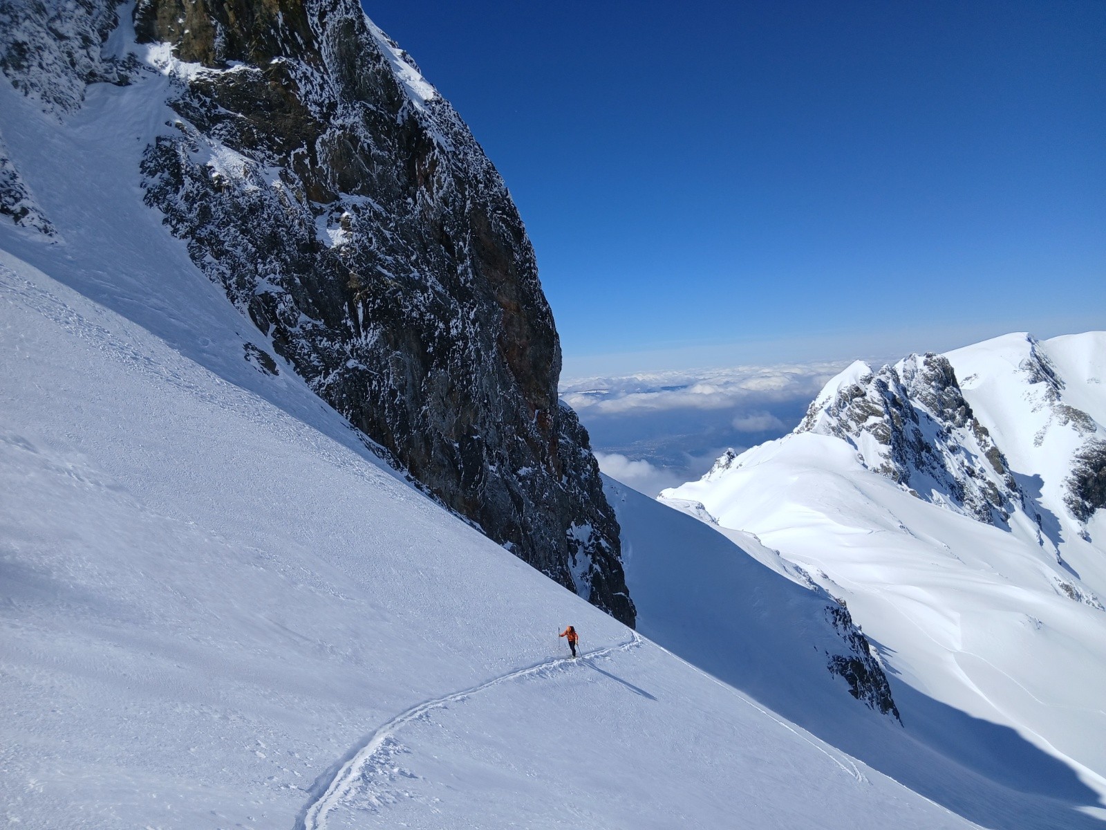 Itinéraire suivi : topo (sauf pente finale : col de la Pierre puis arête, et descente depuis le lac de Crop par le couloir à l'ouest de l'itinéraire normal.)