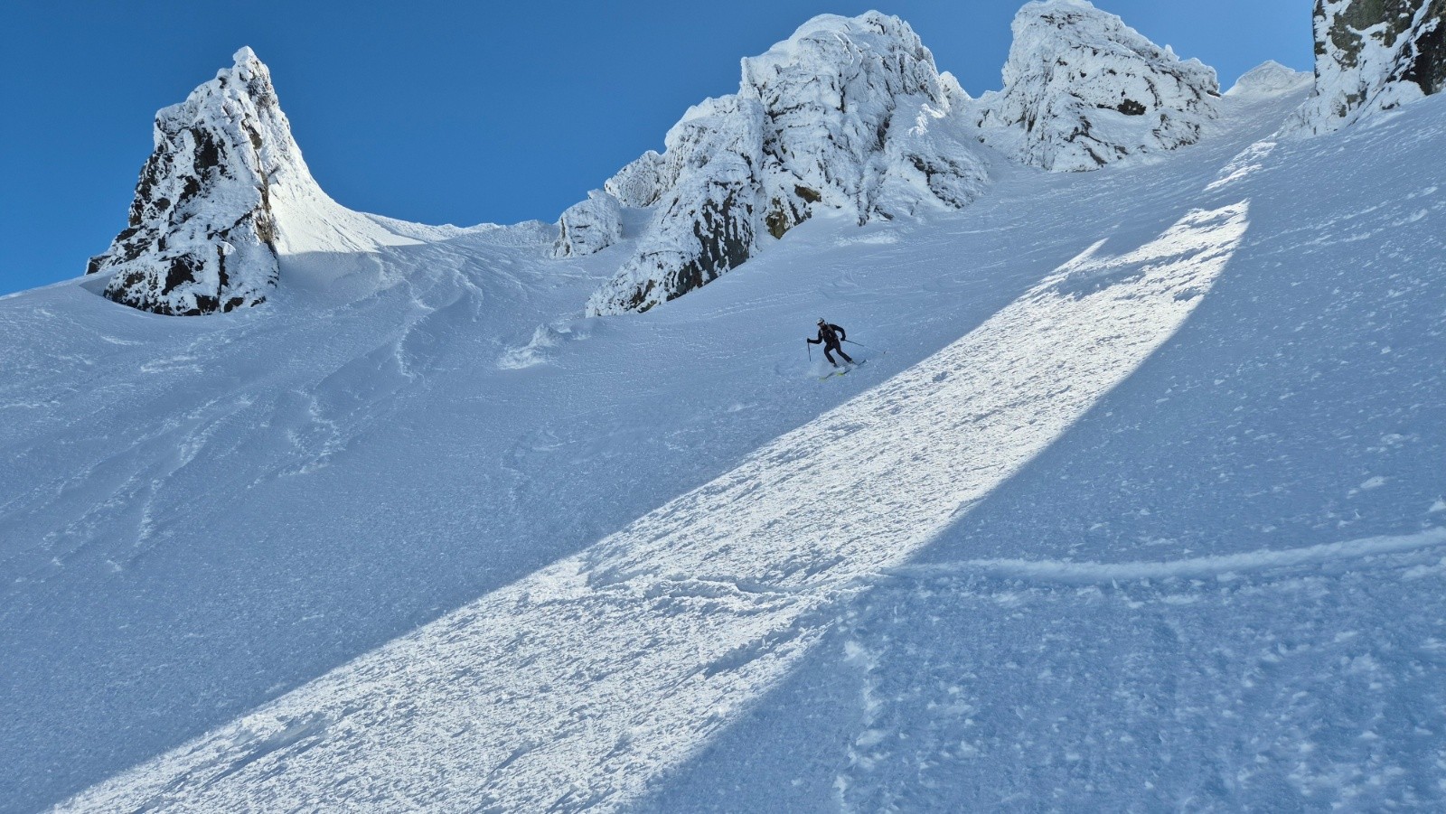 Seul dans ma voiture, seul au parking du pleynet, je me motive deja pour la belle etoile, on verra la suite. Le vallon est bien froid et la presence du vent proche des cretes me rassure pas, puis j ai oublié les crampons a la voiture😬. J irai au plus sage, descente sud puis chaude remonter a la dent. Je suis deja cuit, pas motivé plus que ça. Puis Philippe qui me suivait me rejoint au sommet. On tchatche, bien sympa et on se fera la descente nord ensemble. Trop cool, neige excellente, la remotive revient et se fera deux petit rab et top powpow pour valider les 2000🤣.